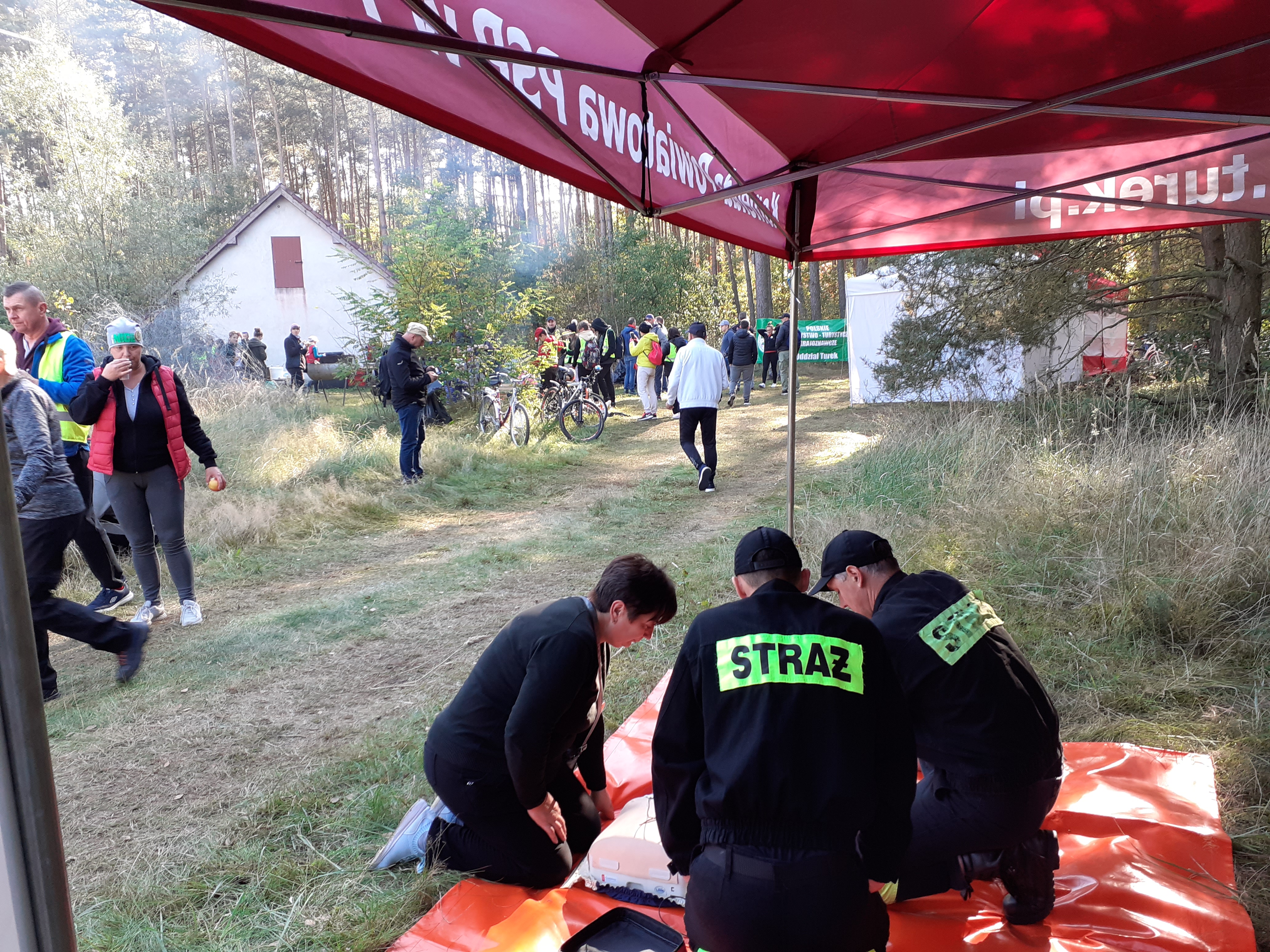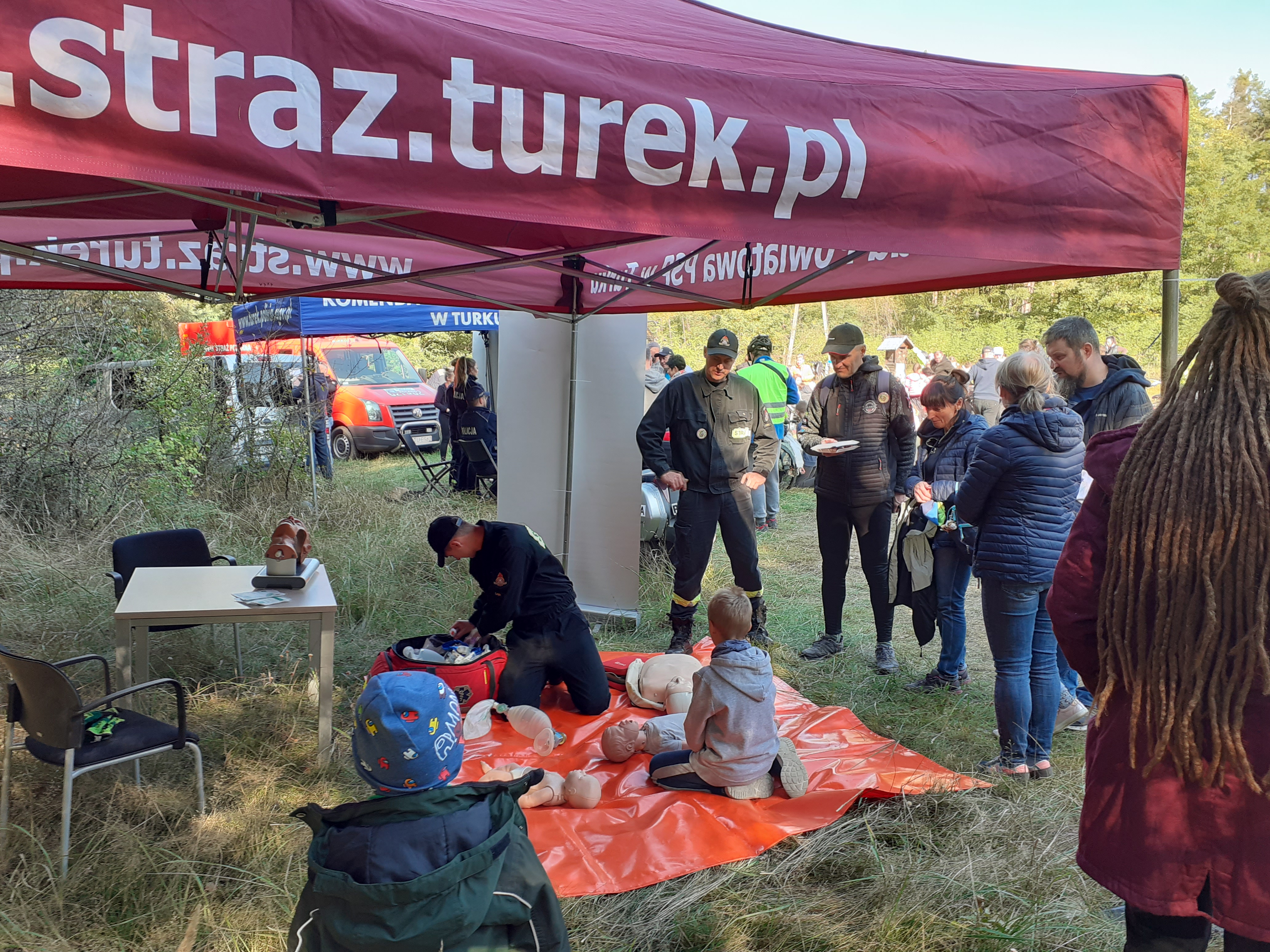 Na specjalnie przygotowanym stanowisku w Leśnictwie Grzymiszew strażacy udzielali instruktarzu z zakresu pomocy przedmedycznej podczas zdarzenia z zatrzymaniem krążenia u osoby dorosłej lub dziecka. W związku z rozpoczętym sezonem grzewczym instruowano o obowiązkach wynikających z eksploatacji przewodów spalinowych oraz zachęcano do zakupu i montażu czujek tlenku węgla bądź dymu.