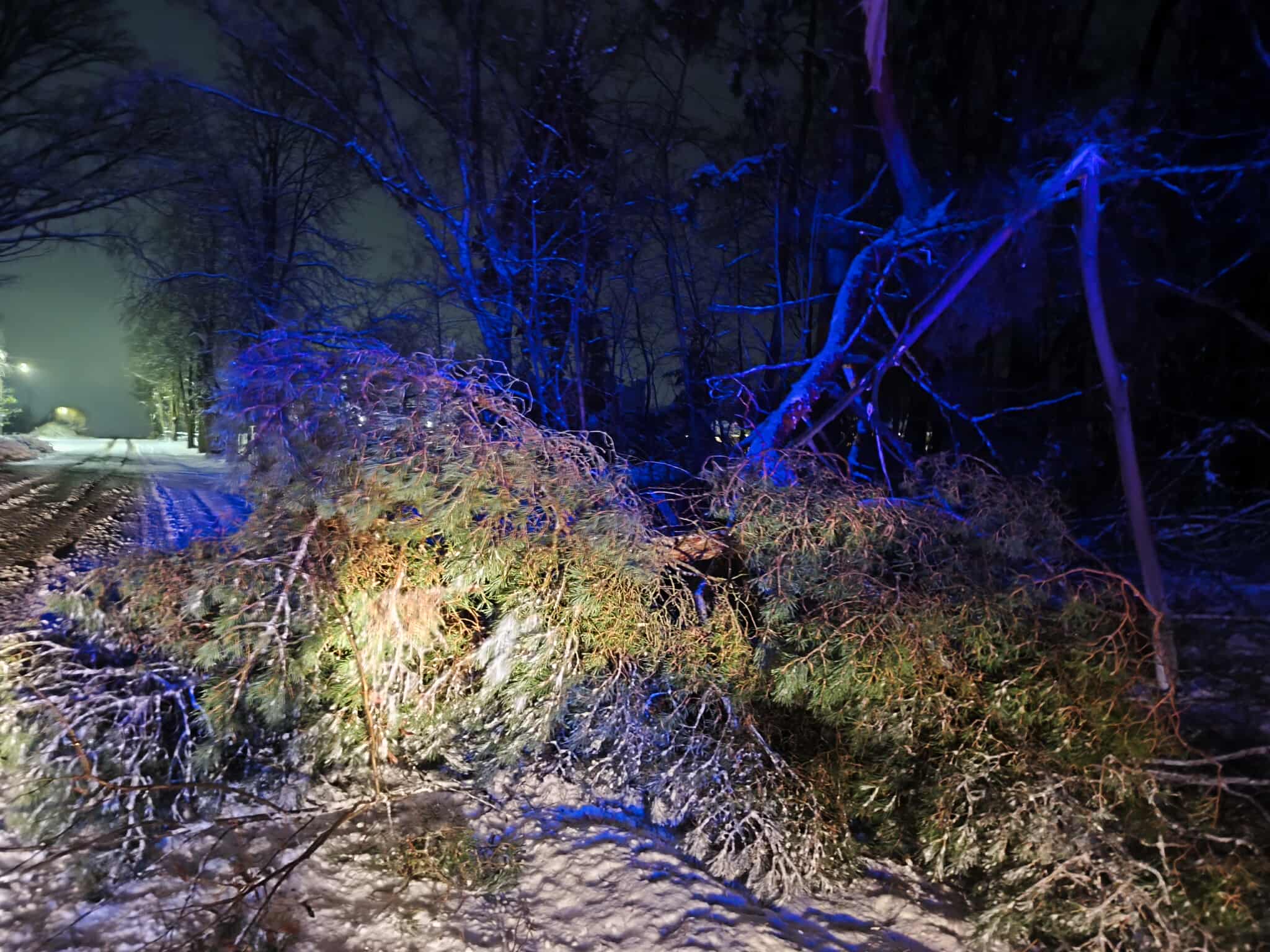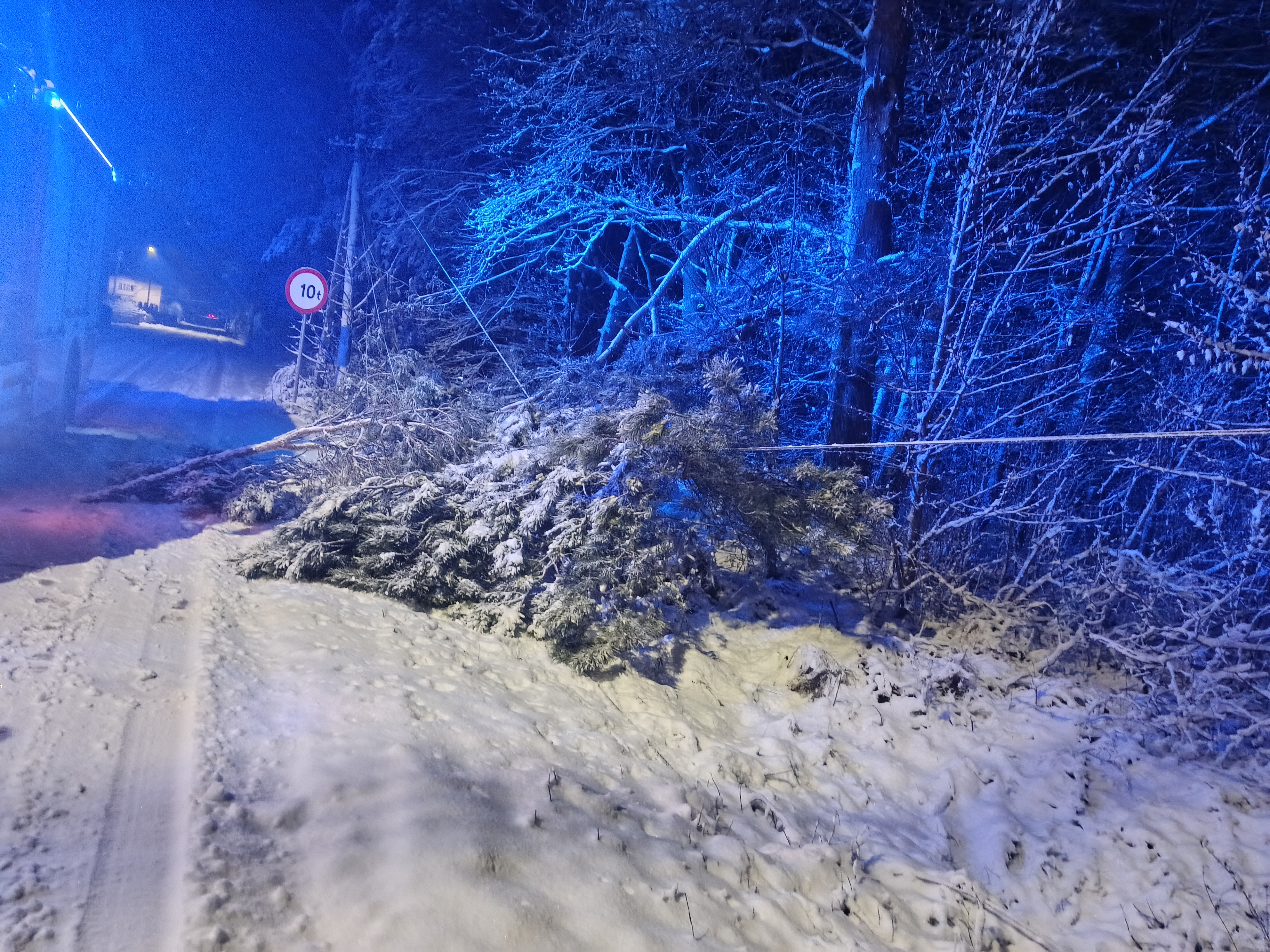 • drzew przewróconych na linie energetyczne, powodujących liczne przerwy w dostawie prądu na terenie całego powiatu,
