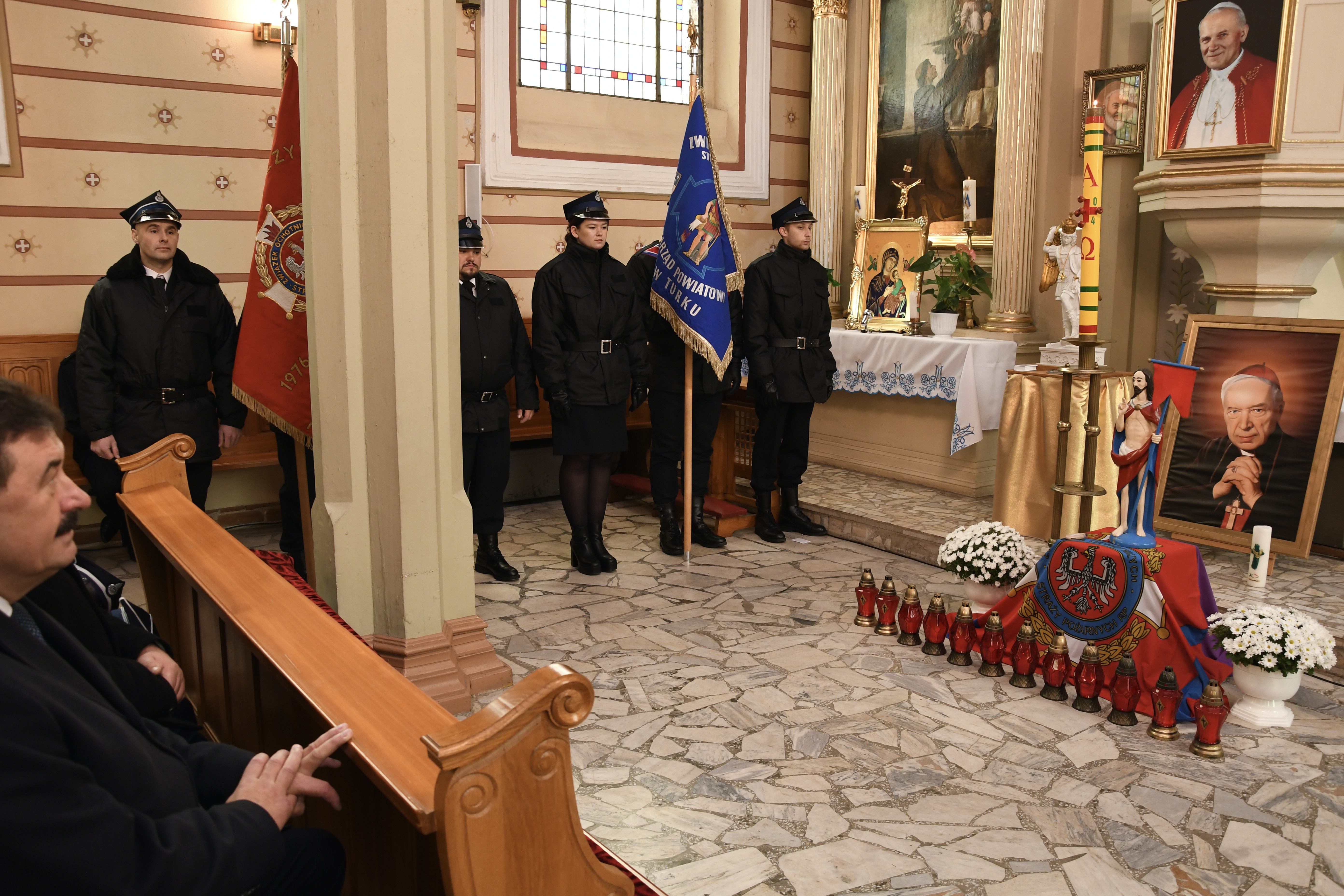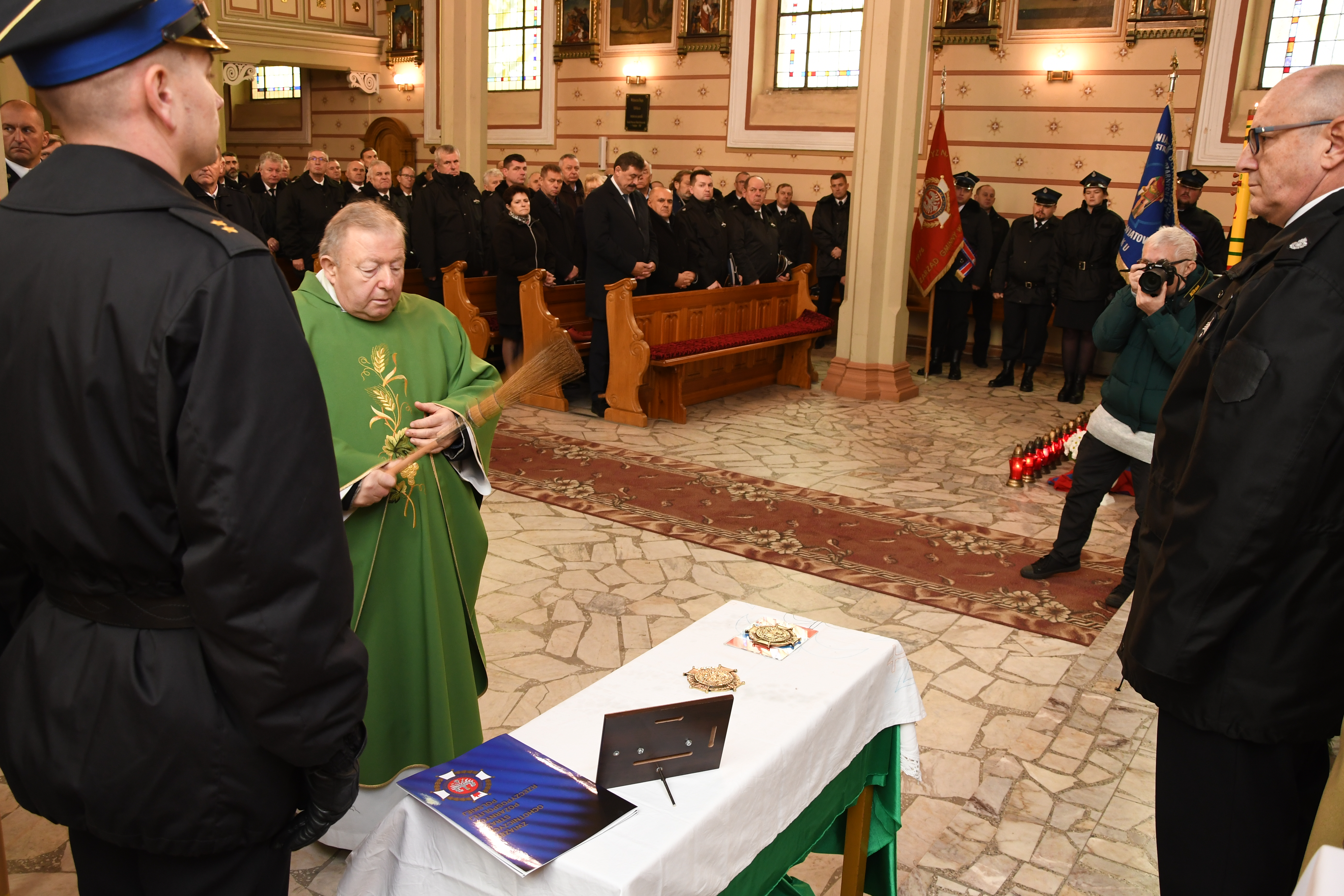 Na zakończenie Mszy Świętej zostały poświęcone oraz wręczone odznaczenia Związku OSP przyznane pośmiertnie druhom strażakom i przekazane rodzinom zmarłych w celu umieszczenia ich na nagrobkach.
