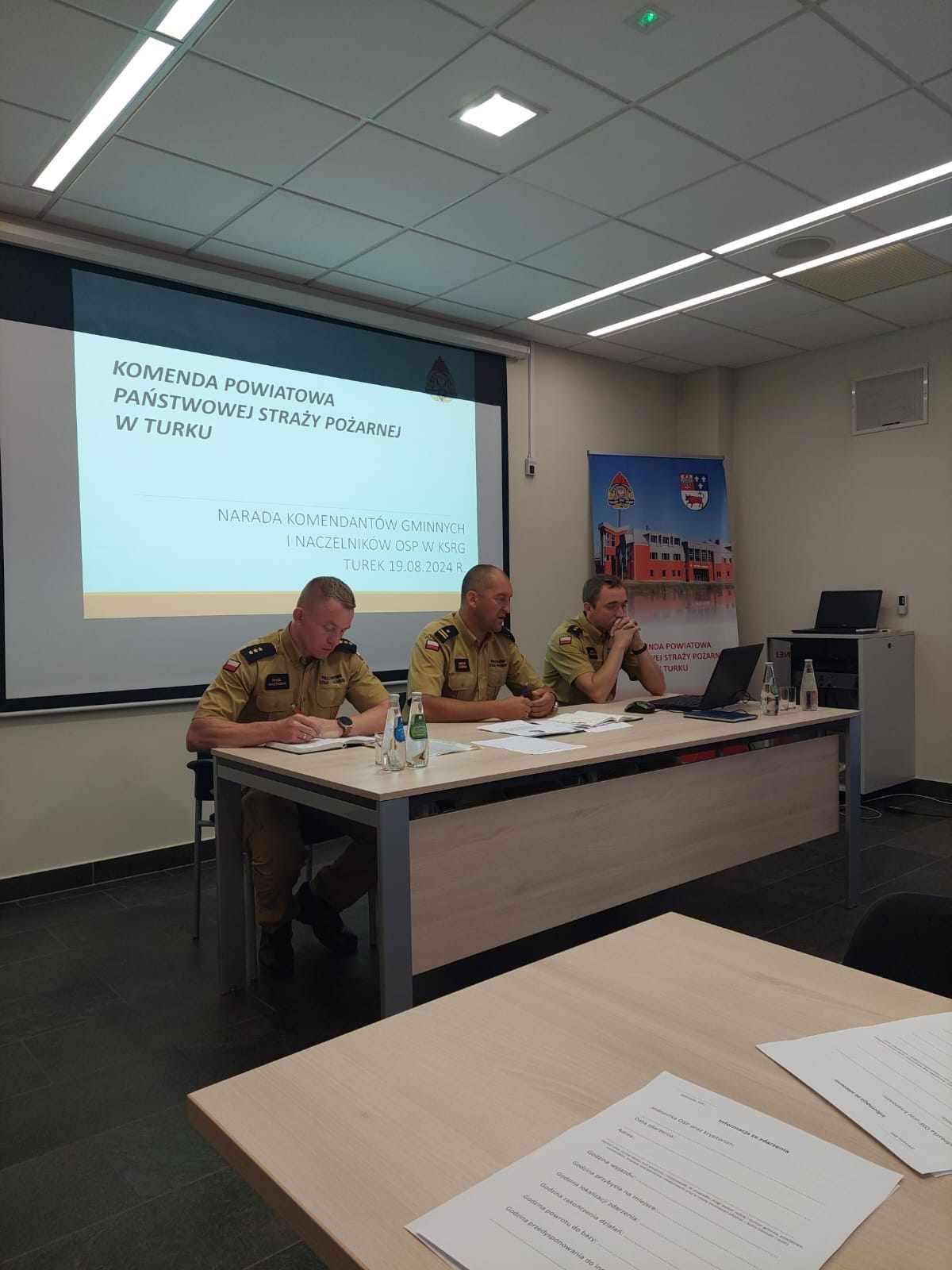 W dniu 19 sierpnia 2024 r. w budynku Komendy Powiatowej Państwowej Straży Pożarnej w Turku odbyła się narada operacyjna dla Komendantów Gminnych OSP, Prezesów oraz Naczelników jednostek Ochotniczych Straży Pożarnych z Krajowego Systemu Ratowniczo-Gaśniczego powiatu Tureckiego. Program narady obejmował: