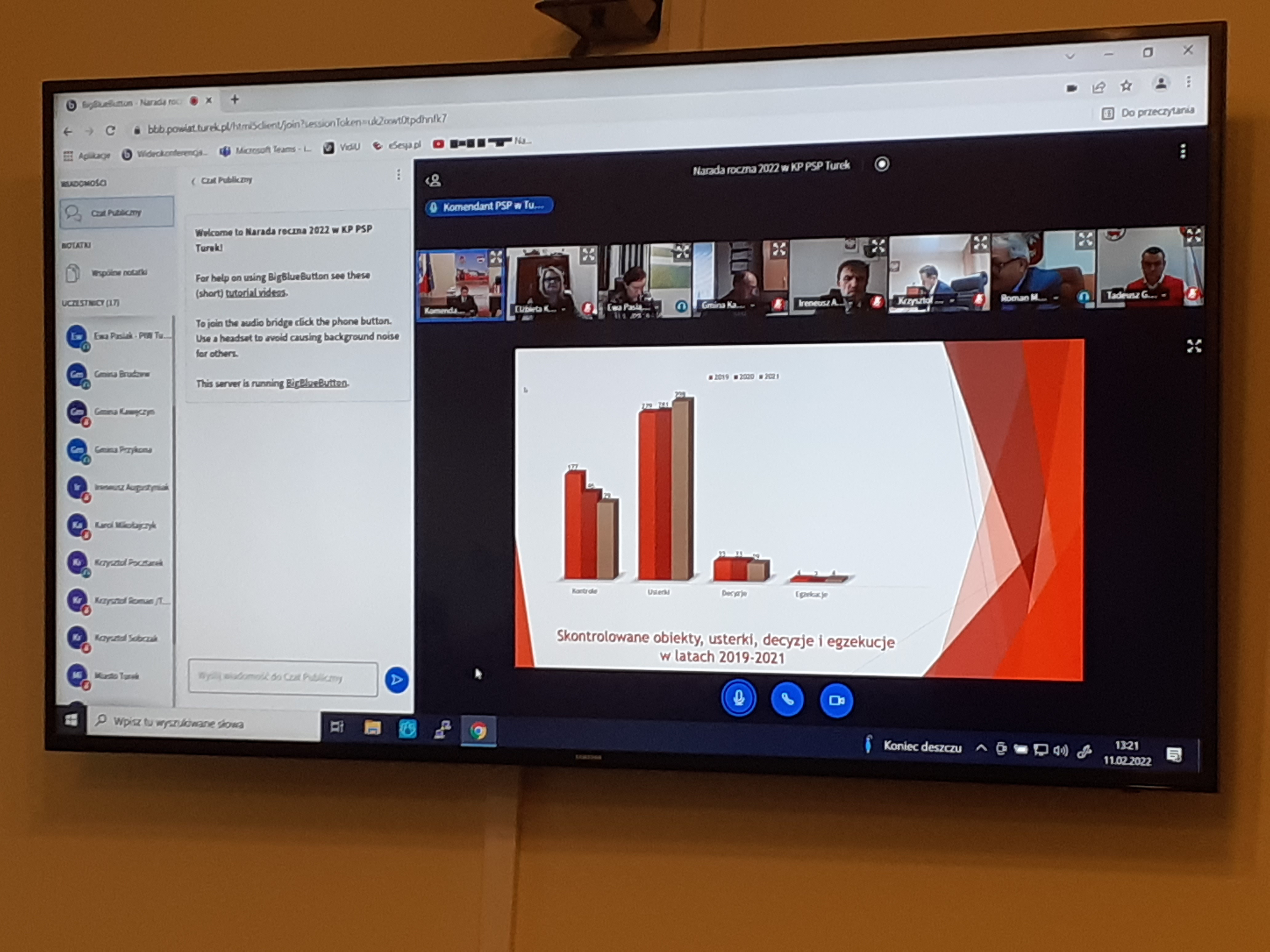 W dniu 11 lutego 2022r. odbyła się narada roczna podsumowująca działalność Komendy Powiatowej Państwowej Straży Pożarnej w Turku w roku 2021. Sytuacja pandemiczna panująca w kraju nie pozwoliła na przeprowadzanie narady w tradycyjne formie z udziałem zaproszonych gości w siedzibie KPPSP Turek dlatego też, narada poprowadzona była w formie wideokonferencji.