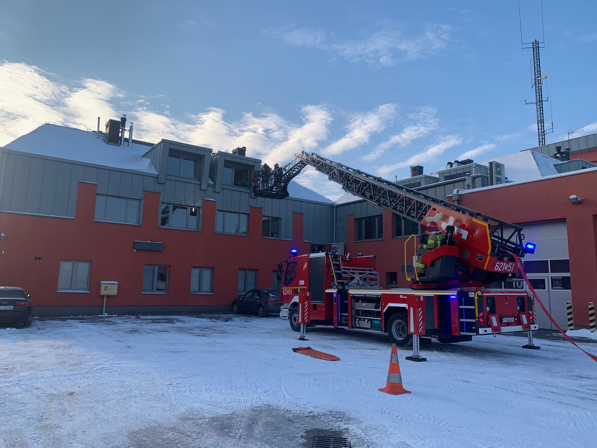 NOWY SAMOCHÓD Z DRABINĄ MECHANICZNĄ W PSP PREZENTUJE MOŻLIWOŚCI