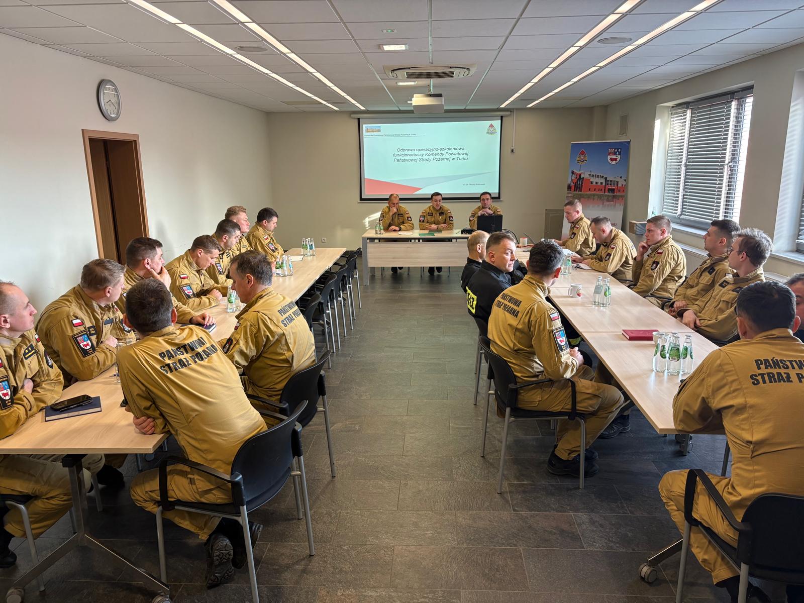 Odprawa operacyjno-szkoleniowa funkcjonariuszy Komendy Powiatowej Państwowej Straży Pożarnej w Turku