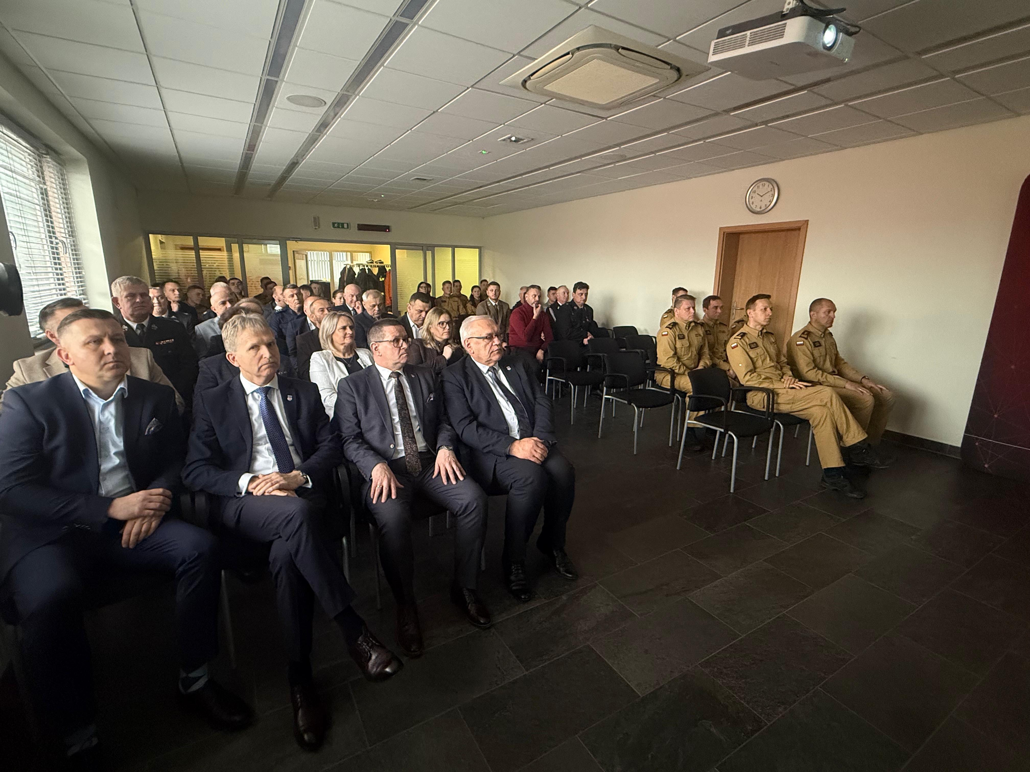 Zastępca Wielkopolskiego Komendanta Wojewódzkiego PSP st. bryg. Tomasz Grelak w swoim wystąpieniu podkreślił wagę efektywnego współdziałania organów i podmiotów Ochrony Ludności w kontekście realizacji zadań wynikających z ustawy o OLiOC oraz wydatkowania pieniędzy przeznaczonych na OLiOC.