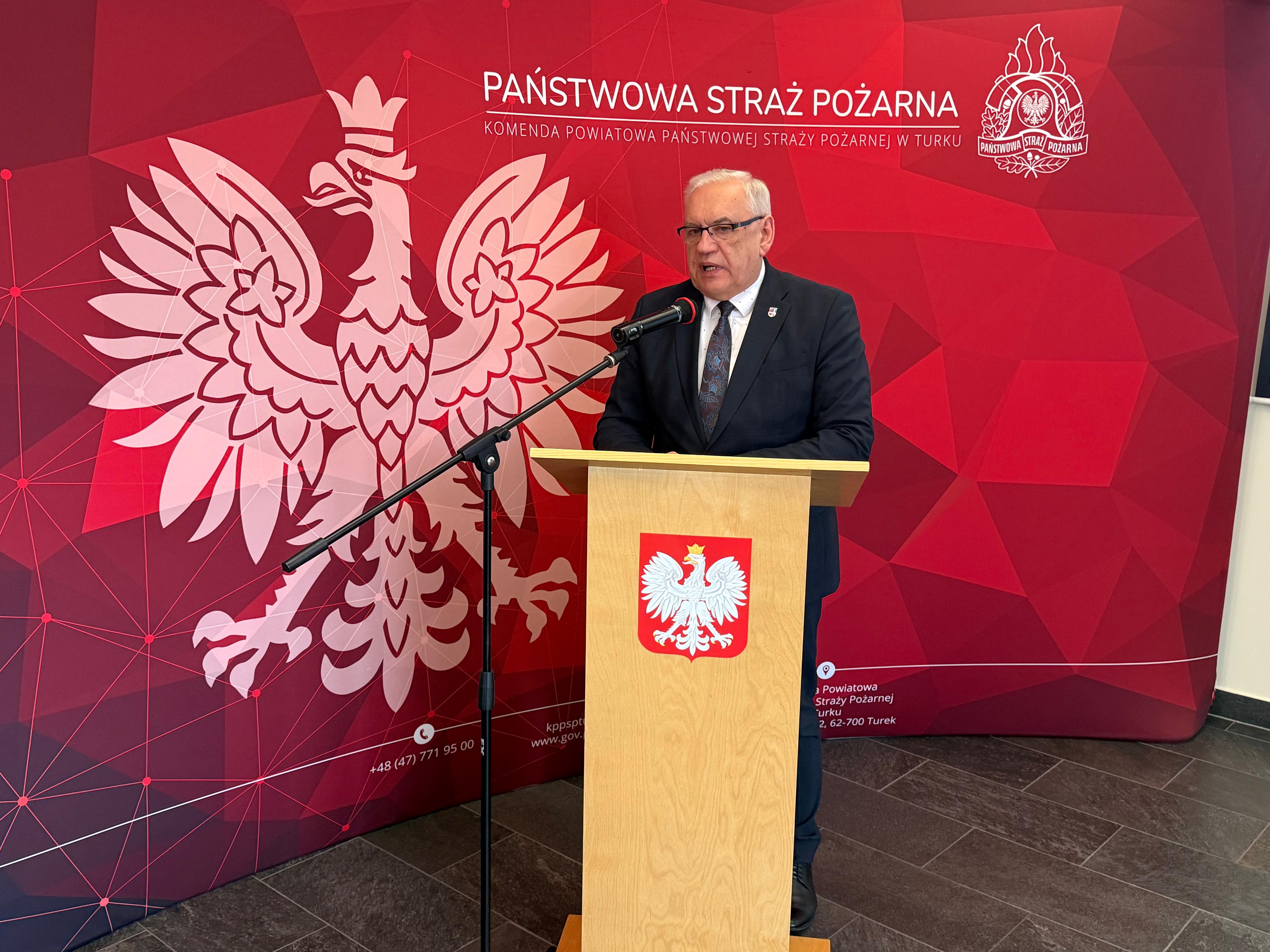Następnie głos zabrał starosta turecki Jan Smak, który podziękował strażakom z terenu powiatu tureckiego za podejmowany trud i wysiłek mający bardzo duży wpływ na zapewnienie bezpieczeństwa mieszkańcom powiatu tureckiego.
