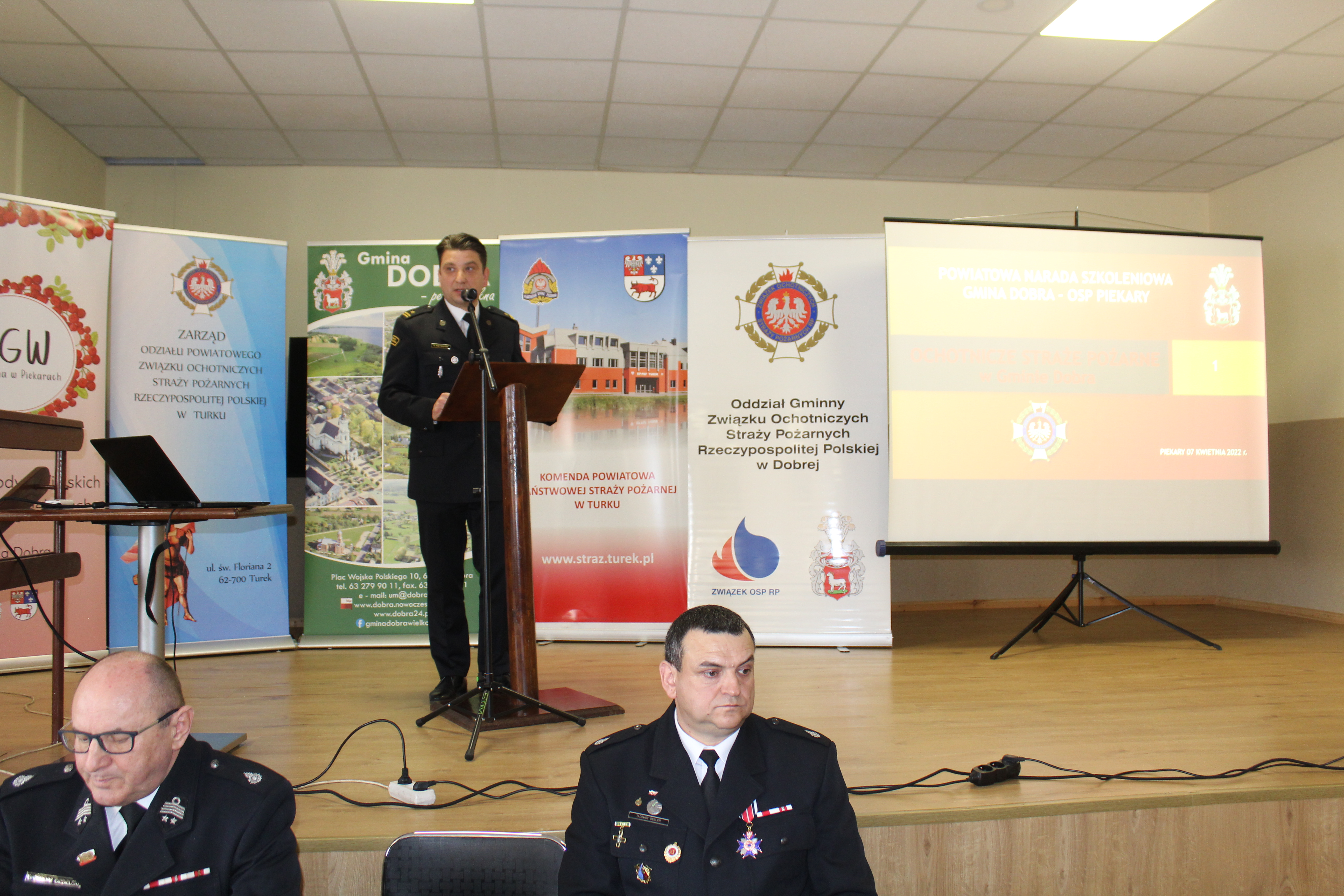 Komendę Powiatową Państwowej Straży Pożarnej w Turku reprezentowali: Komendant Powiatowy PSP w Turku mł. bryg. Piotr Pietrucha, Zastępca Komendanta Powiatowego PSP w Turku bryg. Arkadiusz Janaszkiewicz oraz Naczelnik Wydziału operacyjno-kontrolno-rozpoznawczego st. kpt. Krzysztof Gruszczyński. Funkcjonariusze KP PSP Turek podczas narady przedstawili najważniejsze zmiany w procesie szkolenia jednostek OSP wprowadzone w 2022 r. oraz omówili Ustawę o ochotniczych strażach pożarnych, która weszła w życie 1 stycznia 2022 r. ze szczególnym uwzględnieniem zadań samorządów w zakresie współpracy z jednostkami OSP.