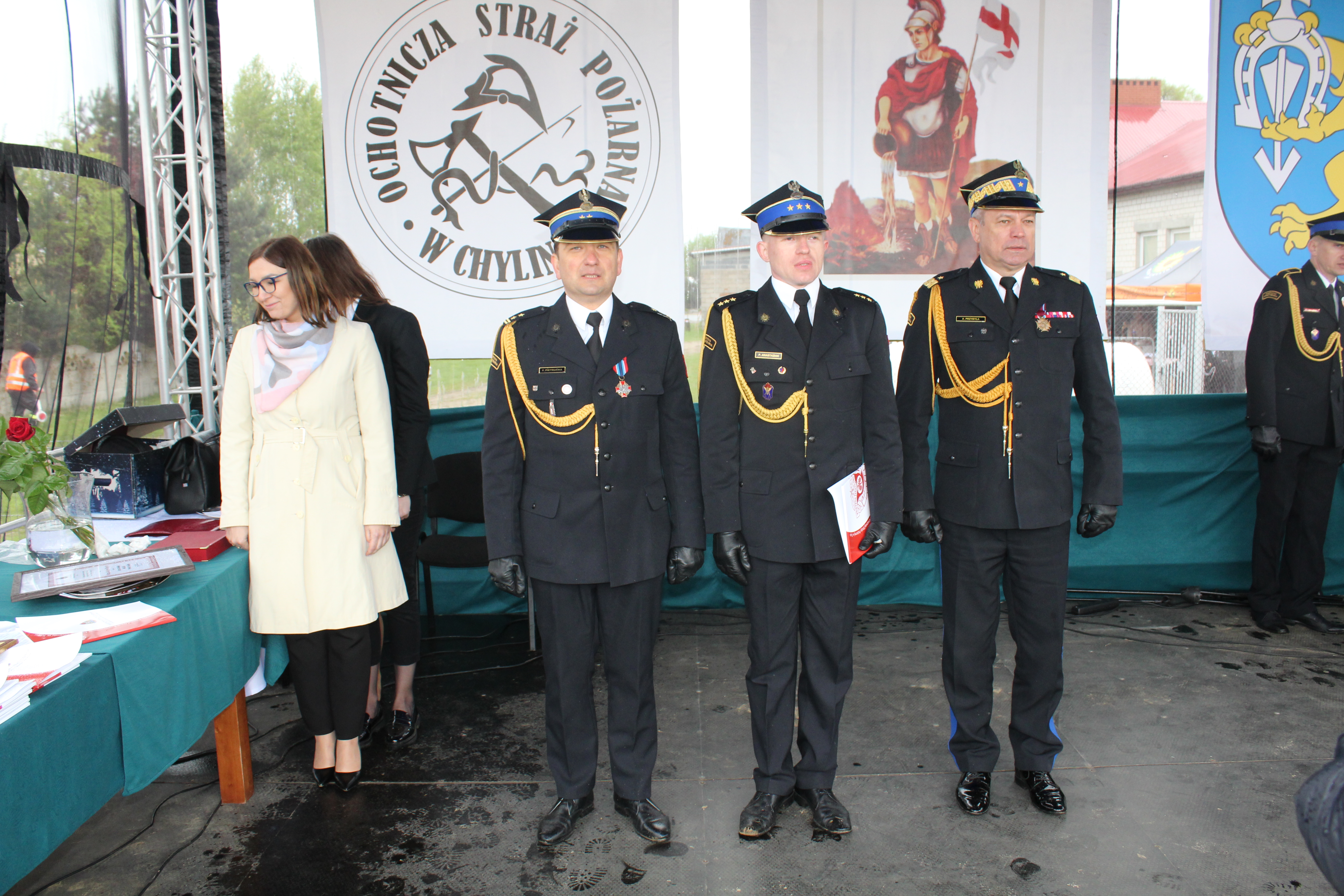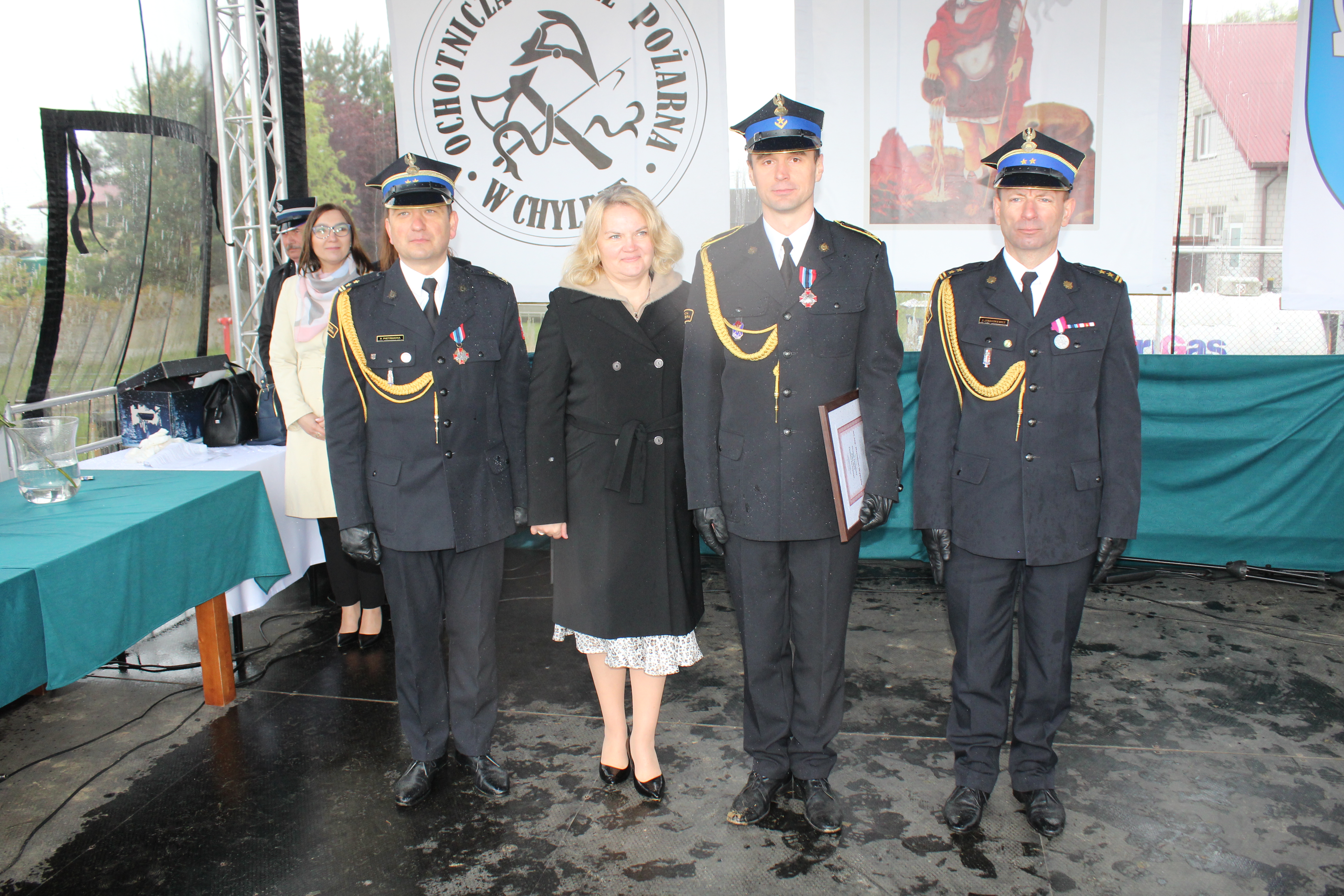 Głównym punktem uroczystości było odznaczenie na sztandar jednostki OSP Chylin Złotym Znakiem Związku.