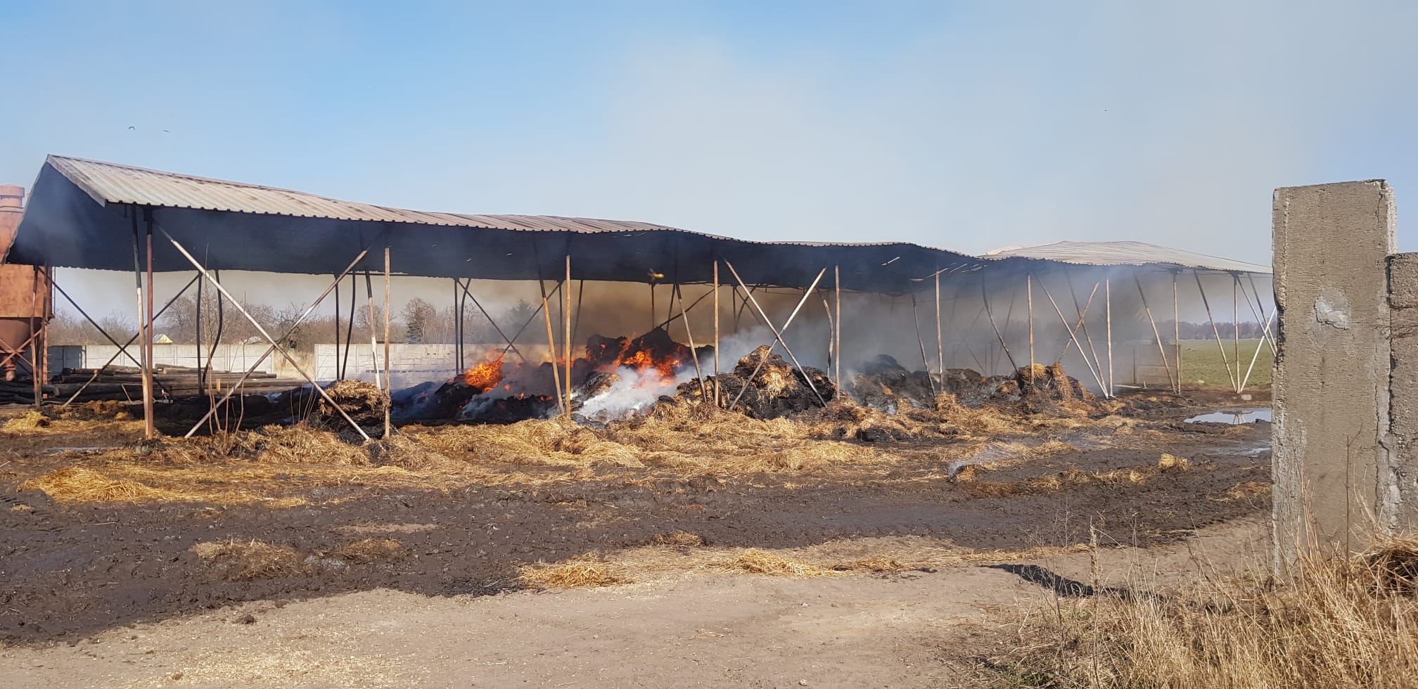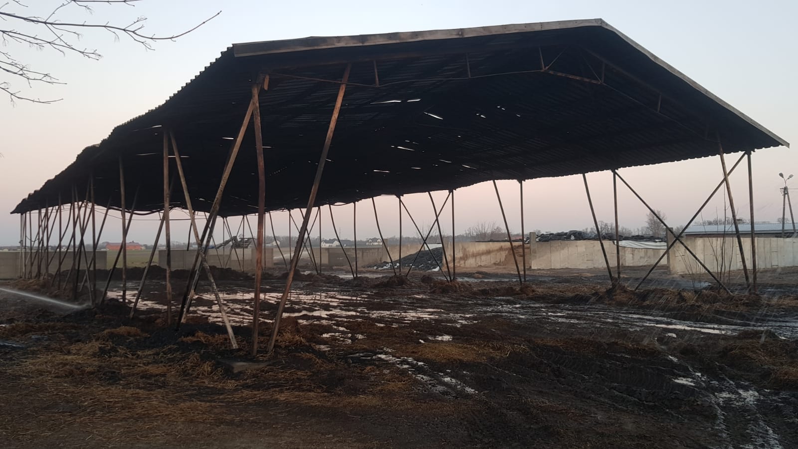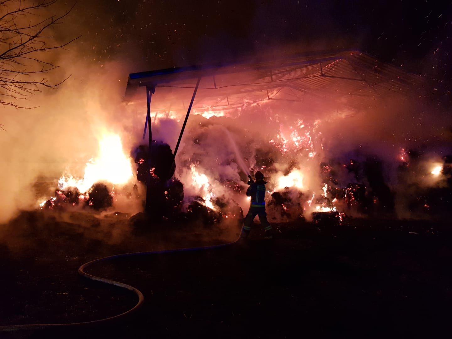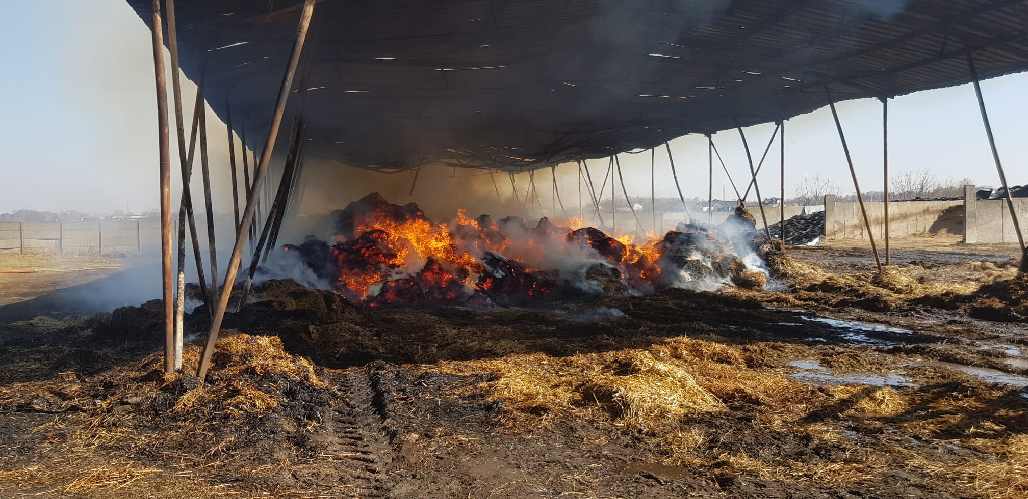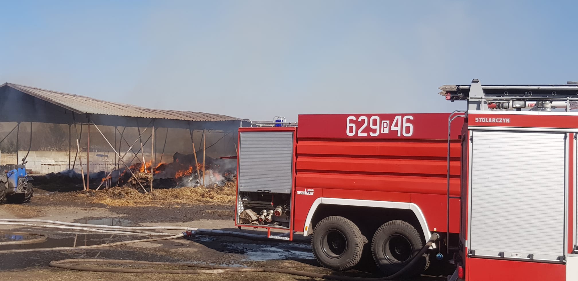 Całkowitemu zniszczeniu uległa wiata oraz 1500 balotów słomy.