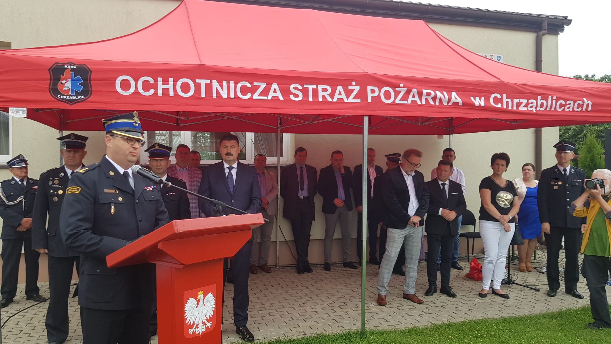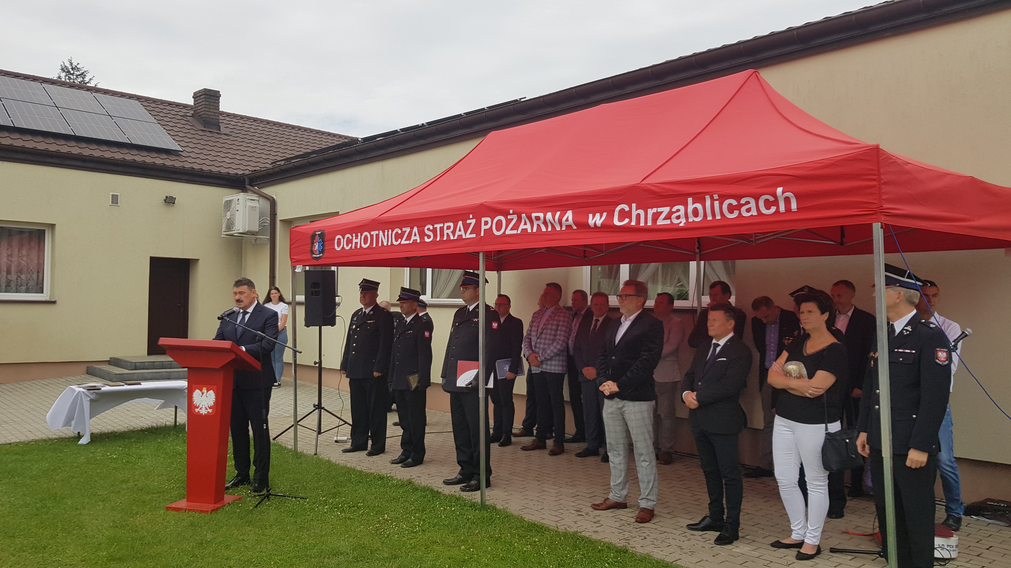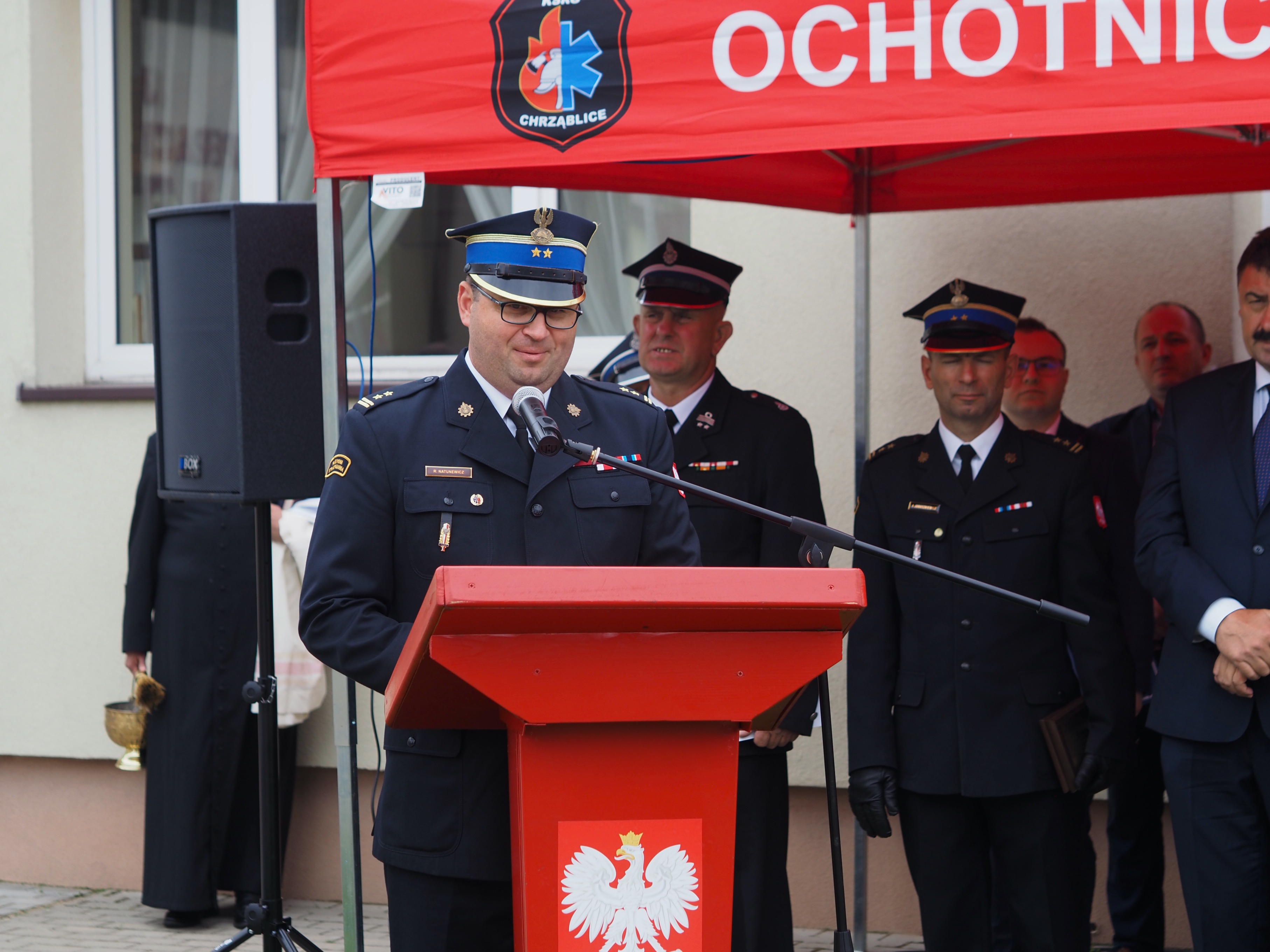 Uroczystość rozpoczęła się złożeniem meldunku przez kpt. Błażeja Walkowskiego, Zastępcy Wielkopolskiego Komendanta Wojewódzkiego PSP bryg. Robertowi Natunewiczowi oraz wspólnym odśpiewaniem hymnu państwowego. Przybyłych na uroczystość gości przywitał Prezes Jednostki OSP Chrząblice druh Piotr Maciaszek.