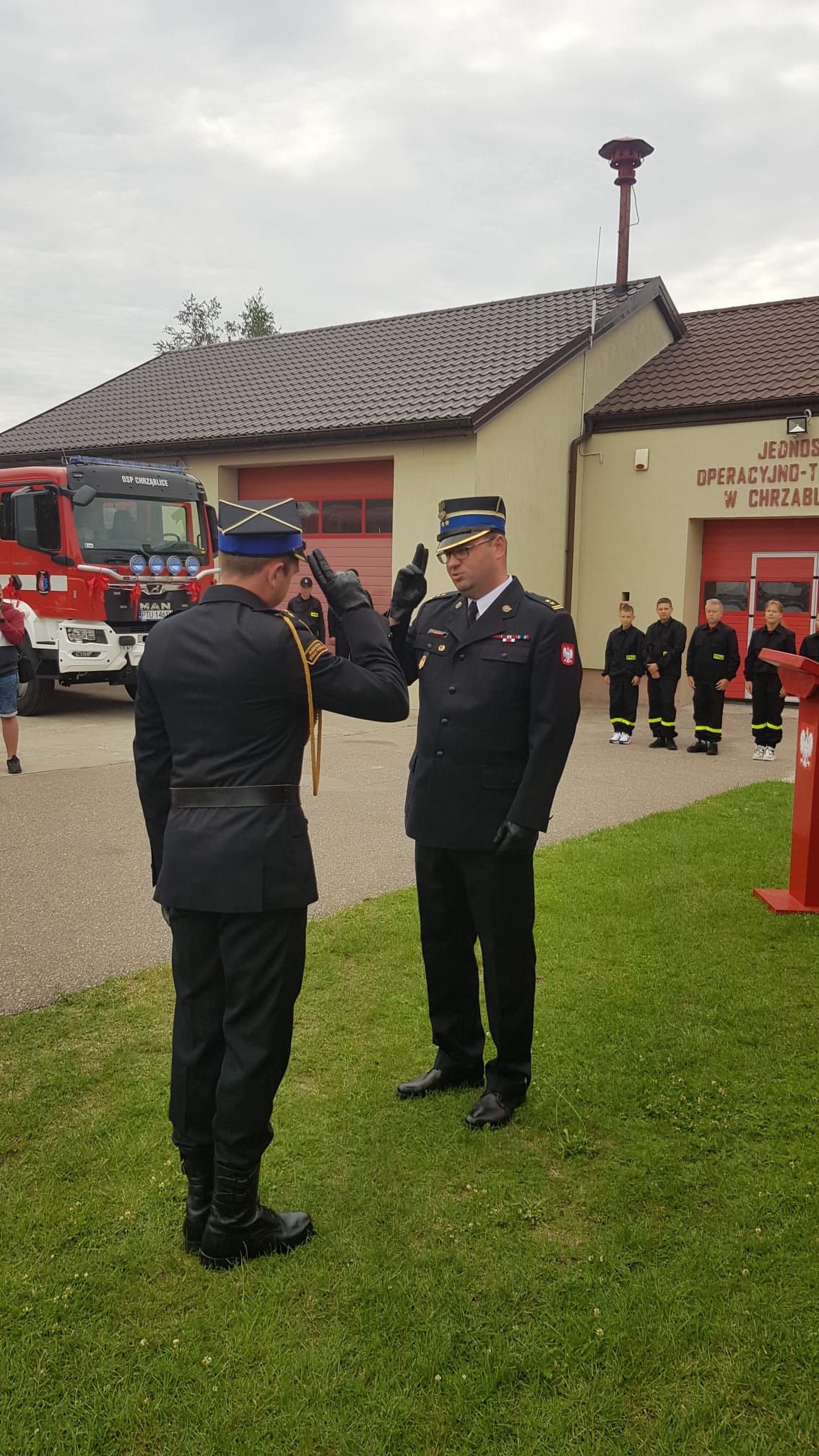 W dniu 9 lipca 2022r przed strażnicą Ochotniczej Straży Pożarnej w Chrząblicach Gmina Brudzew odbyła się uroczystość przekazania nowego średniego samochodu ratowniczo---gaśniczego MAN GBA R-t 4/16.