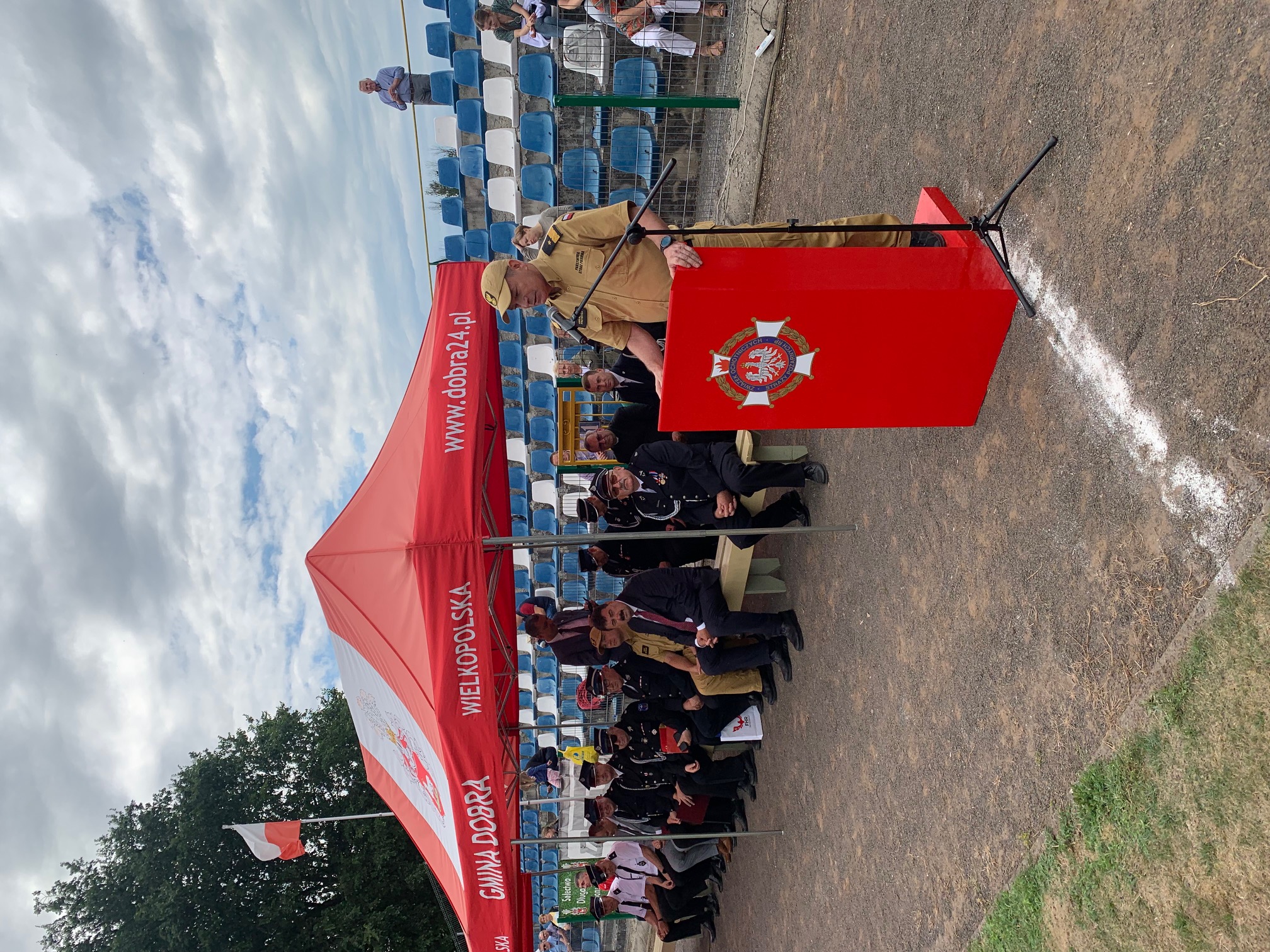 Po zakończeniu uroczystej zbiórki na terenie stadionu miejskiego w Dobrej rozegrano gminne zawody sportowo-pożarnicze.