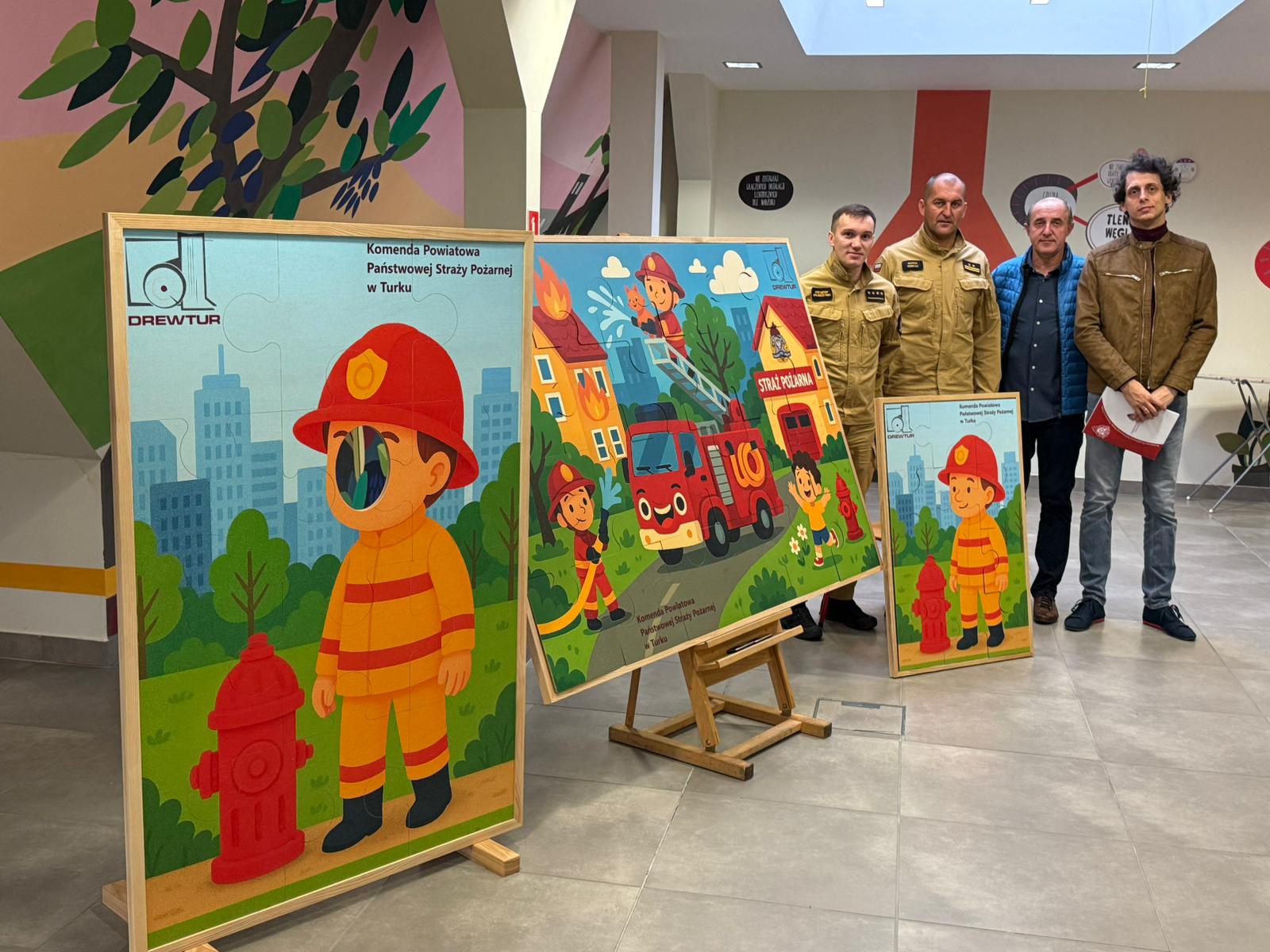 15 października 2025 roku w Komendzie Powiatowej Państwowej Straży Pożarnej w Turku miało miejsce przekazanie pomocy edukacyjnych, które wzbogacą zajęcia edukacyjne prowadzone dla dzieci. Firma DREWTUR sp. z o.o., zaprojektowała, wykonała i przekazała puzzle edukacyjne oraz ściankę do zdjęć.