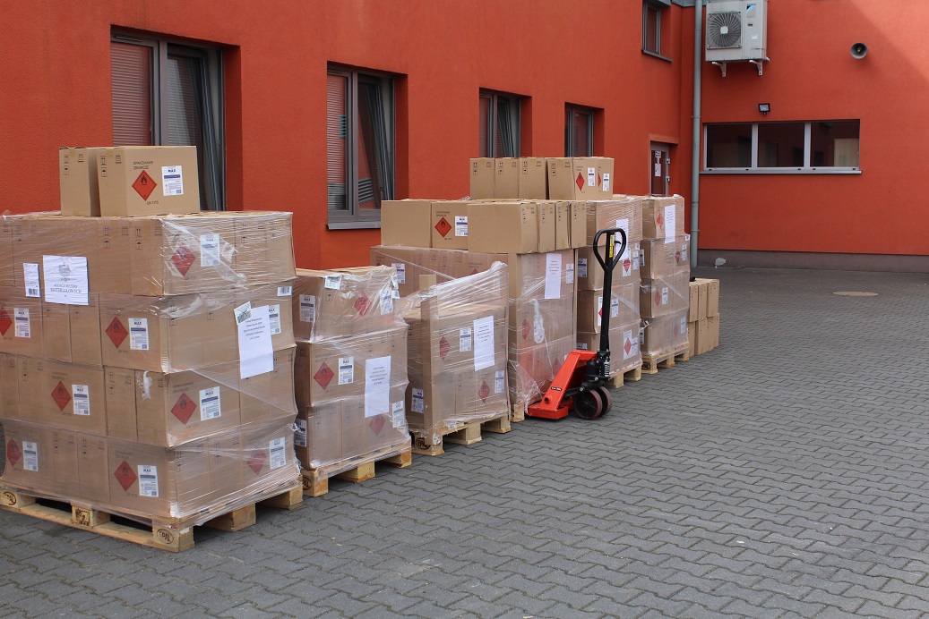 W dniu 28.08.2020r. strażacy z Komendy Powiatowej Państwowej Straży Pożarnej w Turku dostarczyli płyny do dezynfekcji do urzędów miast i gmin z terenu powiatu tureckiego. Płyny docelowo mają trafić do szkół podstawowych oraz ponadpodstawowych z terenu powiatu. Łącznie dostarczono 5925 litrów środka dezynfekcyjnego, który został przekazany przez Agencję Rezerwy Materiałowej.