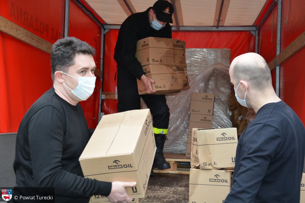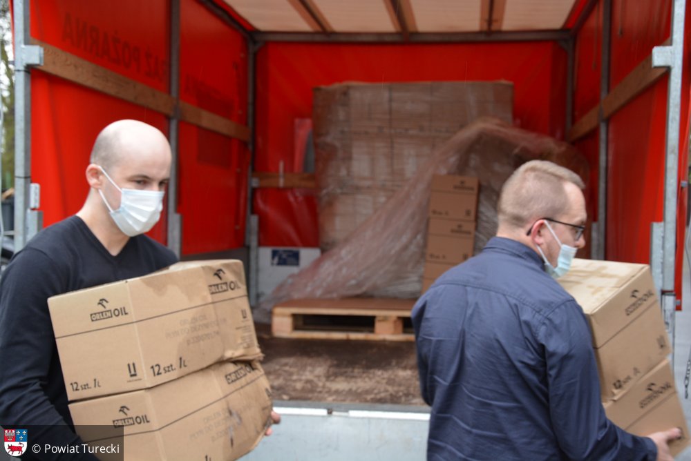 7 maja 2021 r. strażacy z Komendy Powiatowej Państwowej Straży Pożarnej w Turku dostarczyli środki ochrony indywidualnej przekazane przez Wojewodę Wielkopolskiego do Starostwa Powiatowego w Turku, które następnie zostaną gmin i szkół na terenie powiatu tureckiego oraz SP ZOZ w Turku. 30 000 maseczek chirurgicznych oraz 3100 litrów płyn do dezynfekcji rąk przewiezionych przez straż pożarną pochodziło z Rządowej Agencji Rezerw Strategicznych.