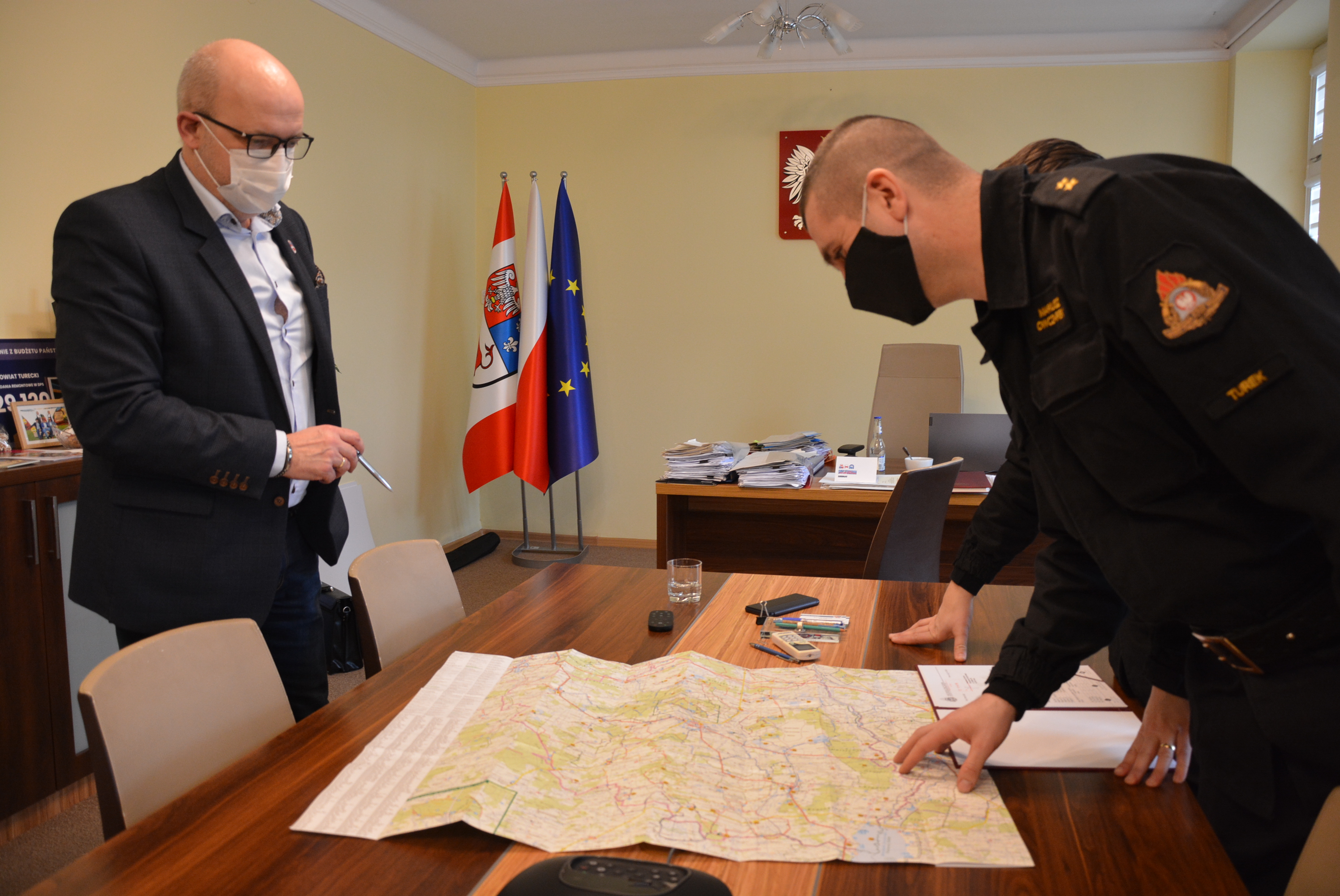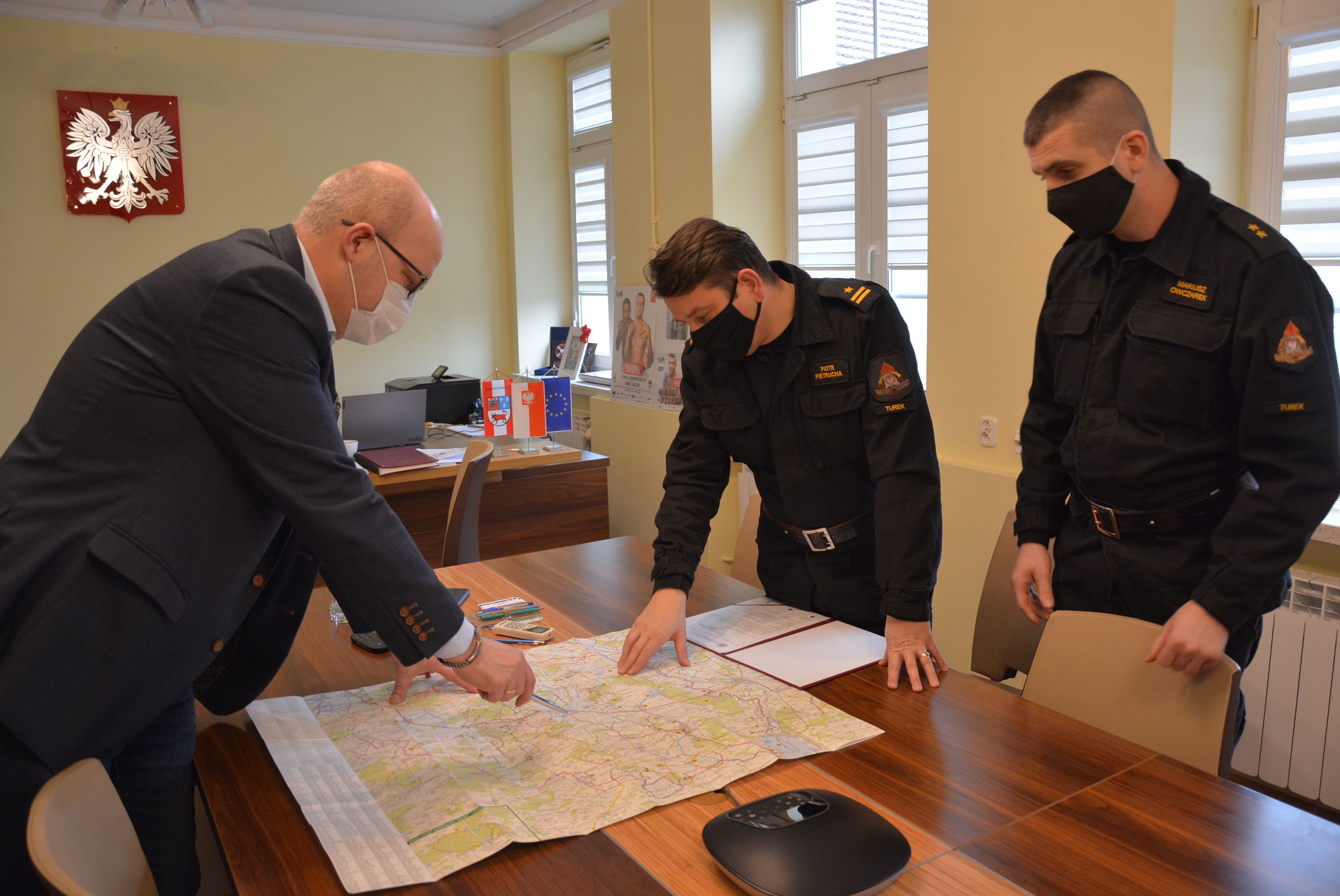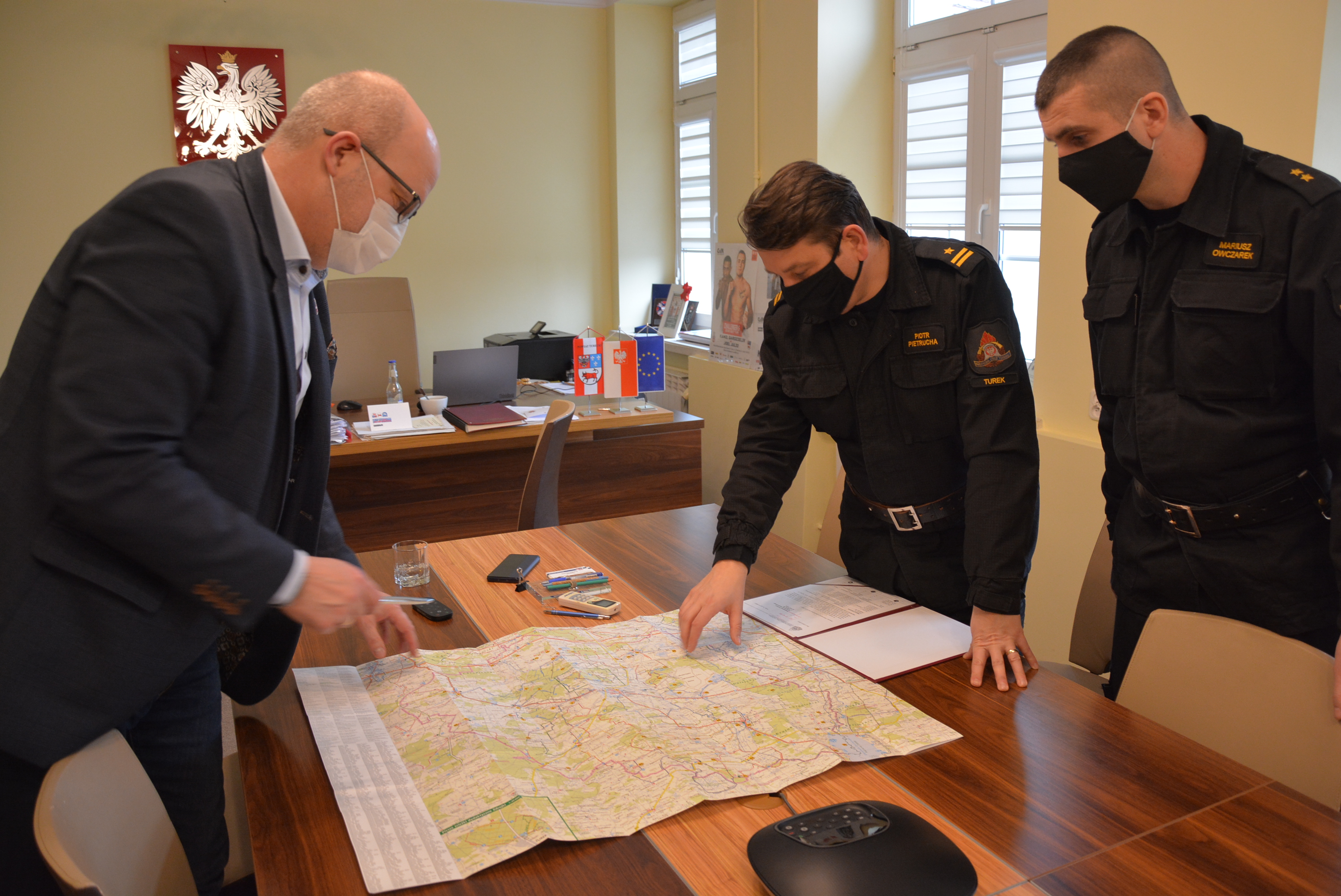 Na spotkaniu starosta i komendant rozmawiali także o zabezpieczaniu przez strażaków z 18 jednostek OSP będących w krajowym systemie ratowniczo-gaśniczym Punktu Szczepień Powszechnych w SP ZOZ w Turku oraz jednodniowych akcji szczepiennych przeprowadzanych w gminach.