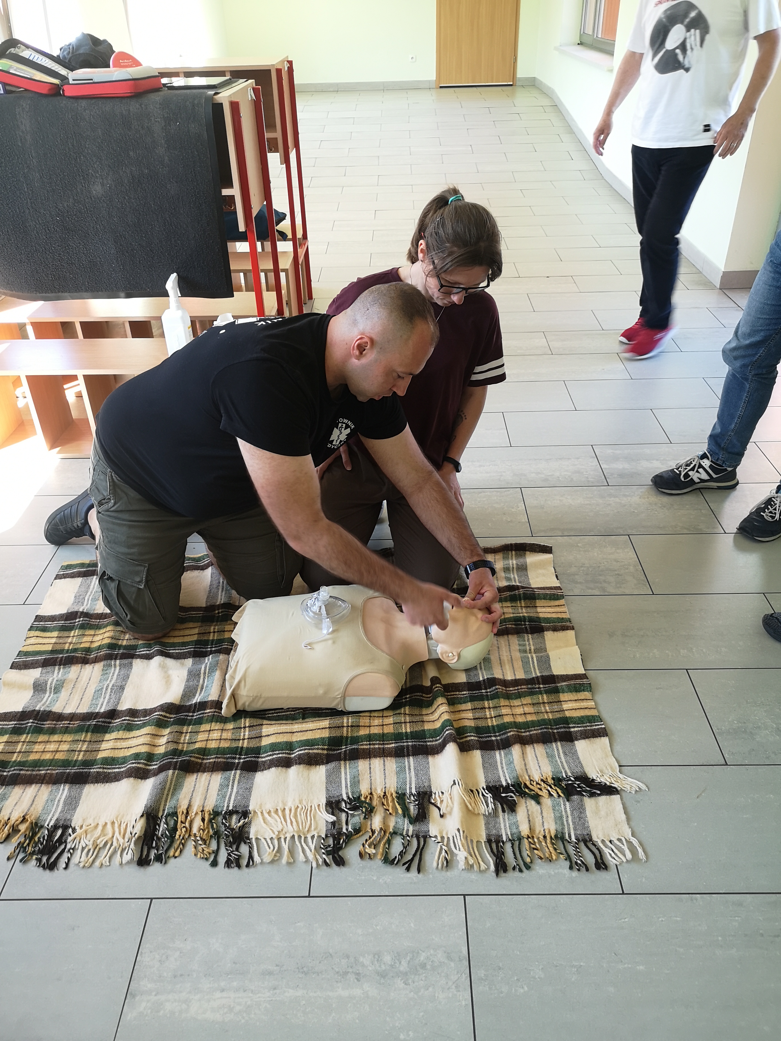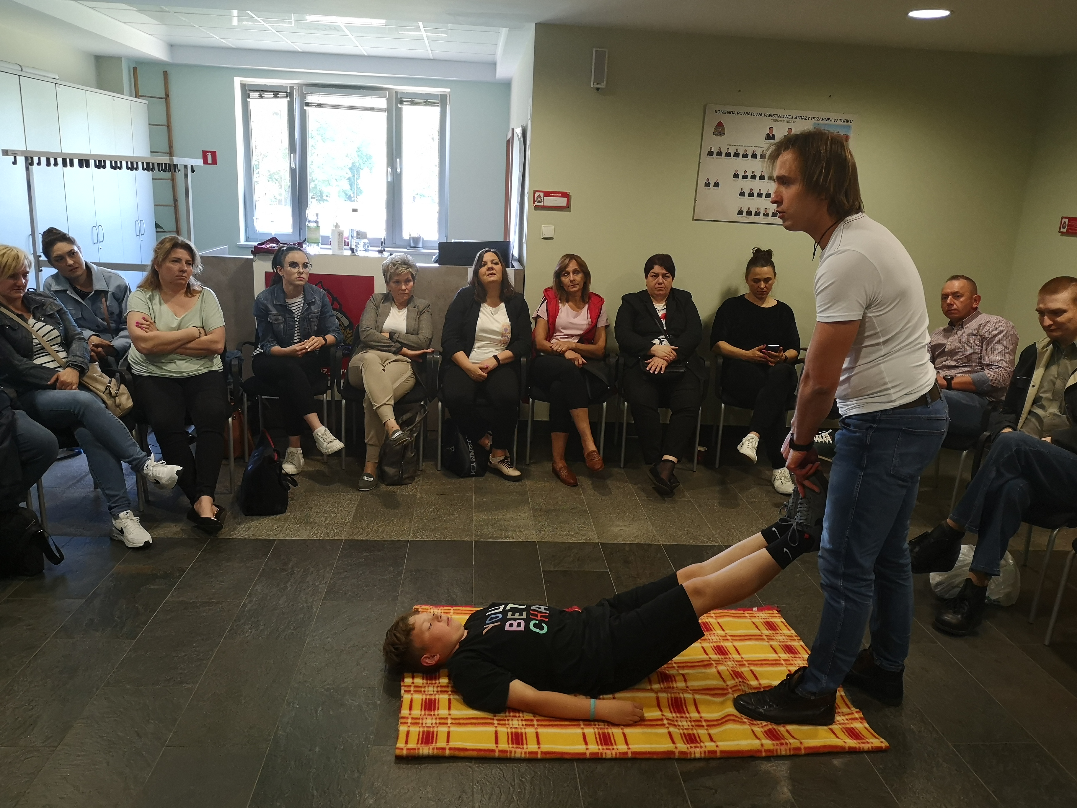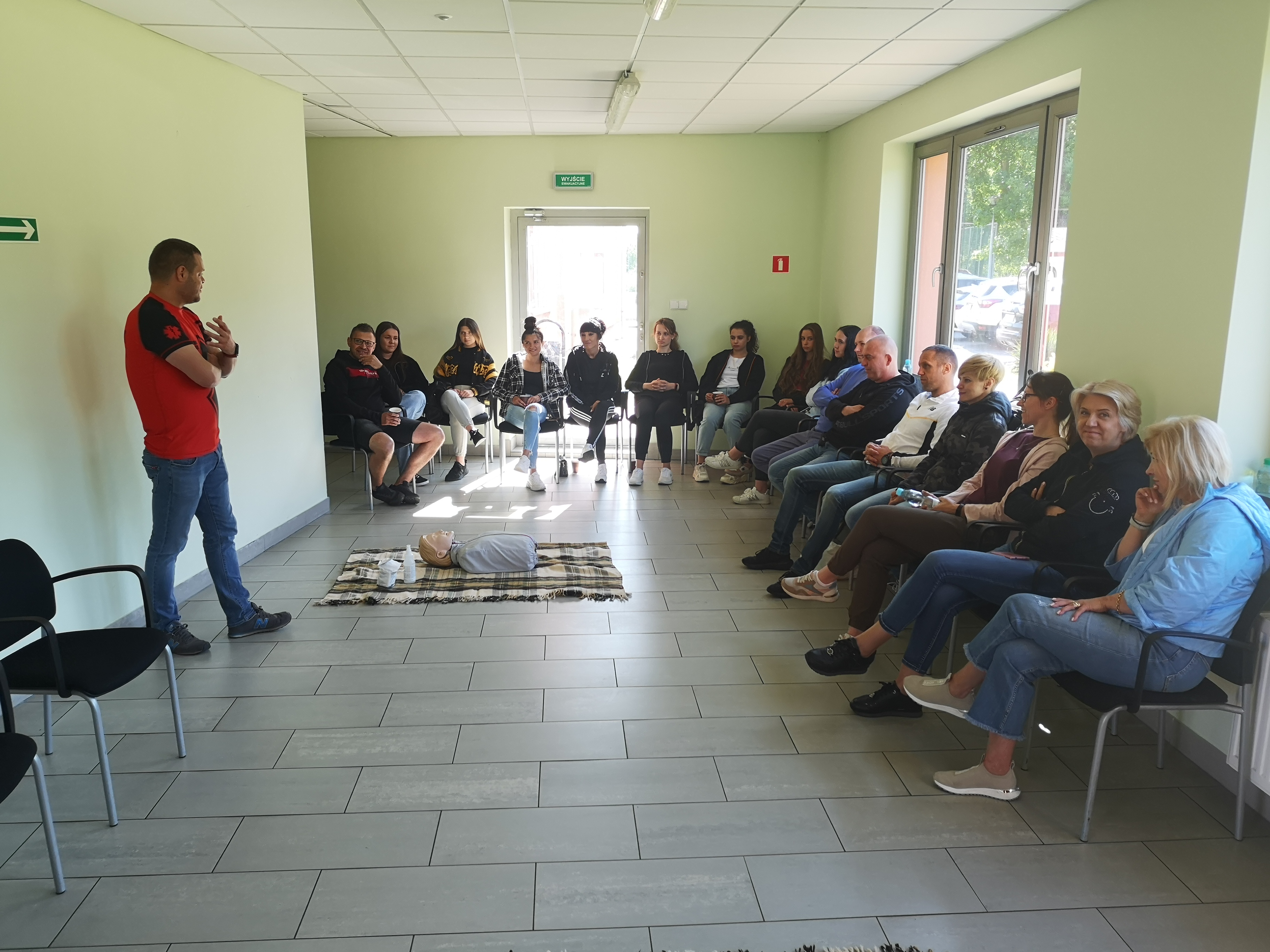 W celu sprawnego przeprowadzenia kursanci zostali podzieleni na cztery grupy. Pierwsza grupa w formie teoretycznej uczyła się jak postępować w stanach nagłego zagrożenia zdrowotnego. Natomiast pozostałe trzy grupy ćwiczyły praktycznie jak postępować w Nagłym Zatrzymaniu Krążenia u dzieci, w Nagłym Zatrzymaniu Krążenia u osób dorosłych z wykorzystaniem AED oraz w jaki sposób prawidłowo zabezpieczyć miejsce wypadku samochodowego i ewakuować z pojazdu poszkodowaną osobę.