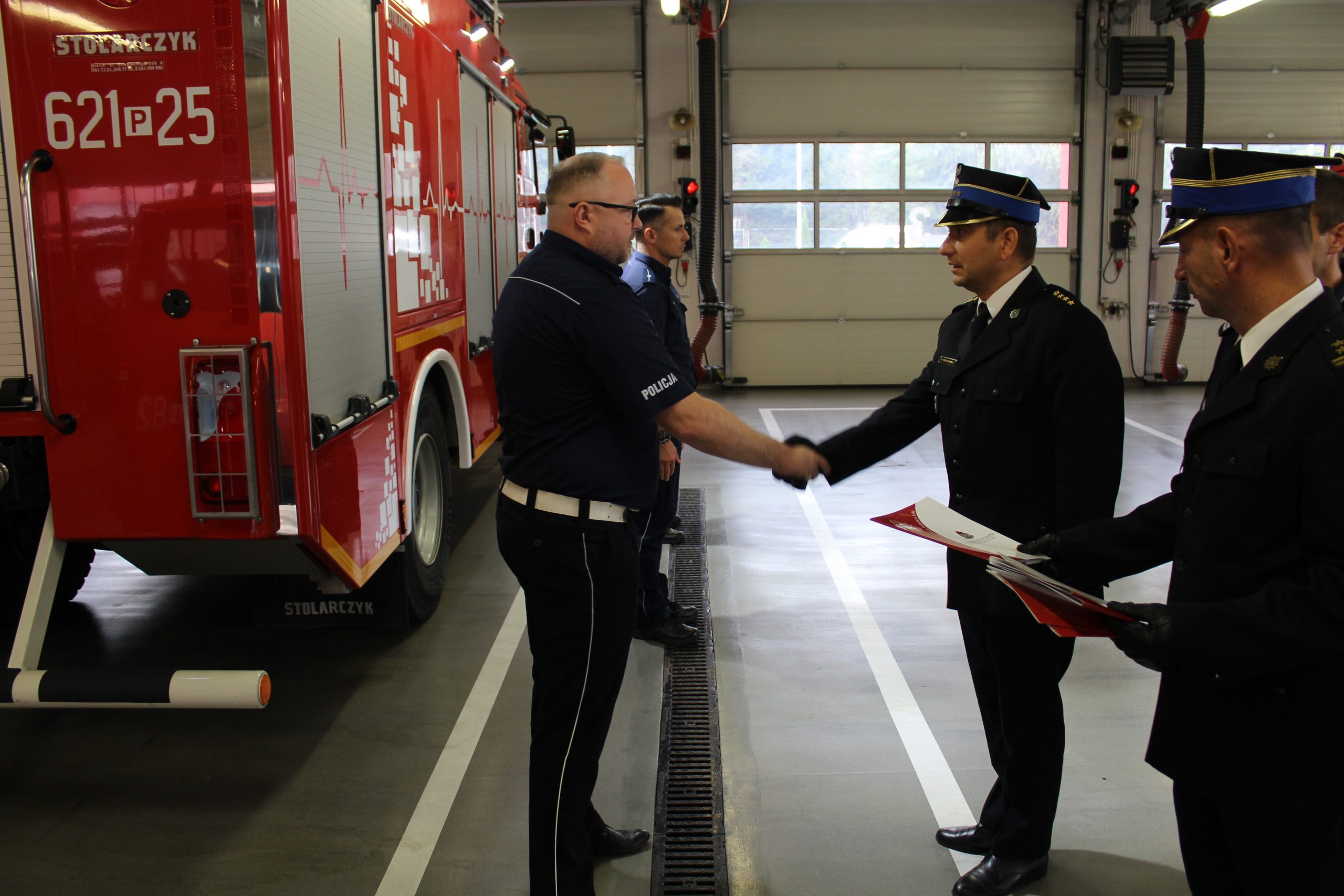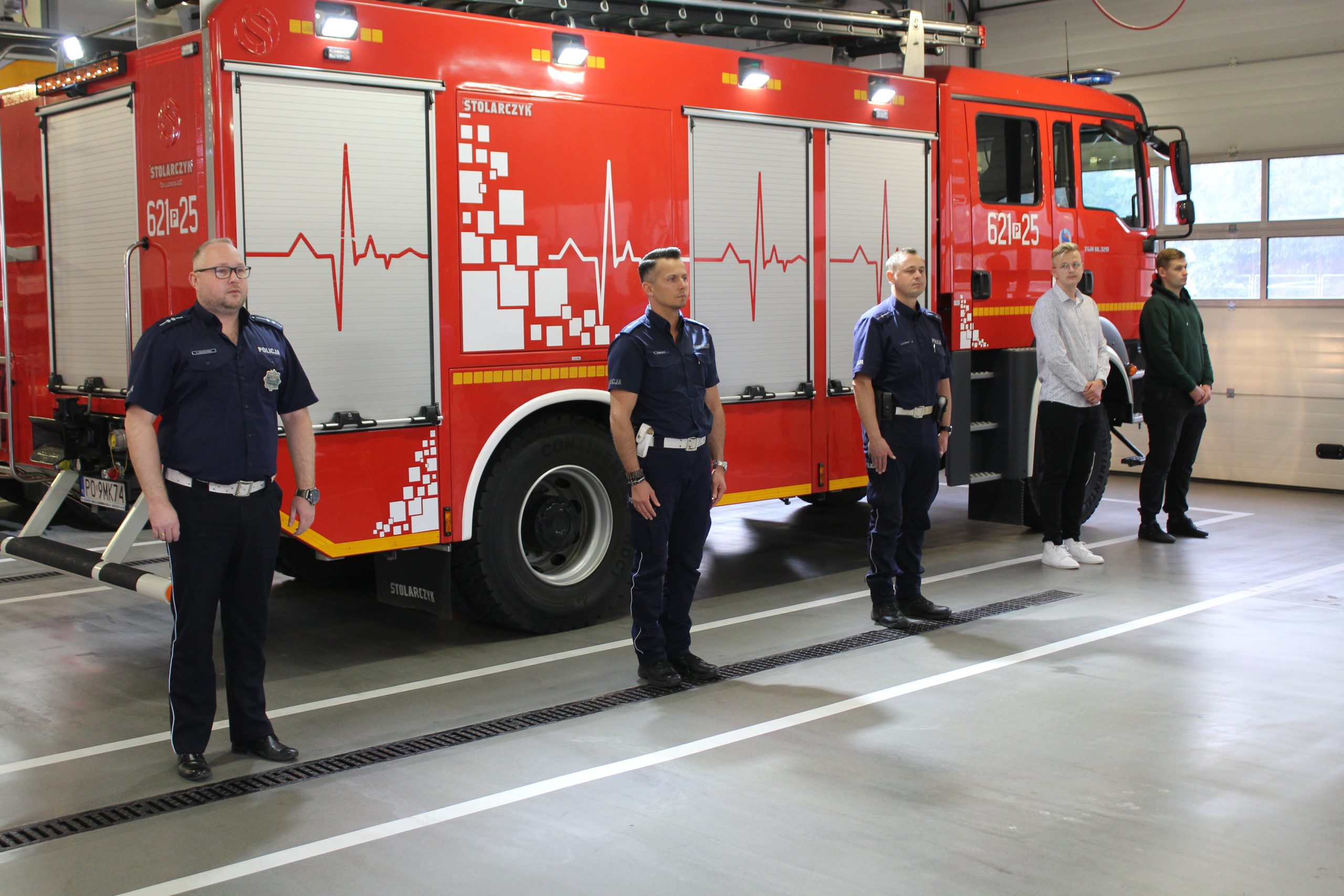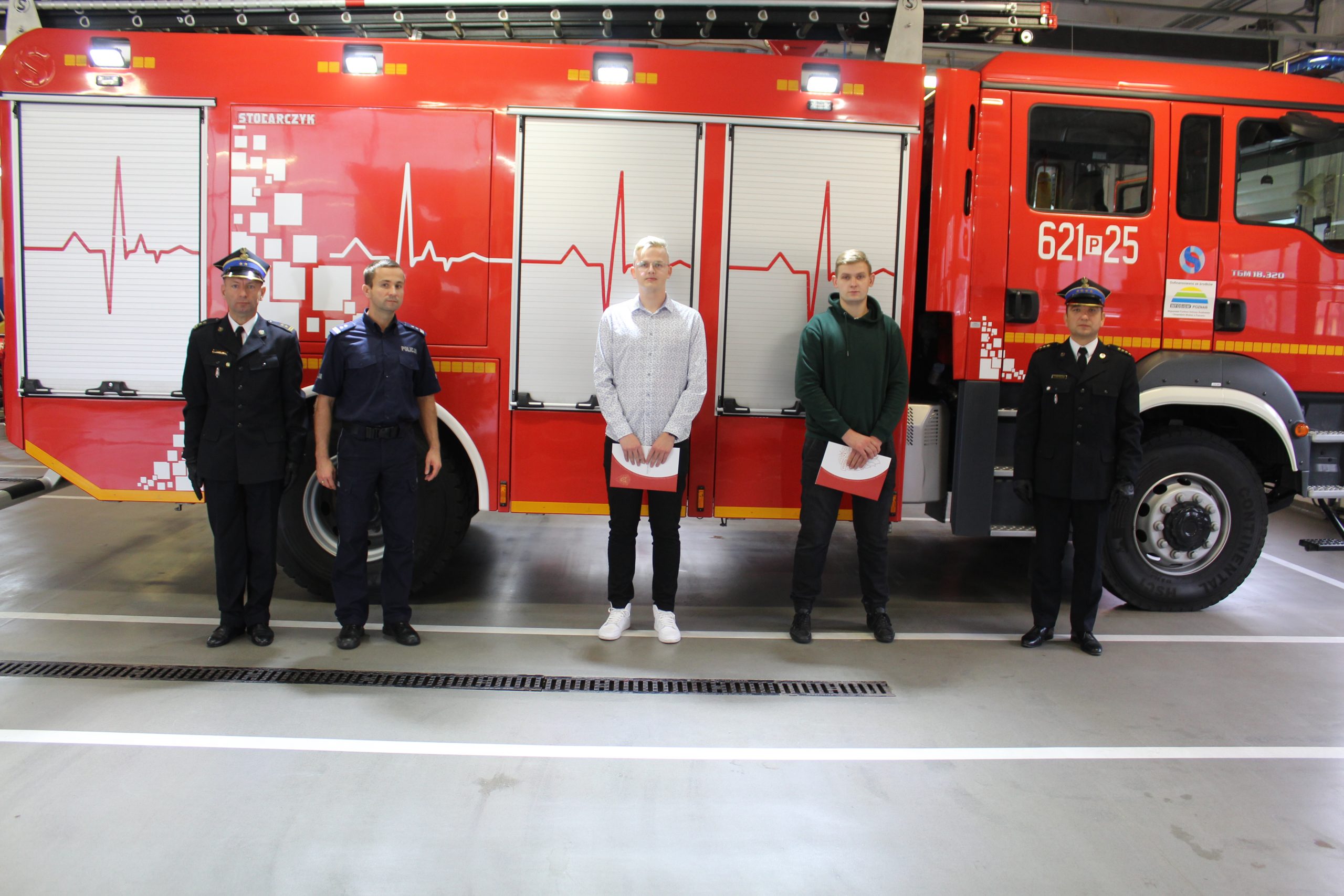 Na ręce Panów Dawida Kąpielskiego oraz Damiana Jaruszewskiego przekazano listy gratulacyjne Wielkopolskiego Komendanta Wojewódzkiego Państwowej Straży Pożarnej. Wyróżnione osoby będąc świadkami wypadku samochodu osobowego, do jakiego doszło 13 lutego 2020 r. w miejscowości Wrząca, z narażeniem własnego życia i zdrowia ewakuowali z pojazdu uwięzionego kierowcę, udzielili mu kwalifikowanej pierwszej pomocy oraz ugasili pożar komory silnika. Działania te prowadzili przed przybyciem zastępów Straży Pożarnej.