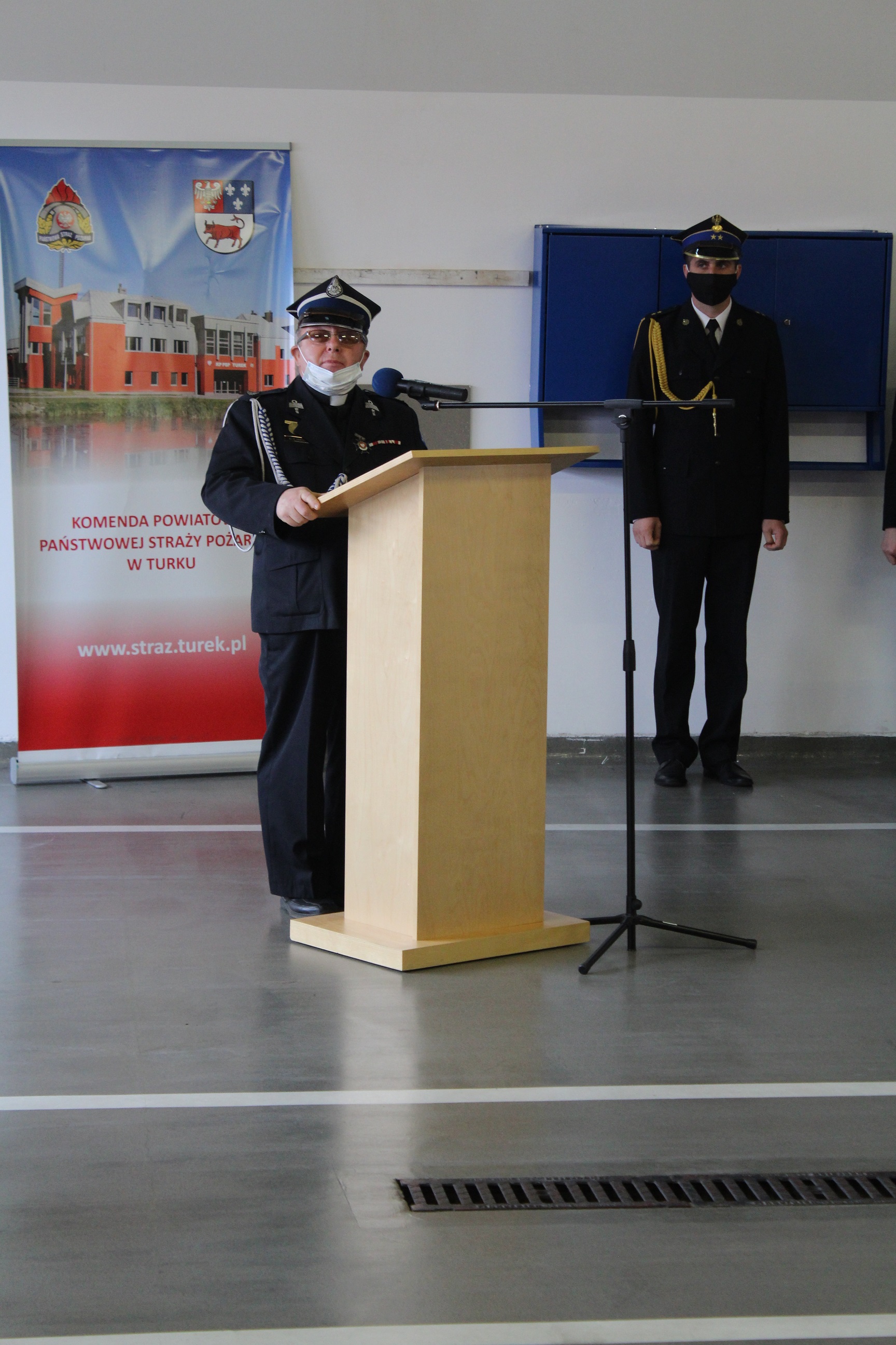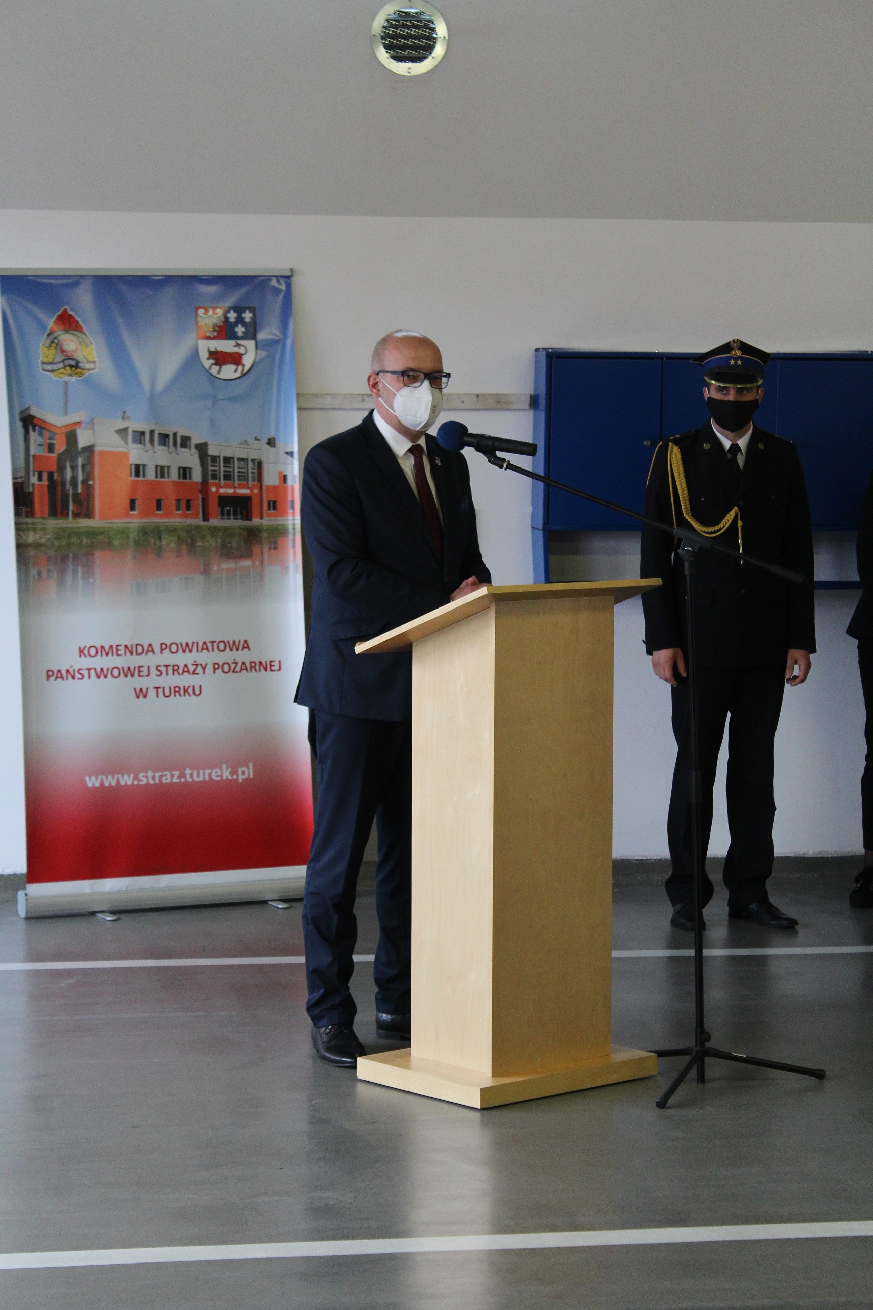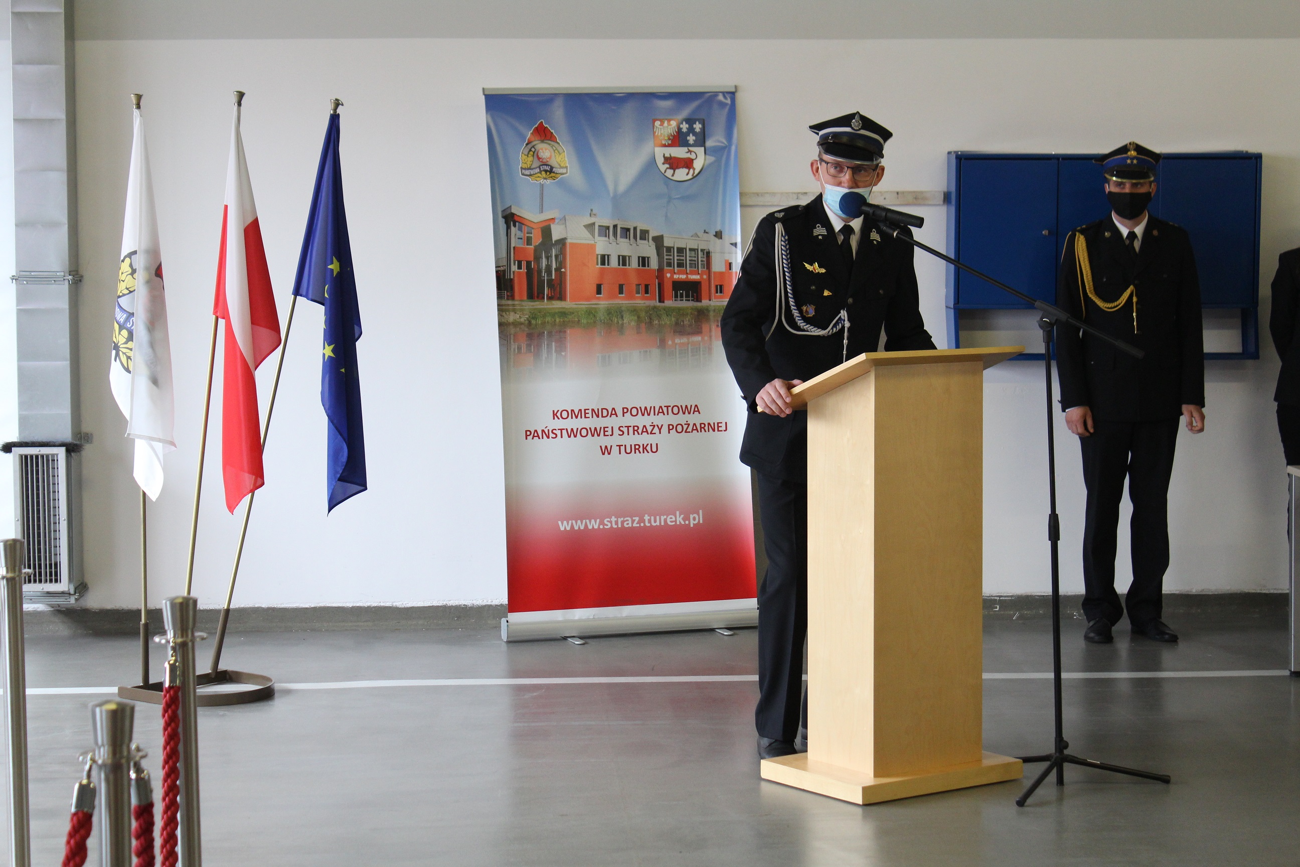 Komendant Powiatowy PSP w Turku mł. bryg. Piotr Pietrucha powitał gości, w osobach: