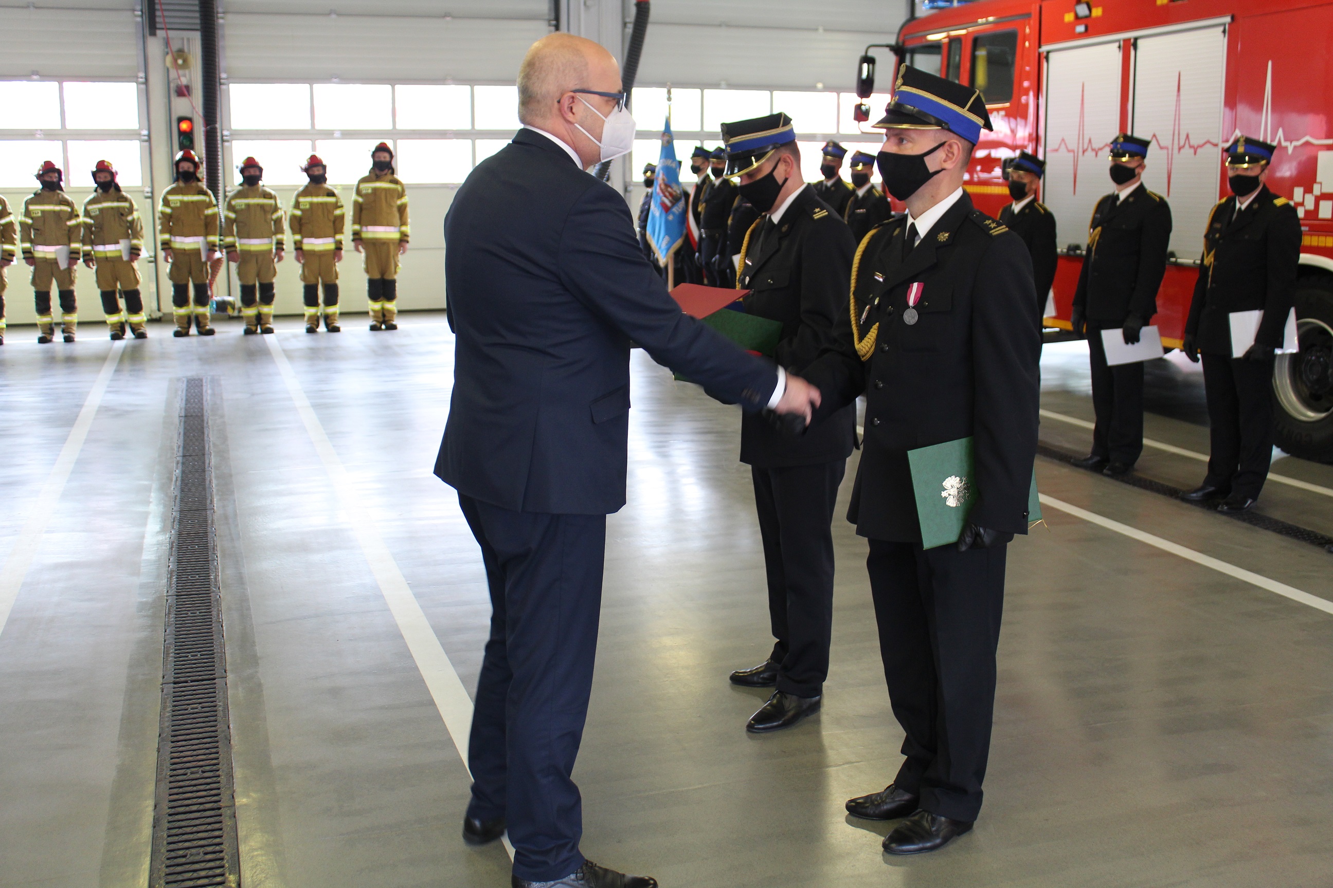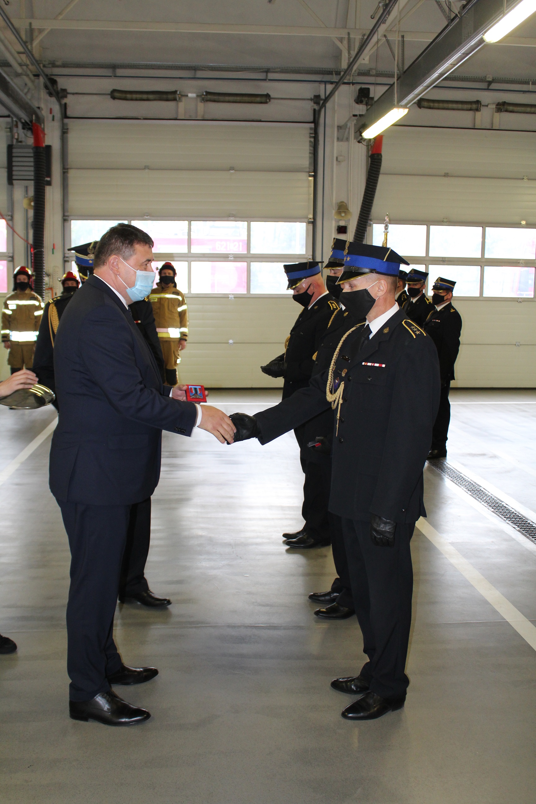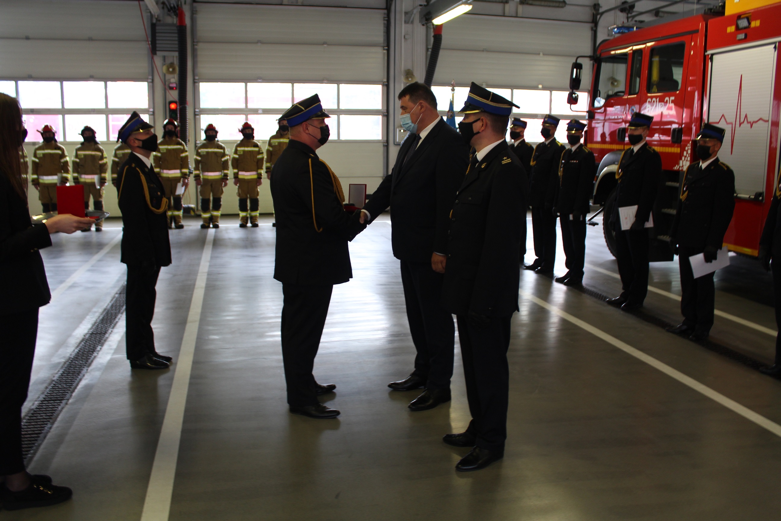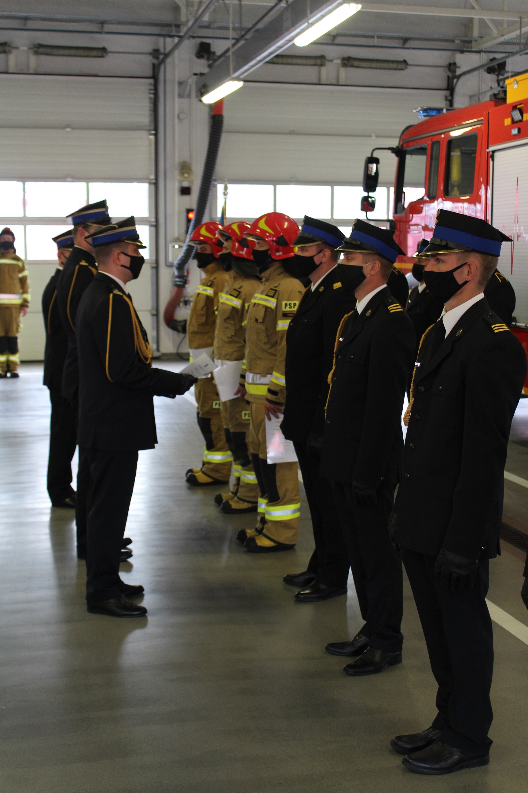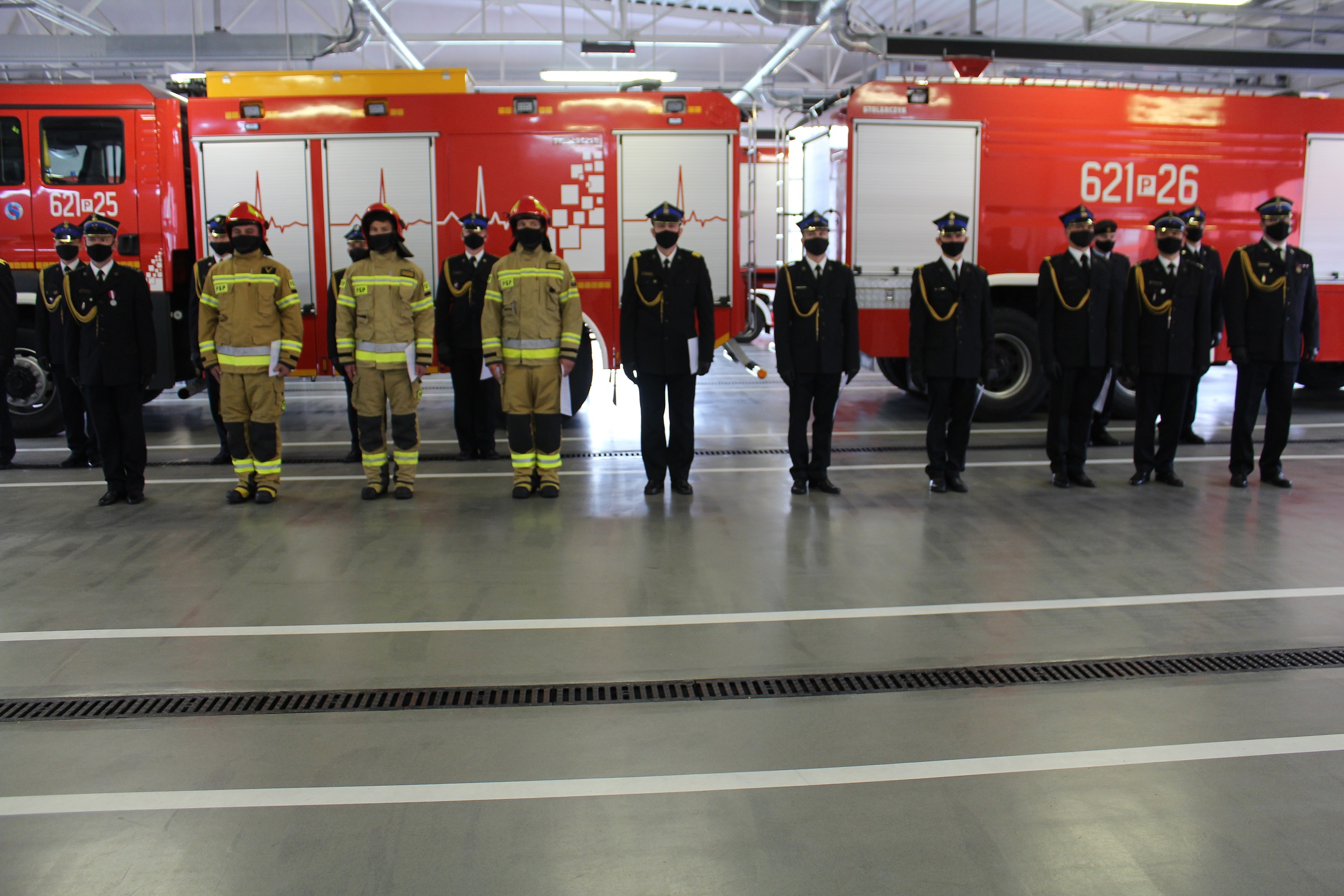 Powiatowy Dzień Strażaka był okazją do wręczenia odznaczeń oraz awansów służbowych. Srebrną odznakę „Zasłużony dla ochrony przeciwpożarowej” otrzymał jeden funkcjonariusz, natomiast brązowe odznaki „Zasłużony dla ochrony przeciwpożarowej” otrzymało dwóch funkcjonariuszy oraz jeden strażak w stanie spoczynku. Awanse na wyższe stopnie służbowe otrzymało 3 oficerów, 3 aspirantów, 7 podoficerów oraz 2 szeregowych.