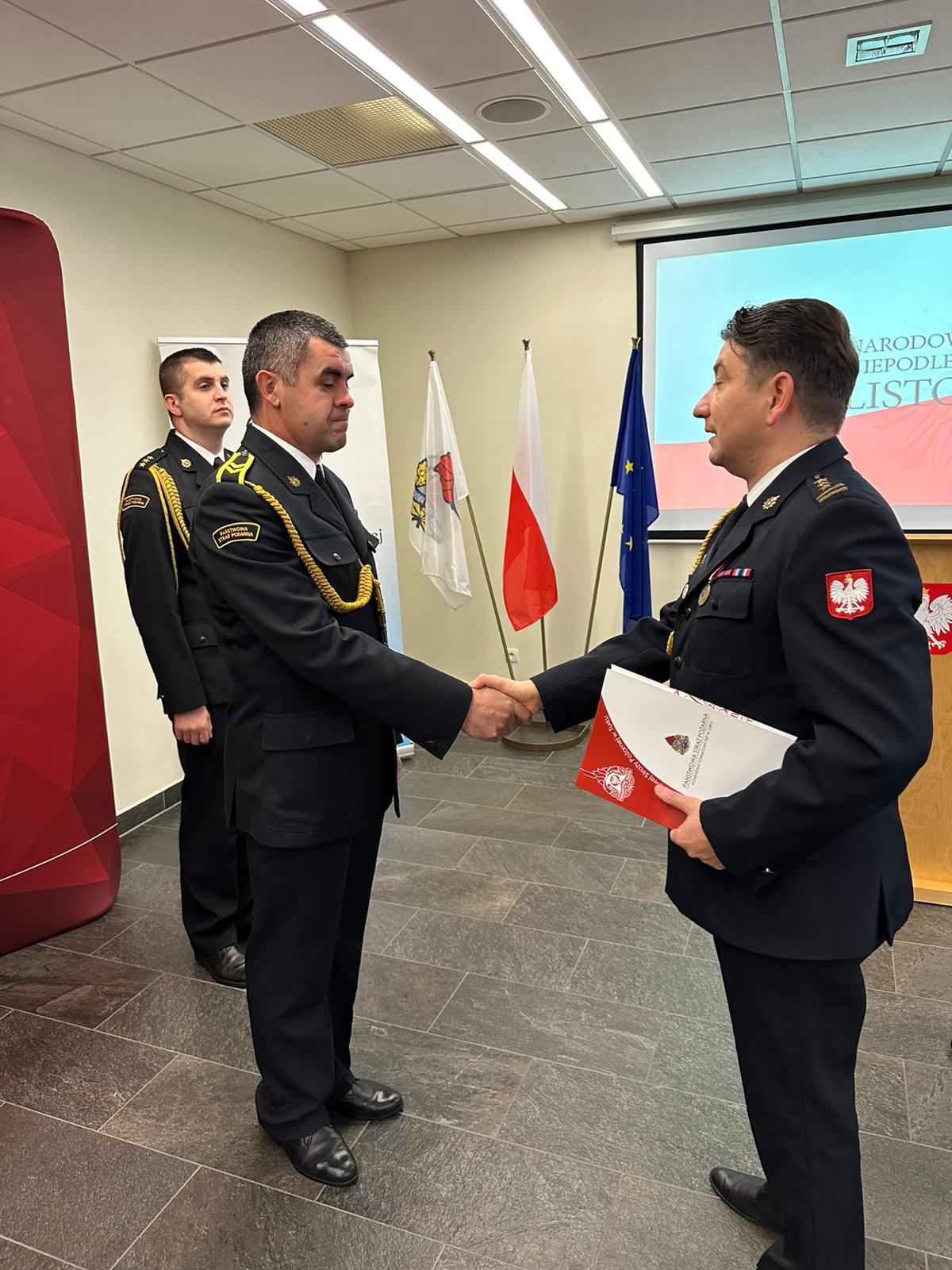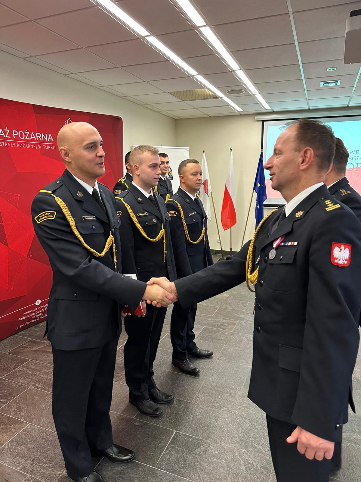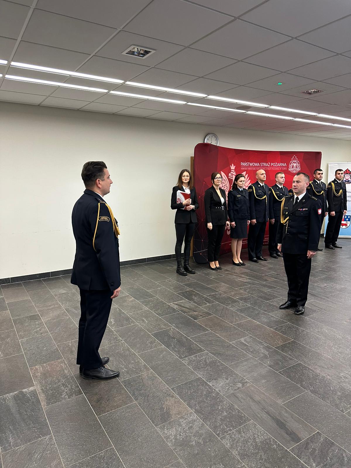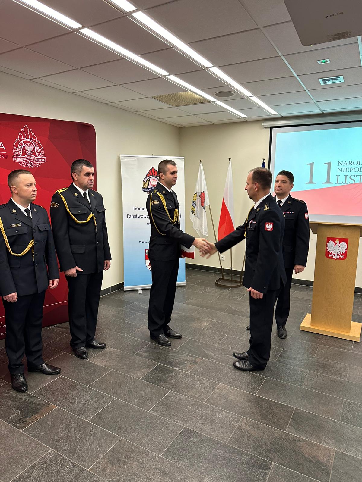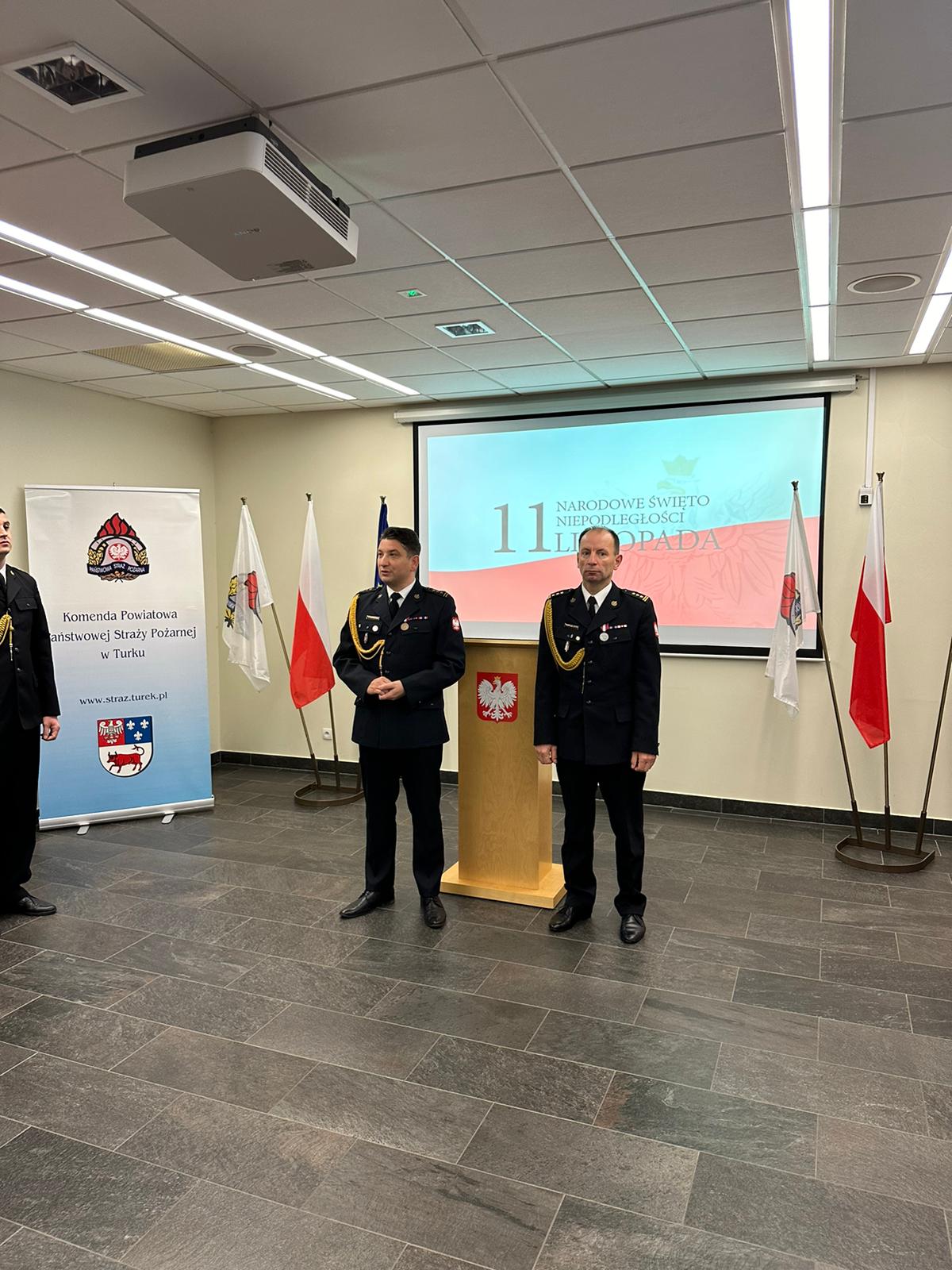 W dniu 15 listopada w Komendzie Powiatowej PSP w Turku odbyła się uroczysta zbiórka z okazji Narodowego Święta Niepodległości, w trakcie której wręczono akty nadania wyższych stopni służbowych w korpusie oficerskim i podoficerskim. Ponadto wręczono decyzje Komendanta Głównego Państwowej Straży Pożarnej oraz Wielkopolskiego Komendanta Wojewódzkiego Państwowej Straży Pożarnej o przyznaniu nagród pieniężnych za wzorowe wykonywanie obowiązków służbowych. Komendant Powiatowy PSP w Turku st. bryg. Piotr Pietrucha ponadto wyróżnił nagrodami finansowymi pracowników Korpusu Służby Cywilnej z okazji Święta Korpusu Służby Cywilnej przypadającego również na 11 listopada.