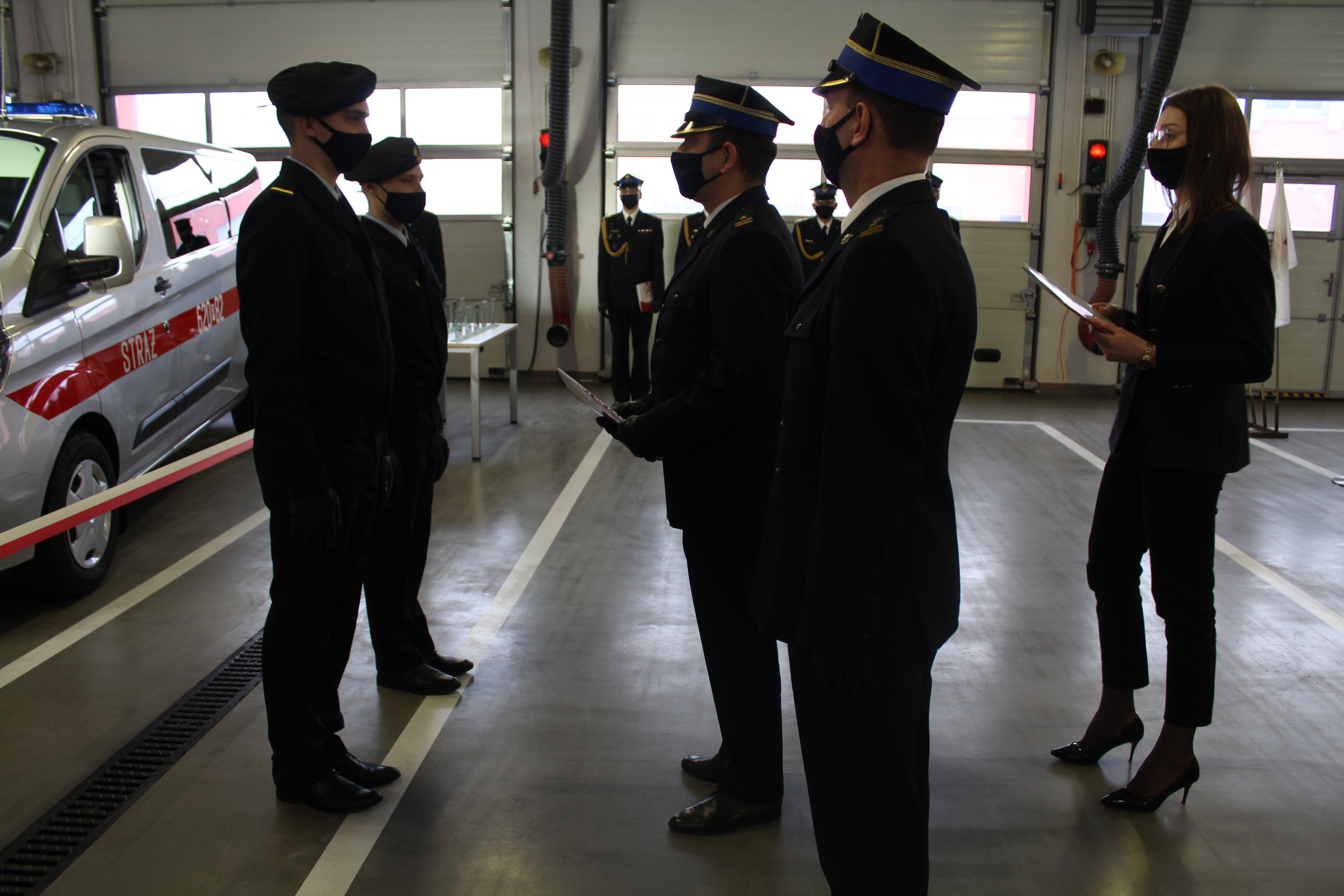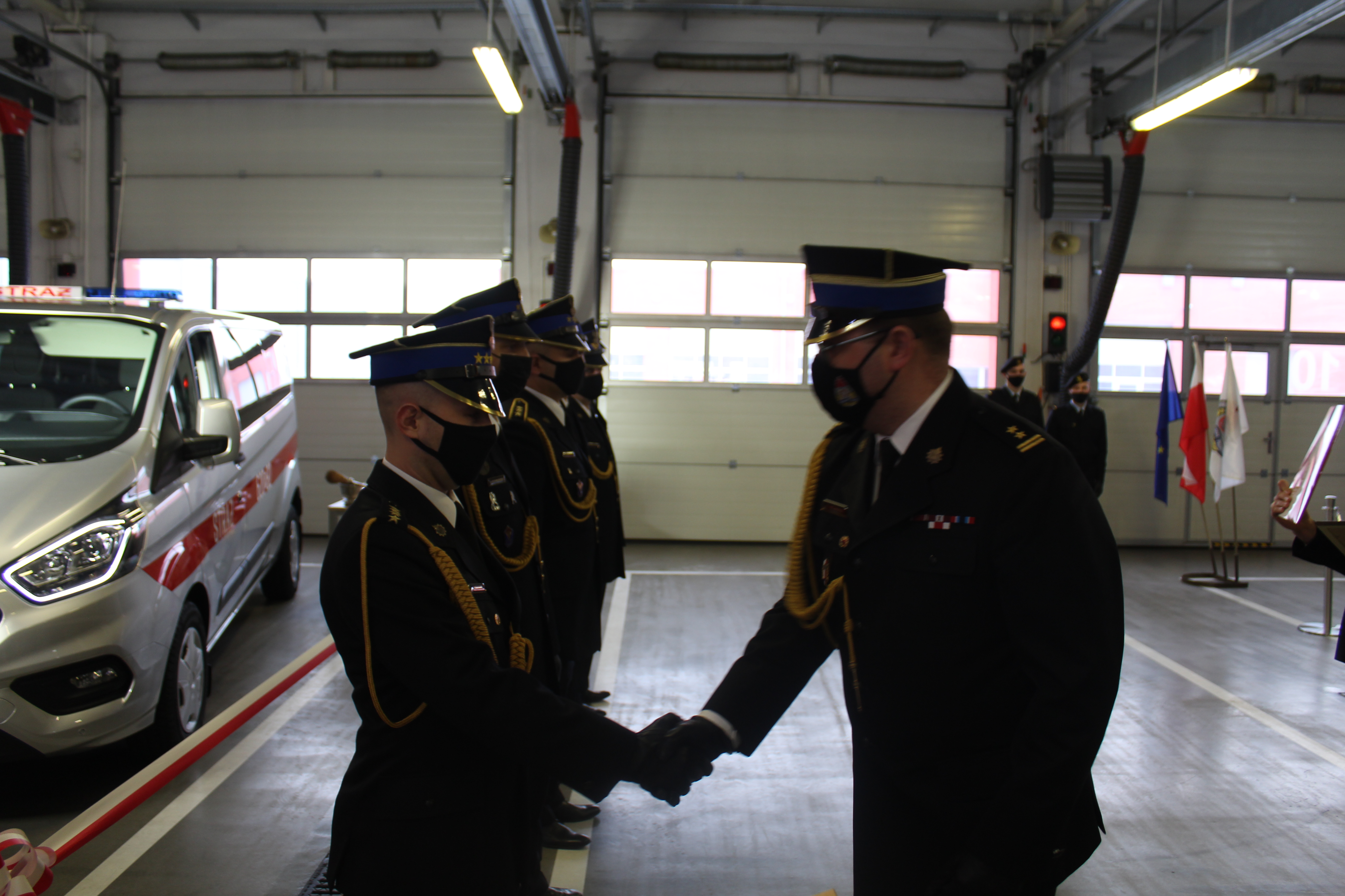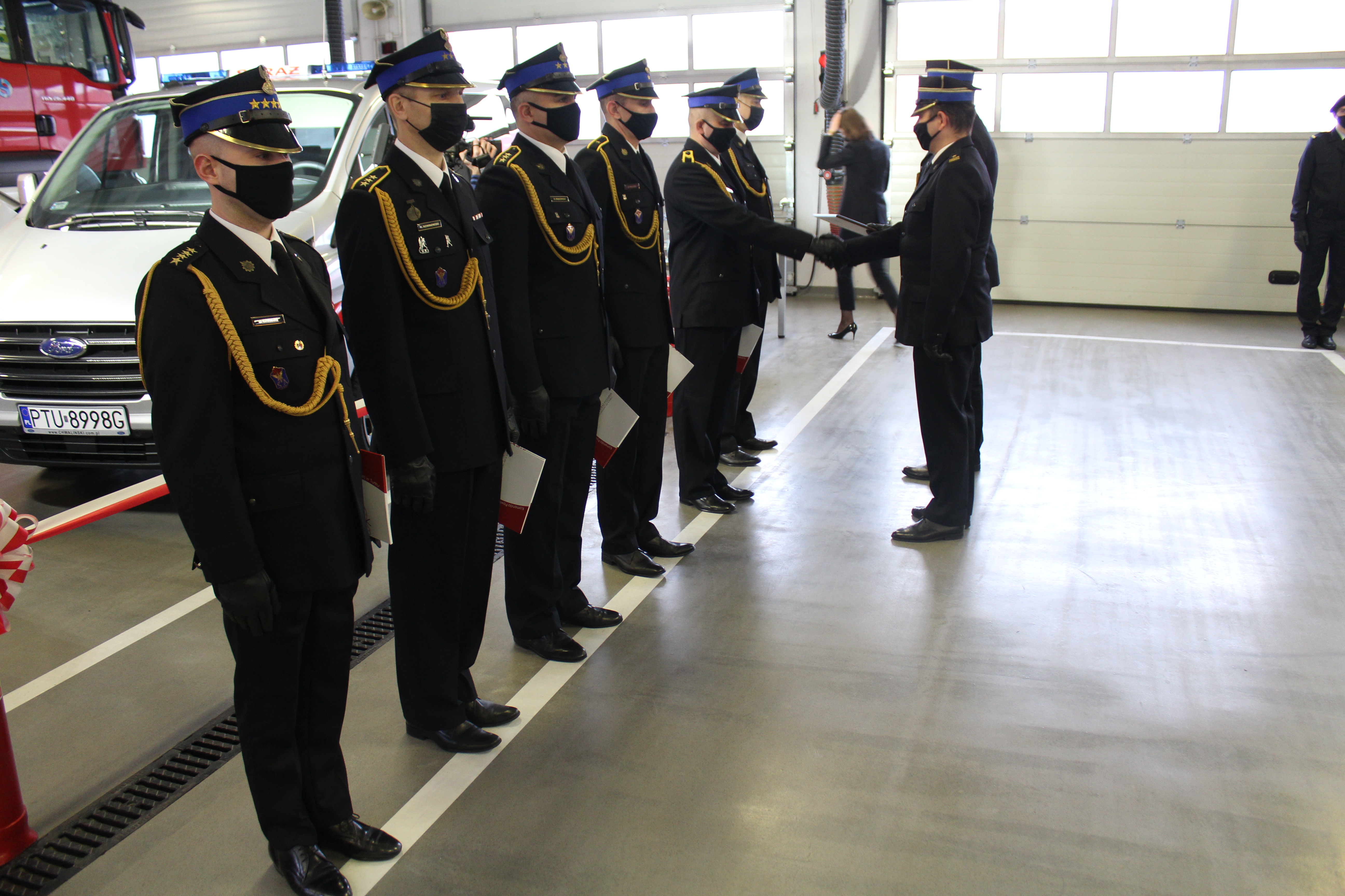 Przekazanie pojazdów było okazją do wręczenia awansów na wyższe stopnie służbowe oraz odznaczeń nadanych z okazji Narodowego Święta Niepodległości dla funkcjonariuszy pełniących na co dzień służbę w Jednostce Ratowniczo-Gaśniczej w Turku.