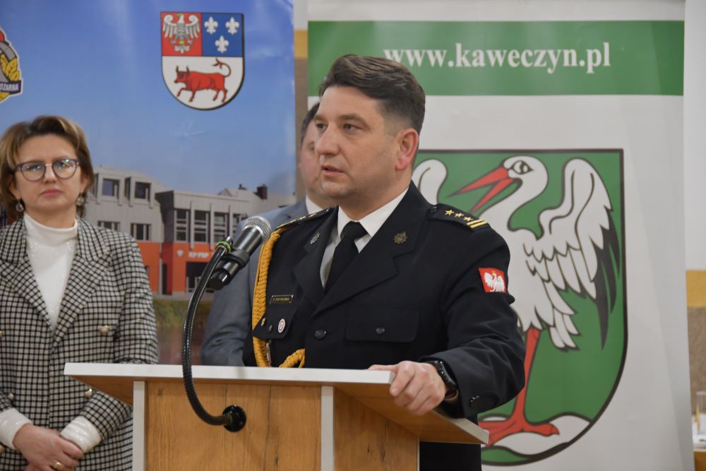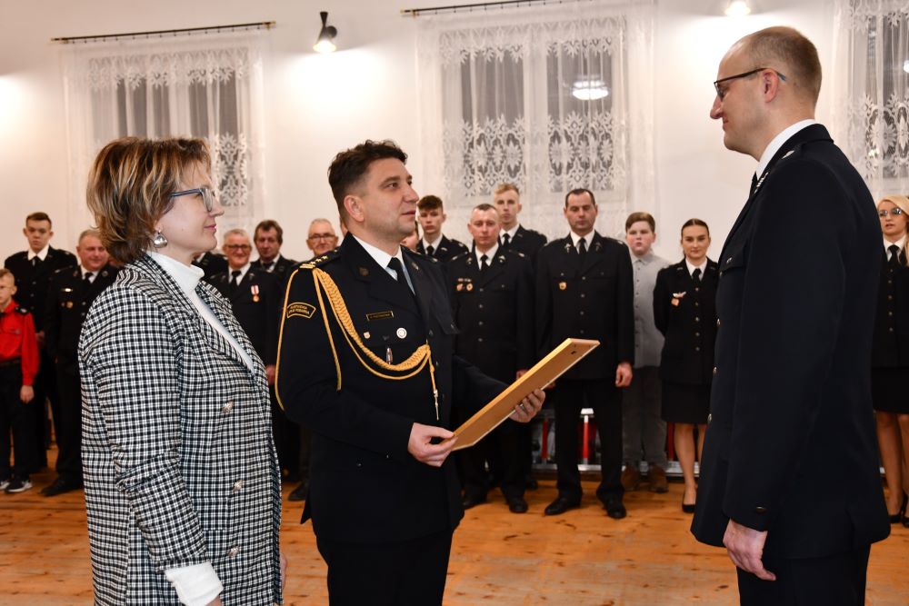 Akt włączenia do KSRG wręczyli komendant powiatowy PSP w Turku – st. bryg. Piotr Pietrucha oraz zastępca wójta Gminy Kawęczyn – Elżbieta Tomczak.
