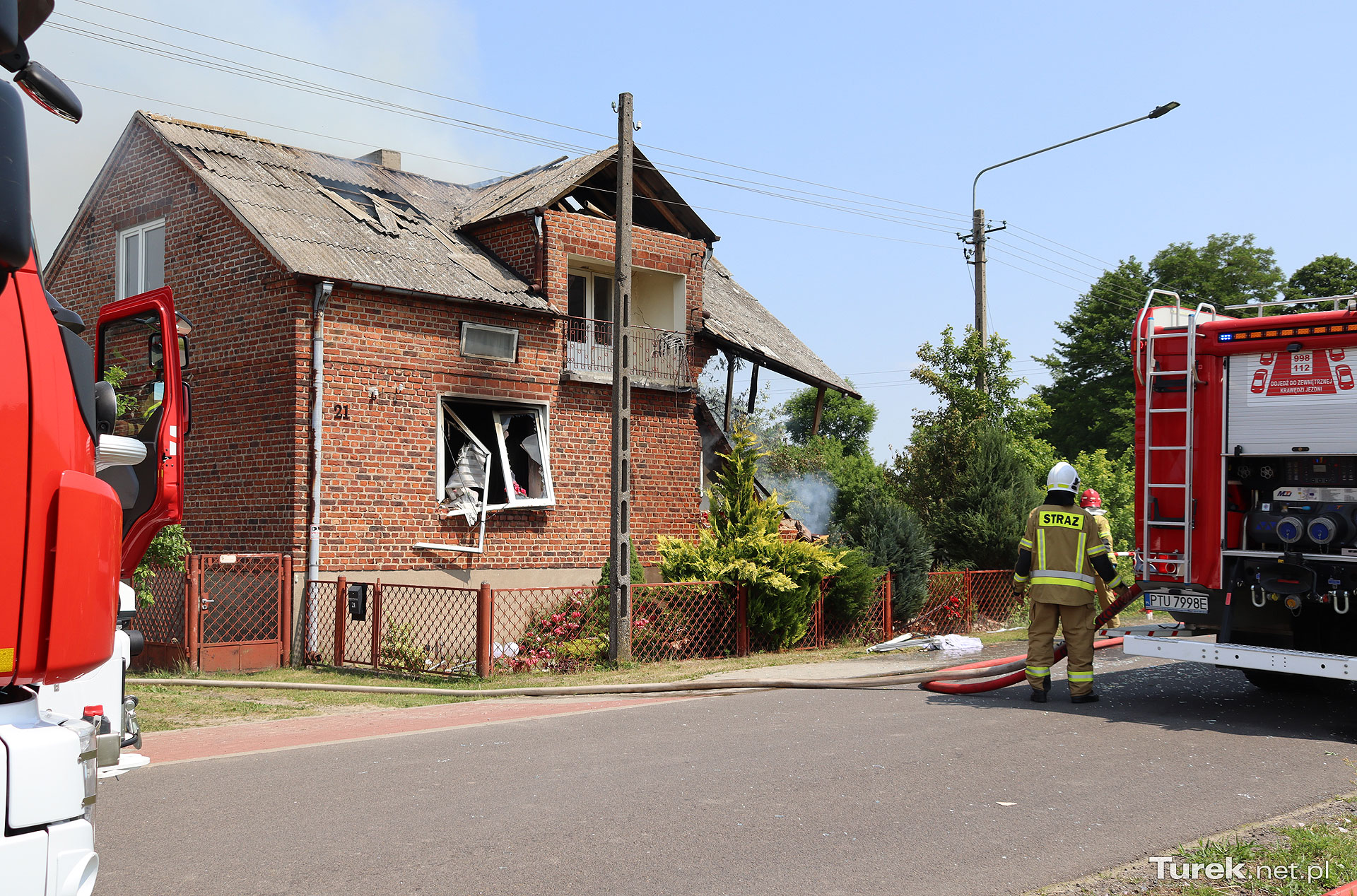 W dniu 20 czerwca 2023r o godzinie 11.36 do Stanowiska Kierowania Komendanta Powiatowego PSP w Turku wpłynęło zgłoszenie o wybuchu w domu jednorodzinnym w miejscowości Bądków Pierwszy Gmina Przykona.