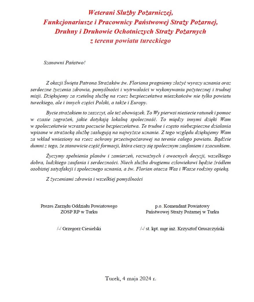 ŻYCZENIA Z OKAZJI DNIA STRAŻAKA