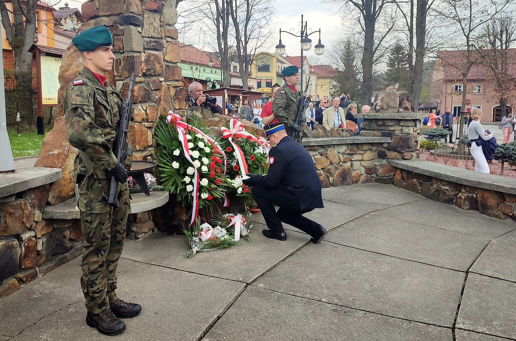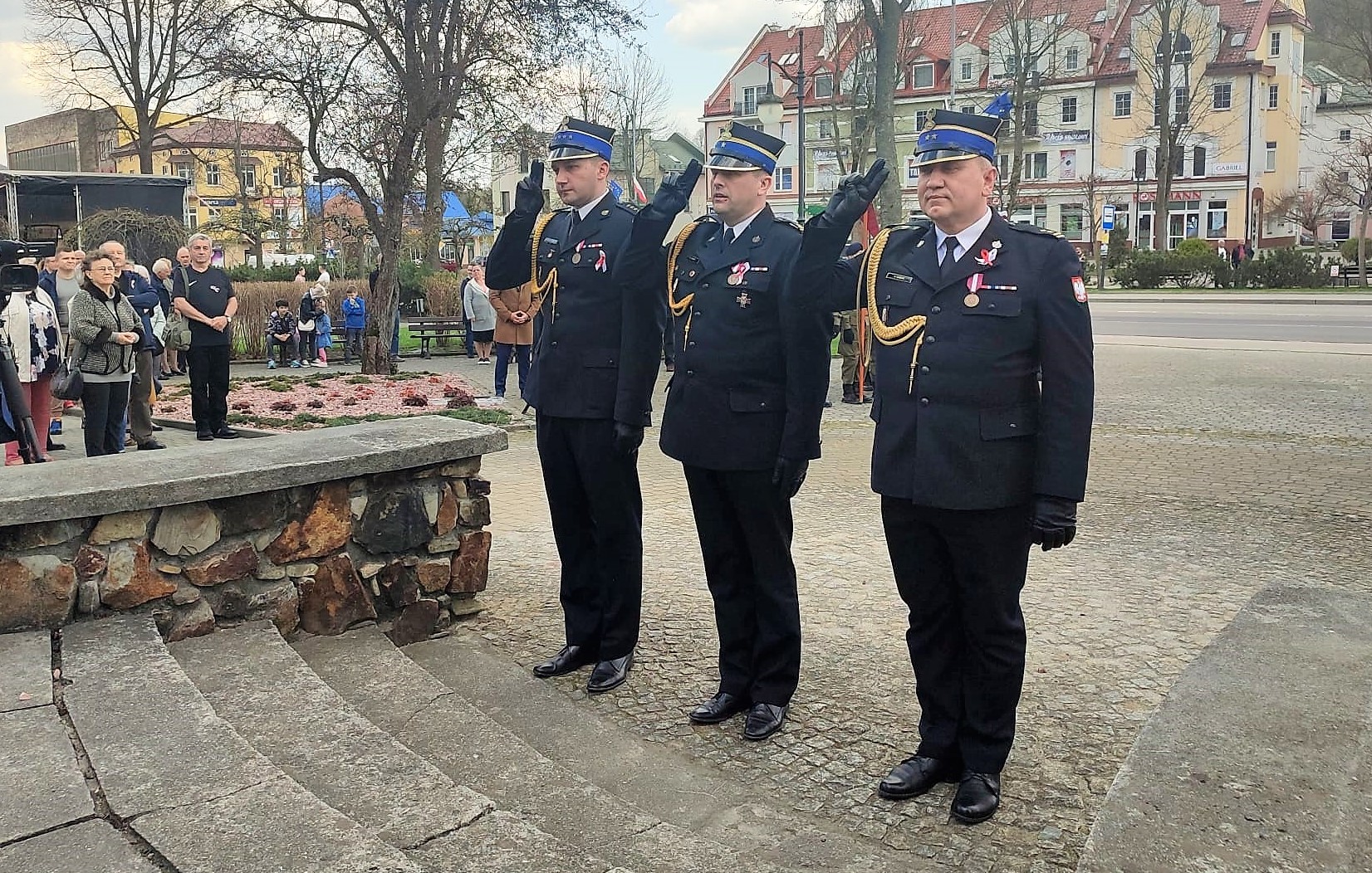 Uchwalona 3 maja 1791 roku Konstytucja była pierwszą w Europie i drugą na świecie spisaną ustawą zasadniczą, która stała się dokumentem tworzącym tożsamość suwerennego narodu. W ramach obchodów 231. na Ustrzyckim rynku, komendant powiatowy Państwowej Straży Pożarnej w Ustrzykach Dolnych mł. bryg. Emil Szmyd, zastępca komendanta powiatowego bryg. Przemysław Kruk oraz st. kpt. Marcin Szyjduk - zastępca dowódcy JRG, uroczyście złożyli kwiaty oraz oddali hołd pod pomnikiem Żołnierza Polskiego.