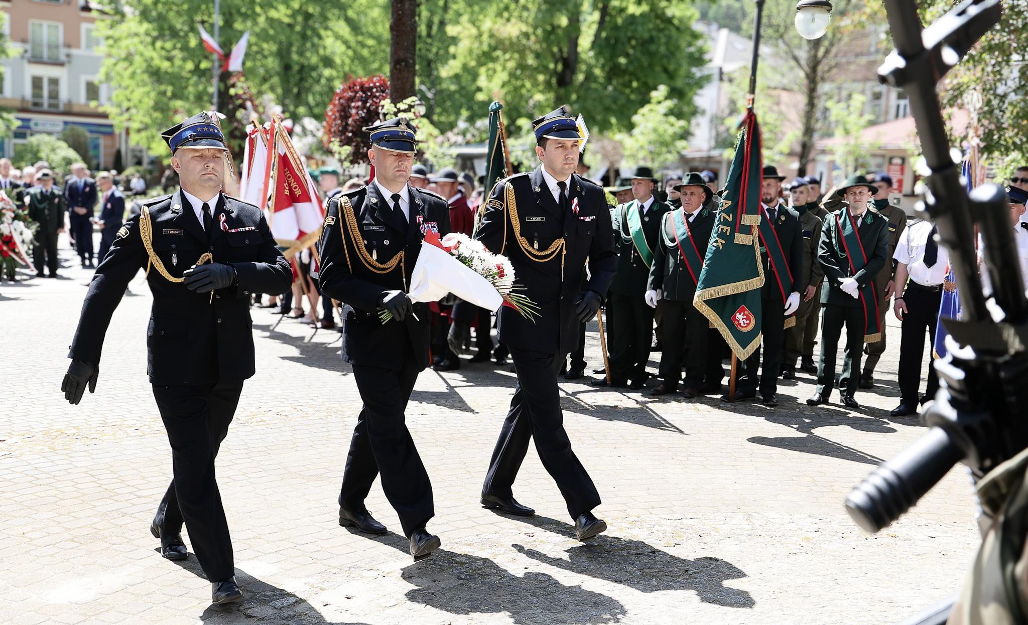 Ustrzycki rynek ożywił się 3 maja podczas uroczystych obchodów upamiętniających 233. rocznicę Uchwalenia Konstytucji. Wśród uczestników znalazła się delegacja z Komendy Powiatowej Państwowej Straży Pożarnej w Ustrzykach Dolnych, na czele z Komendantem Powiatowym PSP, bryg. Emilem Szmydem, zastępcą Komendanta Powiatowego, mł. bryg. Marcinem Szyjdukiem oraz st. kpt. Tomaszem Dacko. W symbolicznym geście oddania hołdu bohaterom, delegacja złożyła kwiaty pod pomnikiem Żołnierza Polskiego, upamiętniając tych, którzy walczyli o wolność i suwerenność naszej ojczyzny.