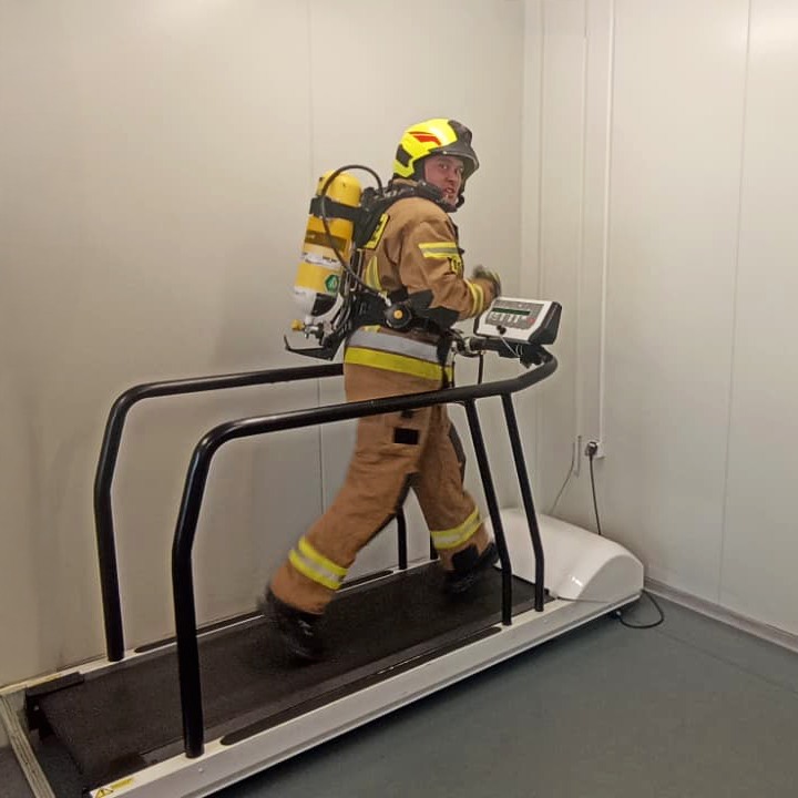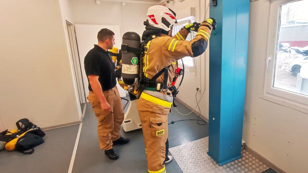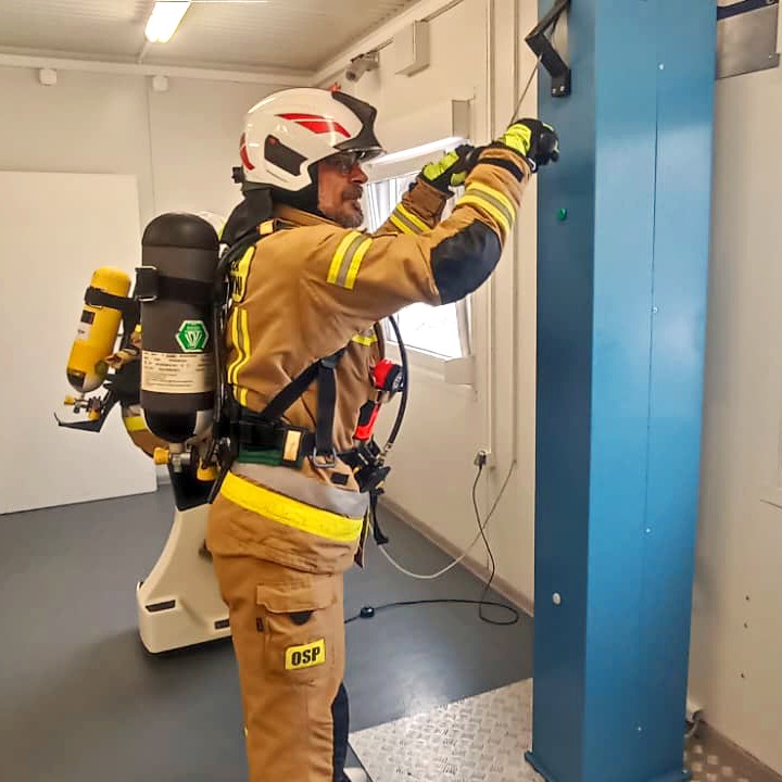 Ćwiczenia ratowników OSP w komorze dymowej