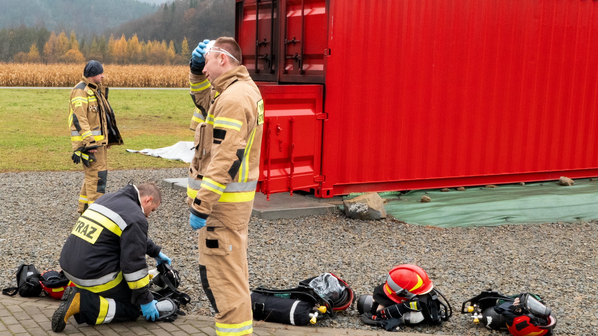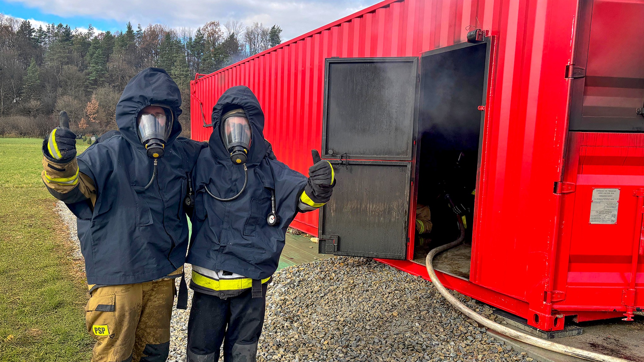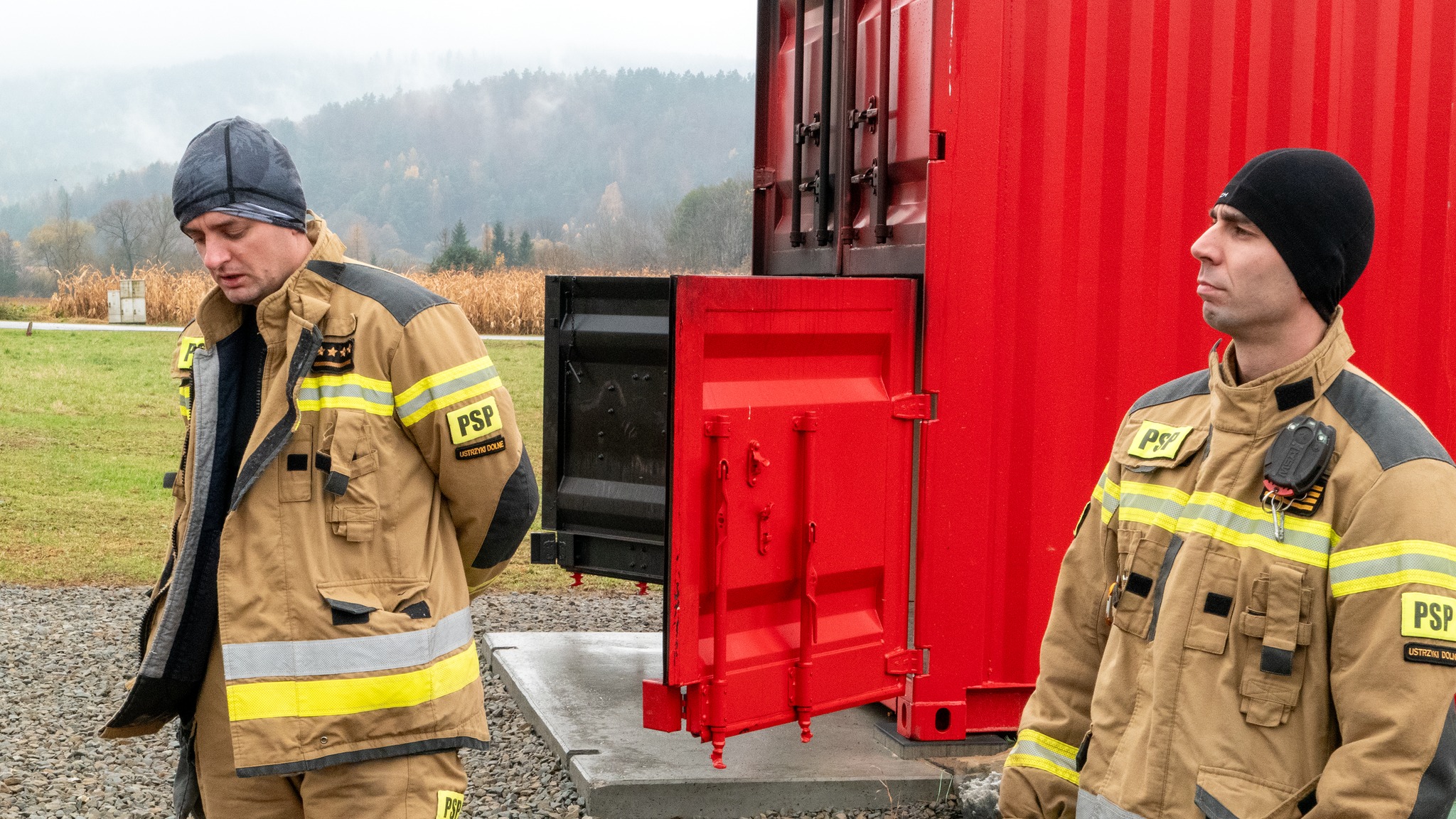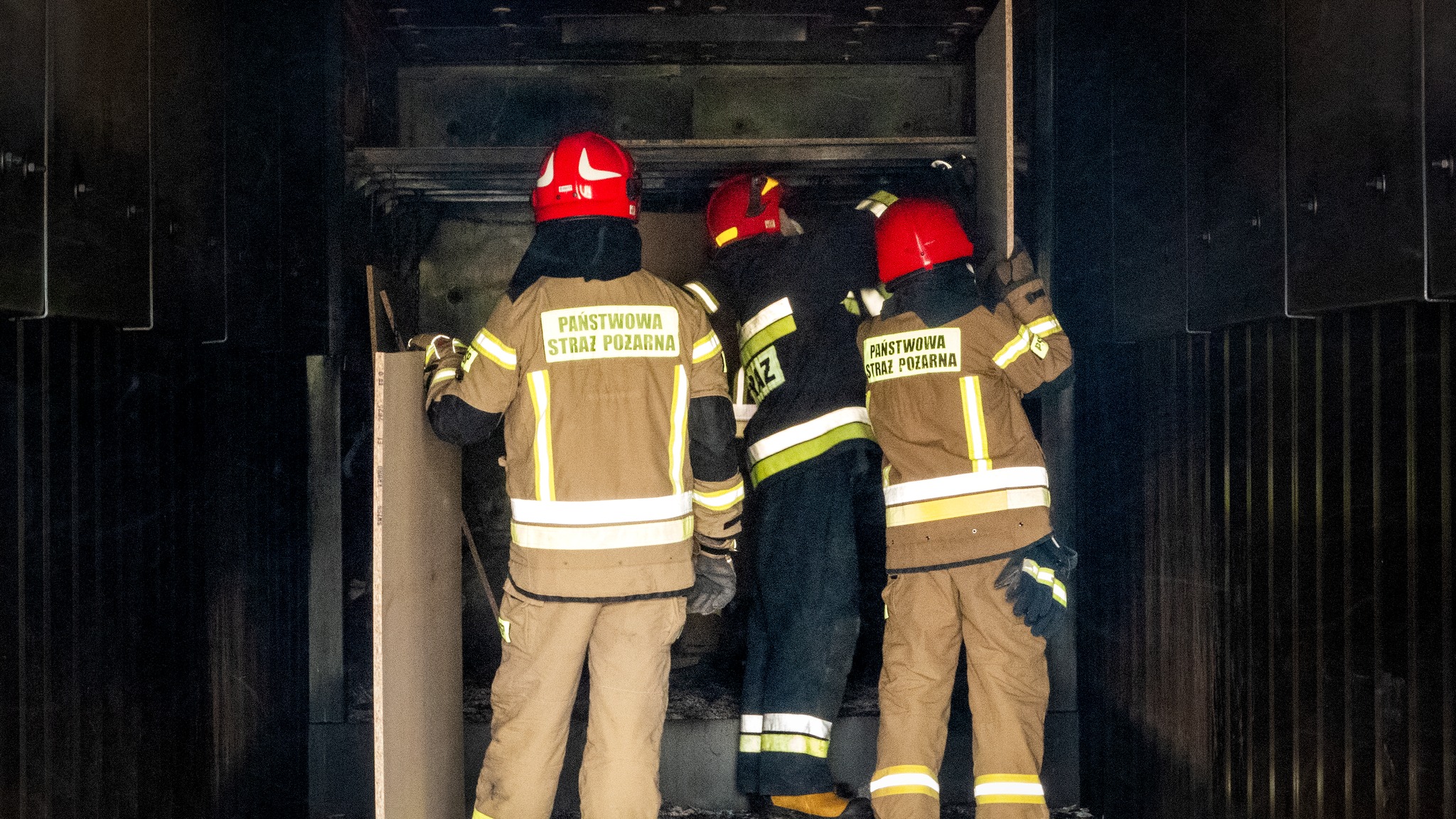 Ćwiczenia strażaków z JRG Ustrzyki Dolne w komorze rozgorzeniowej