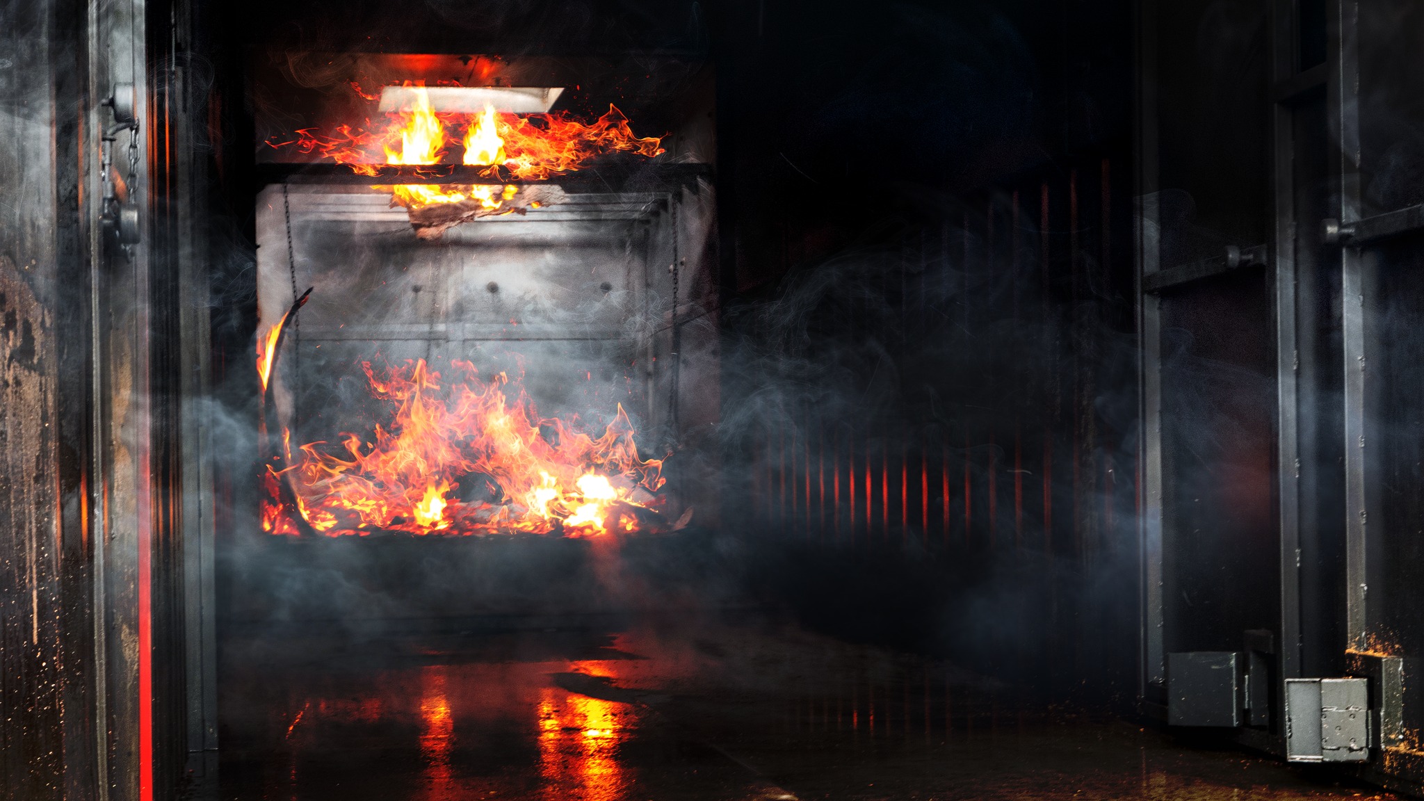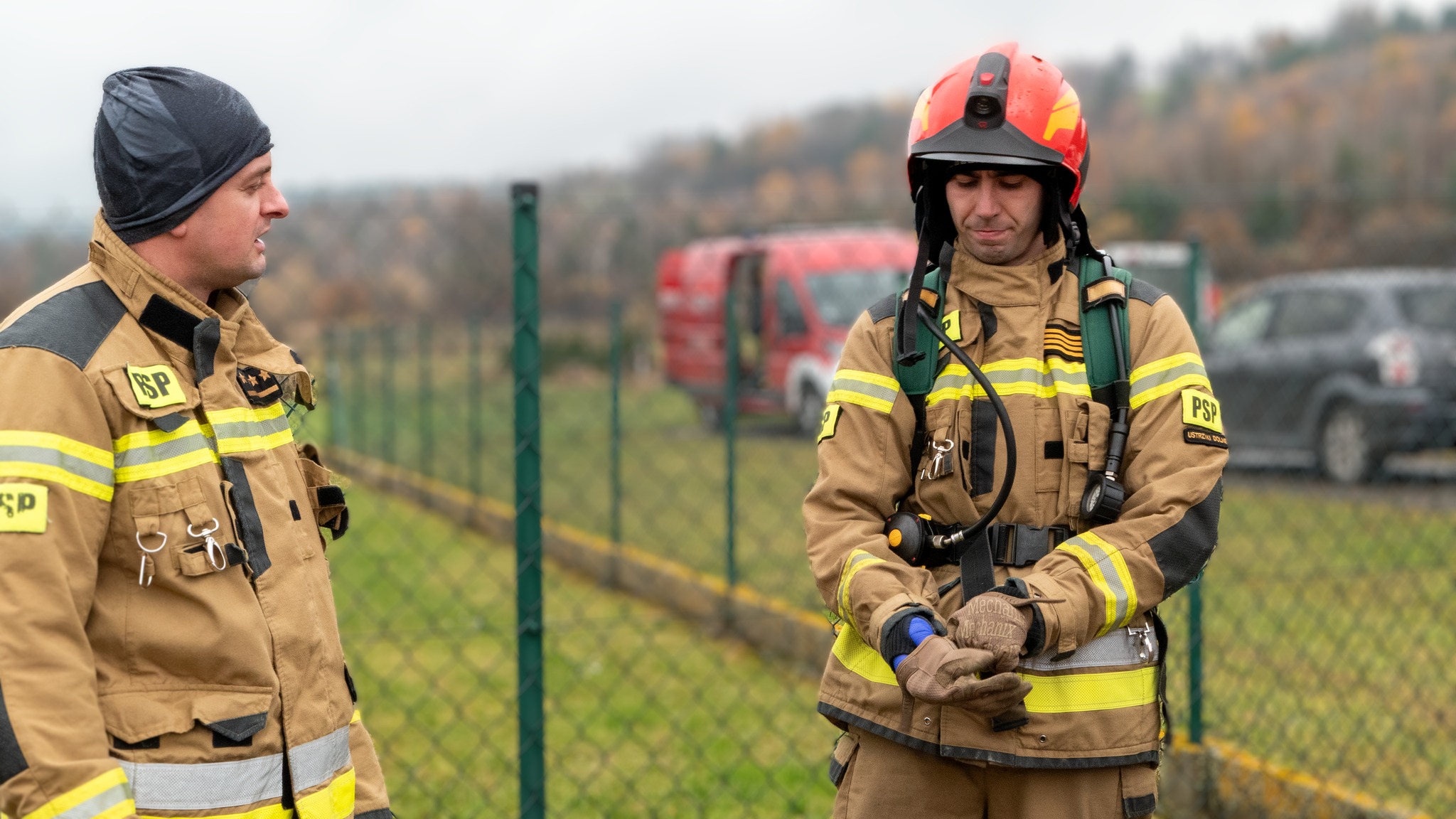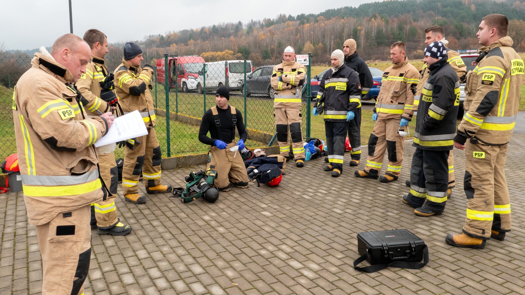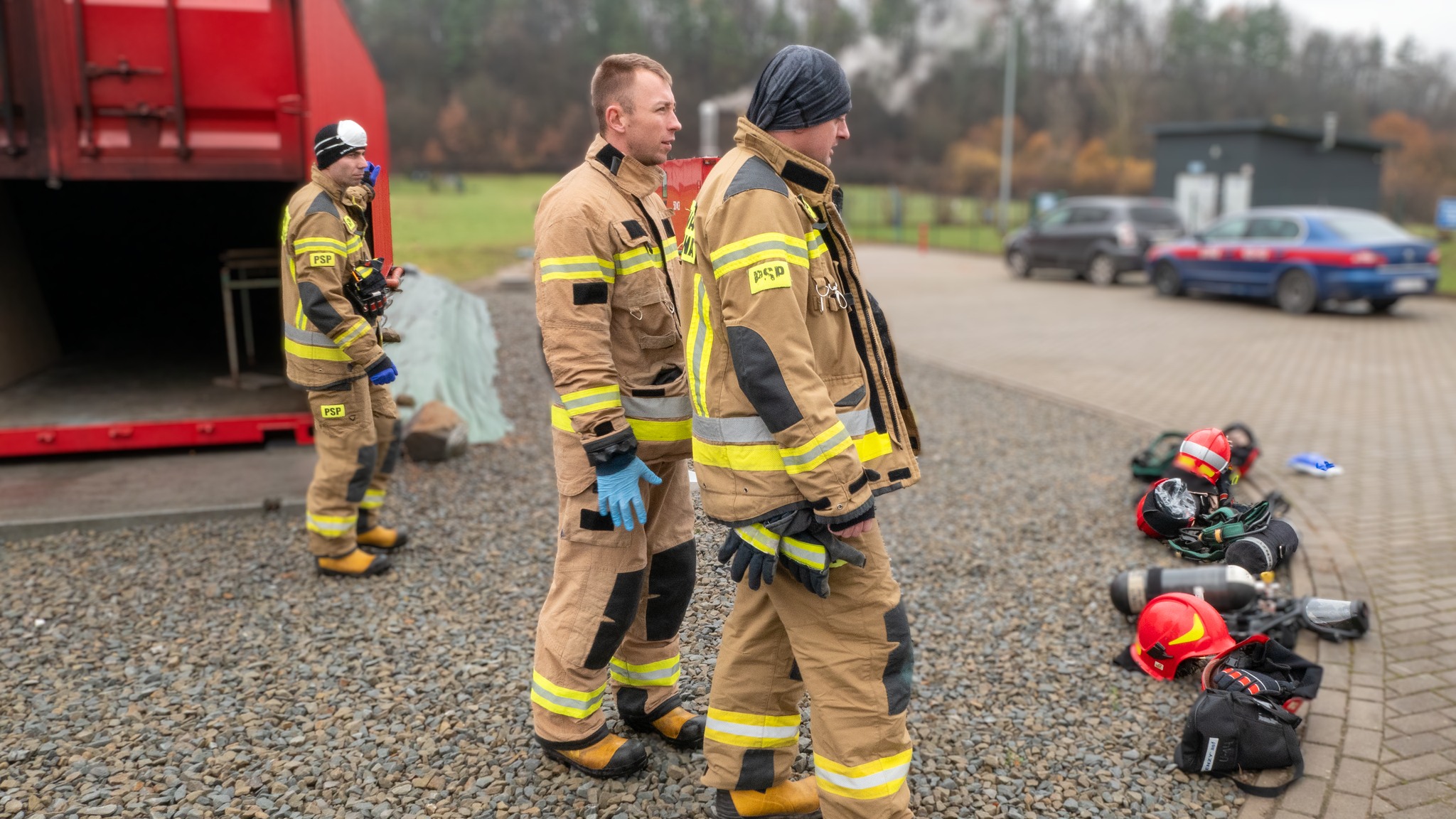 Ćwiczenia strażaków z JRG Ustrzyki Dolne w komorze rozgorzeniowej