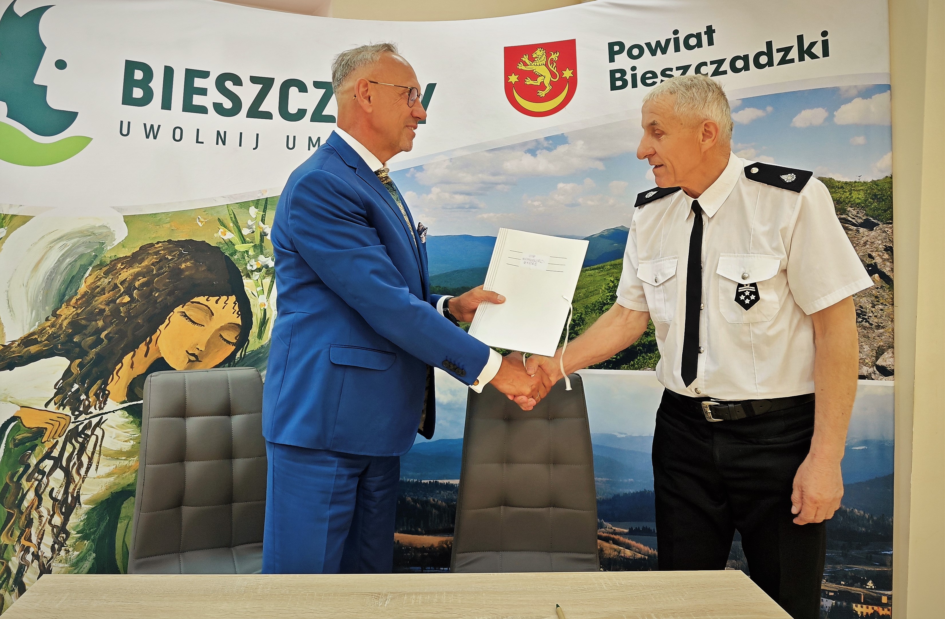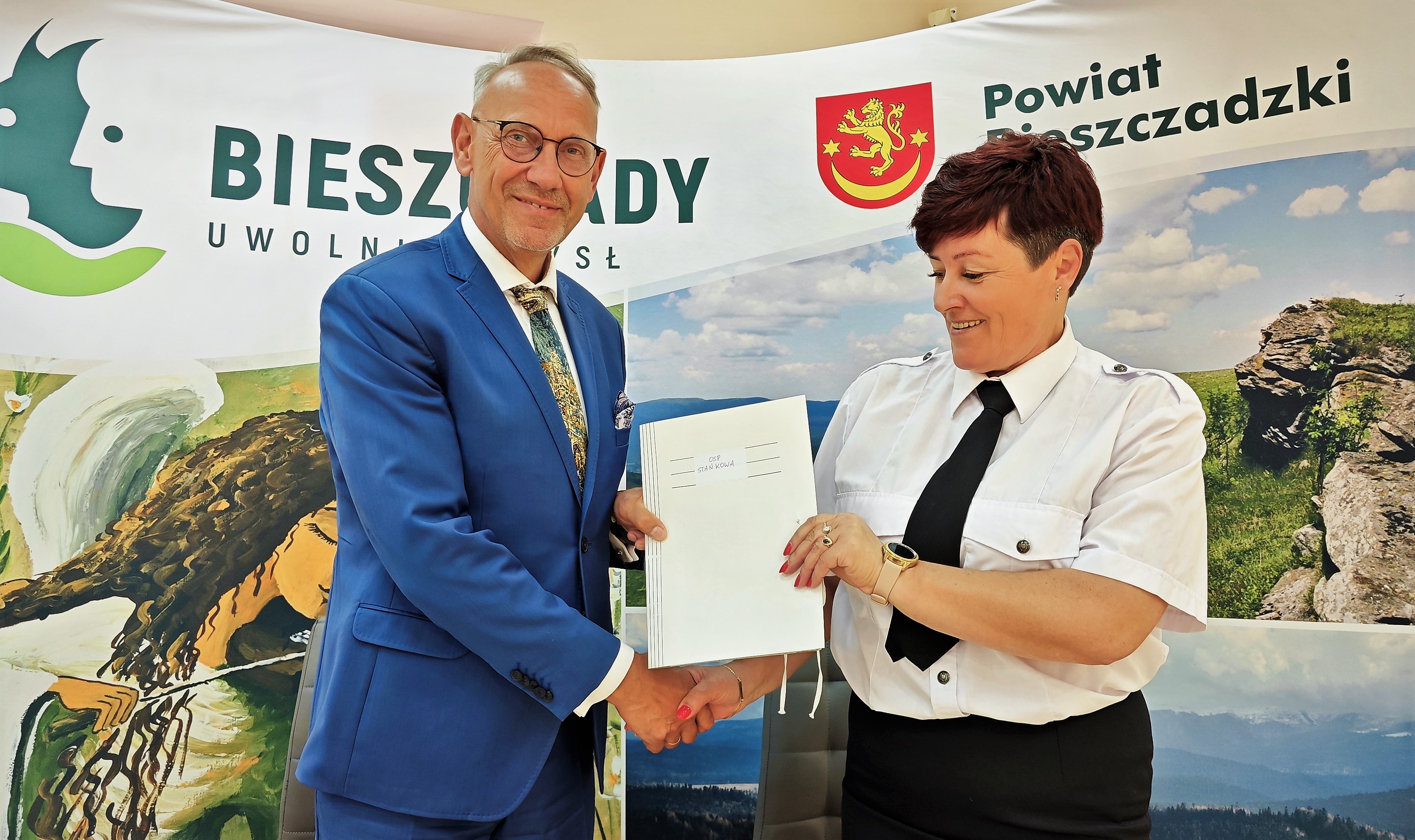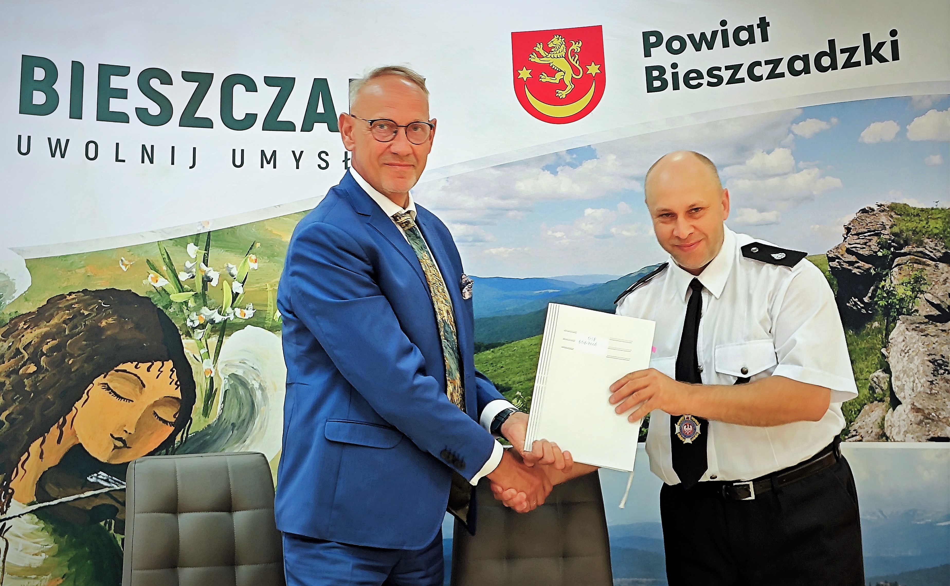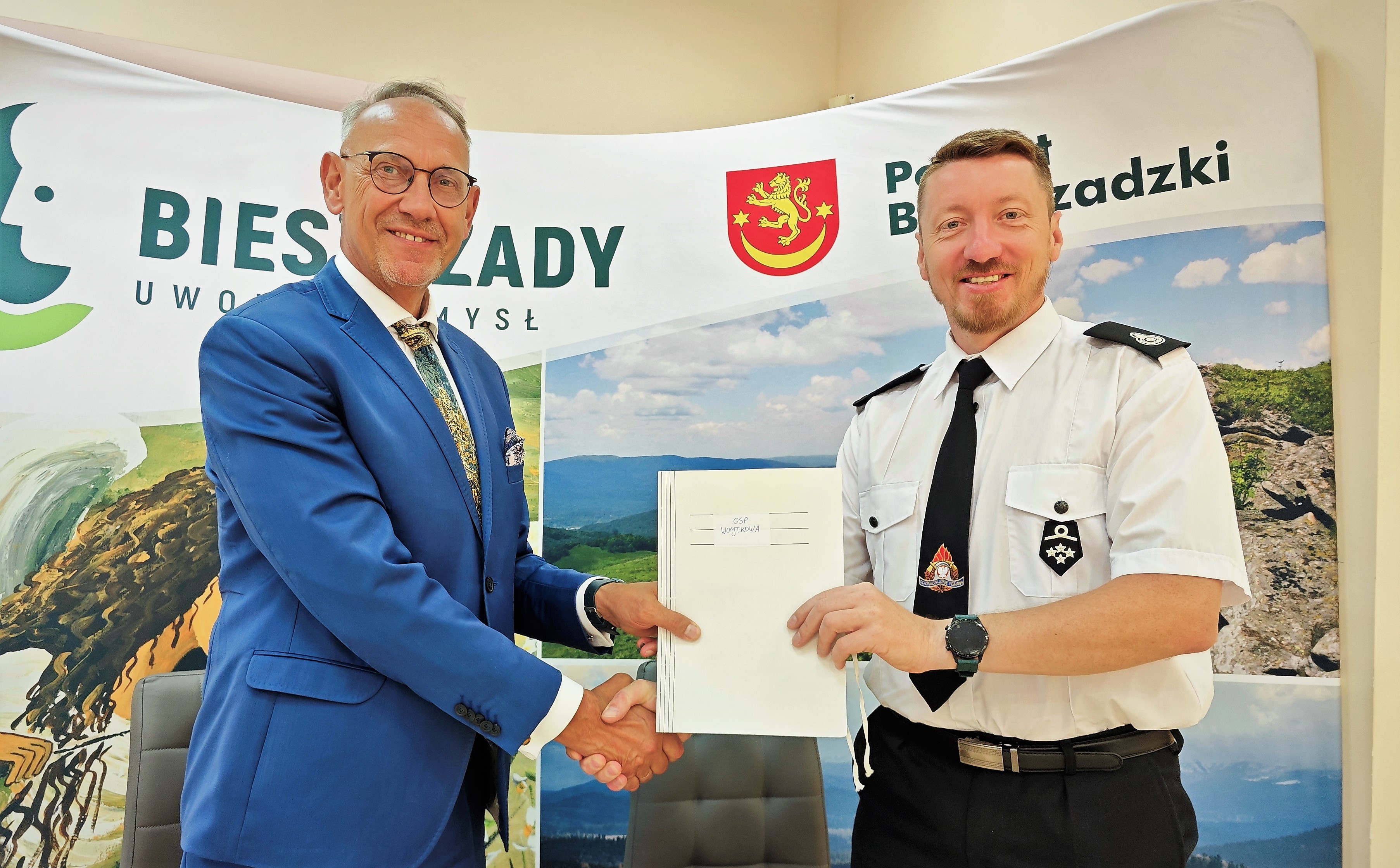 1 czerwca w siedzibie starostwa powiatowego w Ustrzykach Dolnych miało miejsce wręczenie decyzji dotyczących przyznania środków finansowych w ramach programu Wojewódzkiego Funduszu Ochrony Środowiska i Gospodarki Wodnej pn. Dofinansowanie zakupu sprzętu i wyposażenia jednostek Ochotniczych Straży Pożarnych – 2023 r. Decyzje wręczał Prezes Zarządu WOŚiGW Pan Adam Skiba.