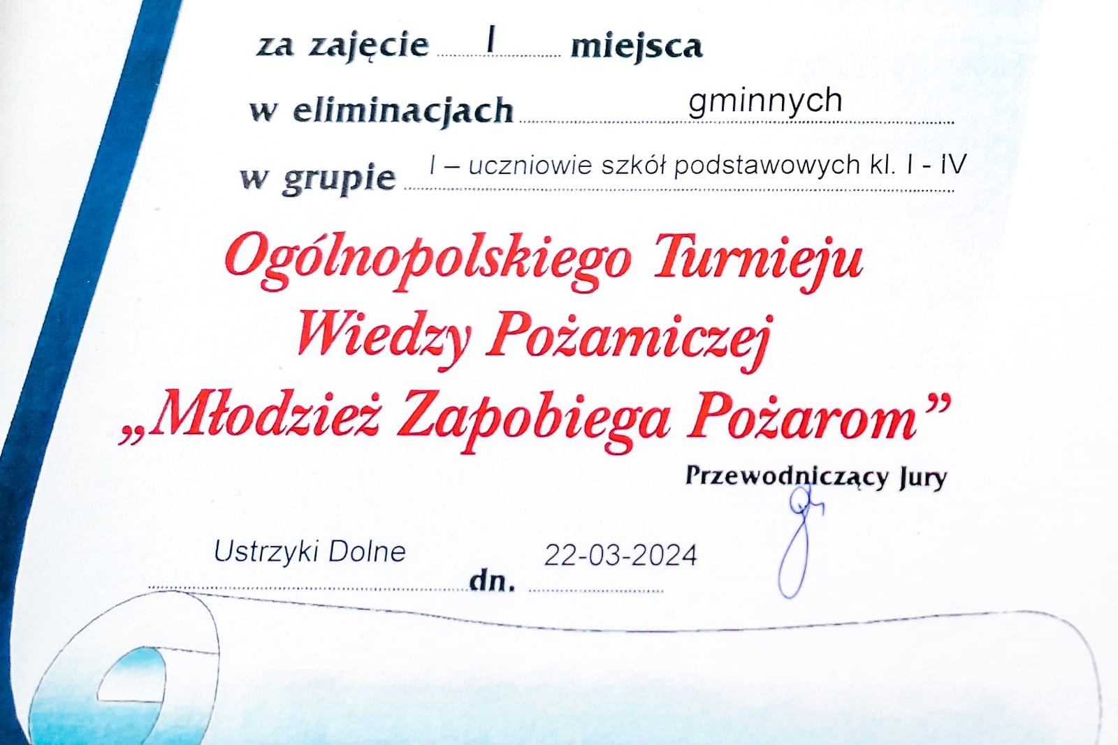 22 marca 2024r., odbyły się eliminacje gminne Ogólnopolskiego Turnieju Wiedzy Pożarniczej "Młodzież Zapobiega Pożarom„ dla młodzieży z gminy Ustrzyki Dolne.