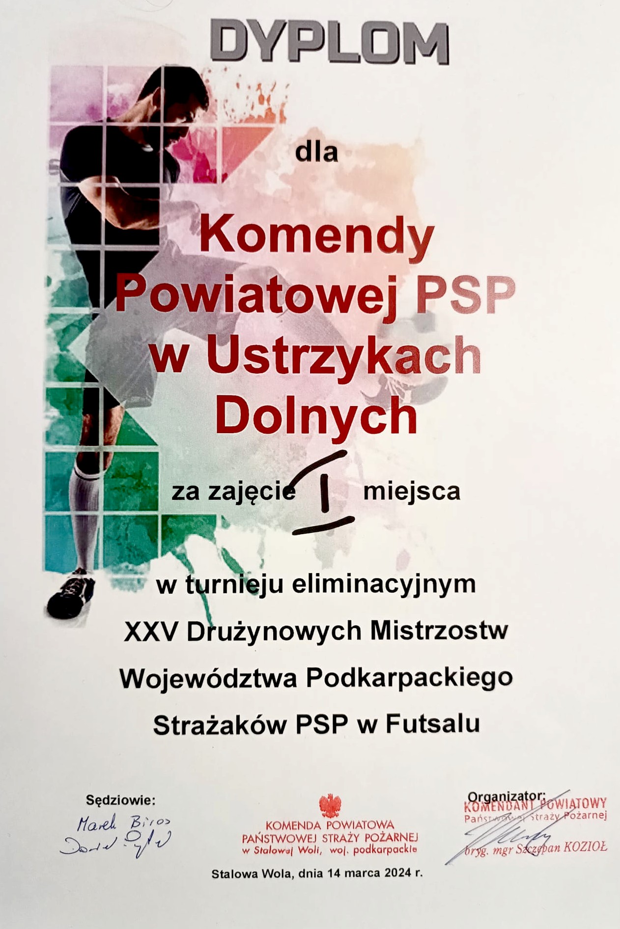 14 marca 2024 r., w Stalowej Woli odbył się turniej eliminacyjny XXV Drużynowych Mistrzostw Województwa Podkarpackiego Strażków PSP w Futsalu. Drużyna Komenda Powiatowa Państwowej Straży Pożarnej w Ustrzykach Dolnych w składzie: