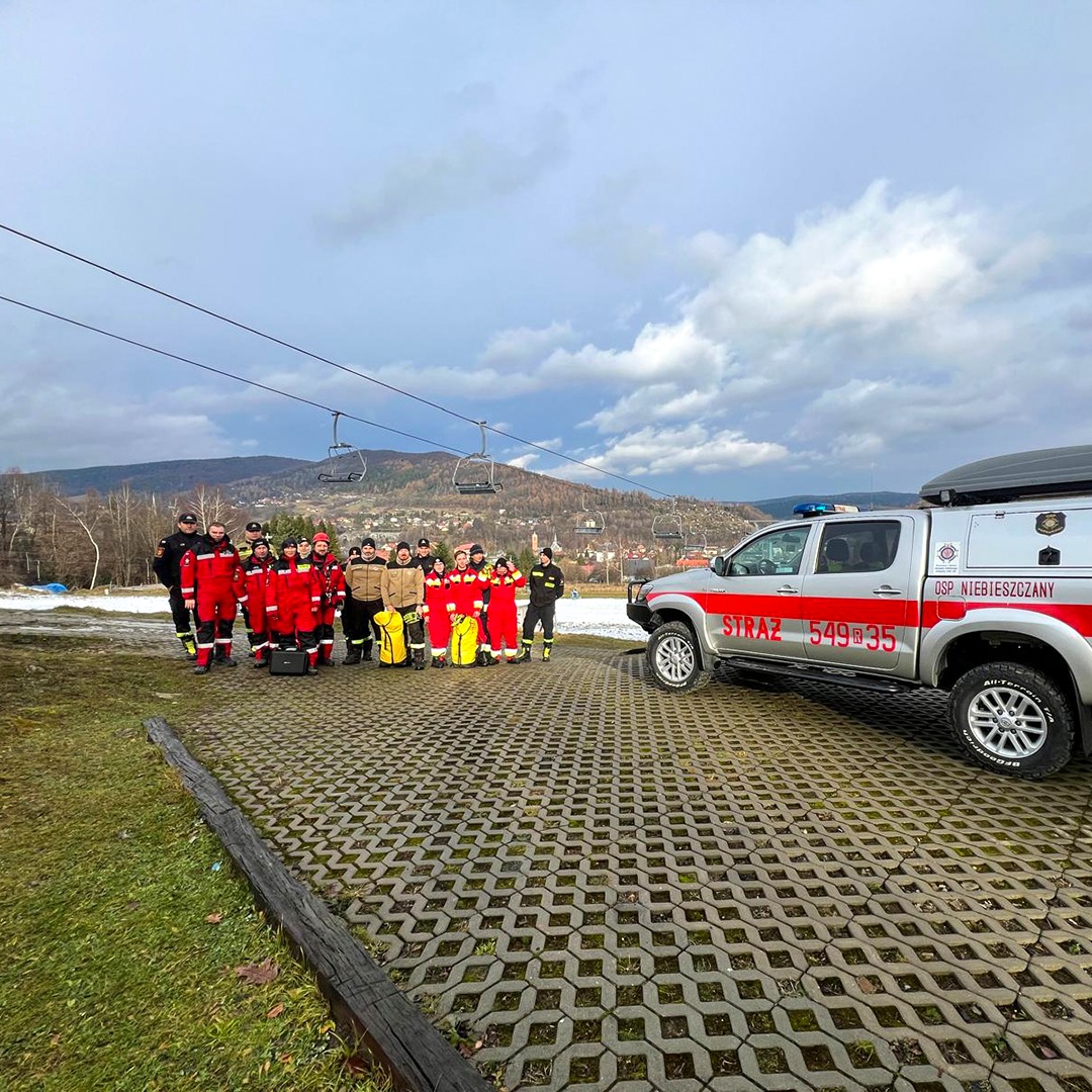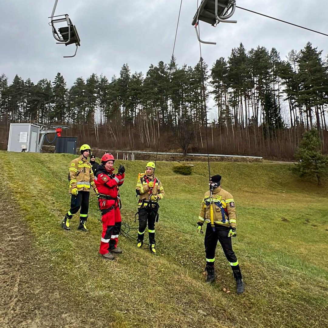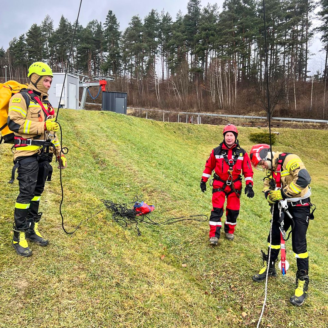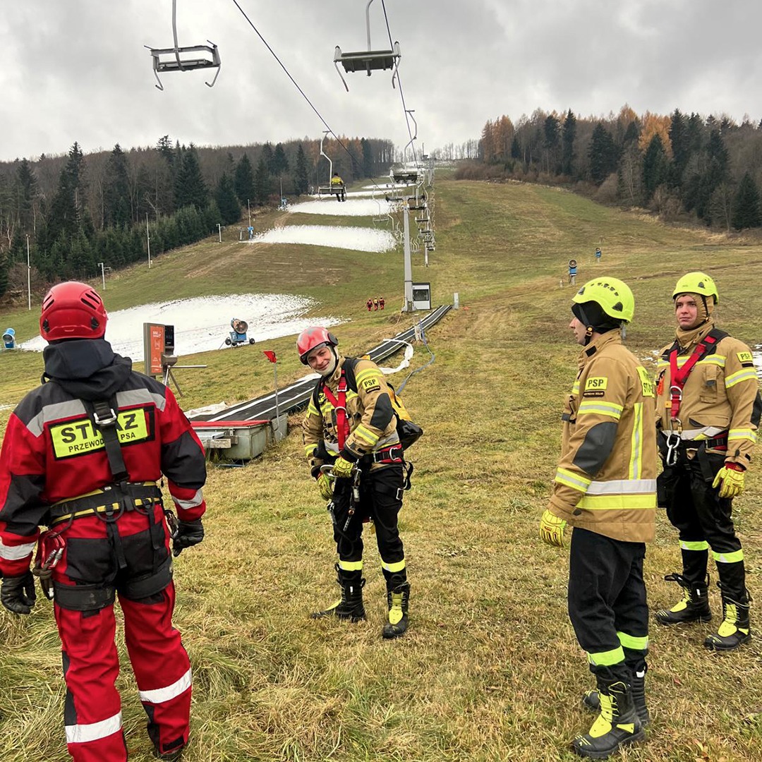 W dniu dzisiejszym ratownicy z JRG Ustrzyki Dolne, OSP Niebieszczany, OSP Stańkowa i z OSP KSRG Wojtkowa, wzięli udział w ćwiczeniach praktycznych na stacjach narciarskich Gromadzyń oraz Laworta Ski, związanych z organizacją działań ewakuacyjnych z kolei linowych.