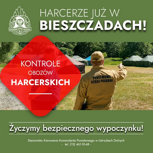 Pierwsze grupy harcerzy już zawitały w Bieszczady i obozy są w trakcie organizacji. W kolejnych dniach funkcjonariusze odwiedzą poszczególne grupy celem weryfikacji zapoznania się z procedurami bezpieczeństwa.