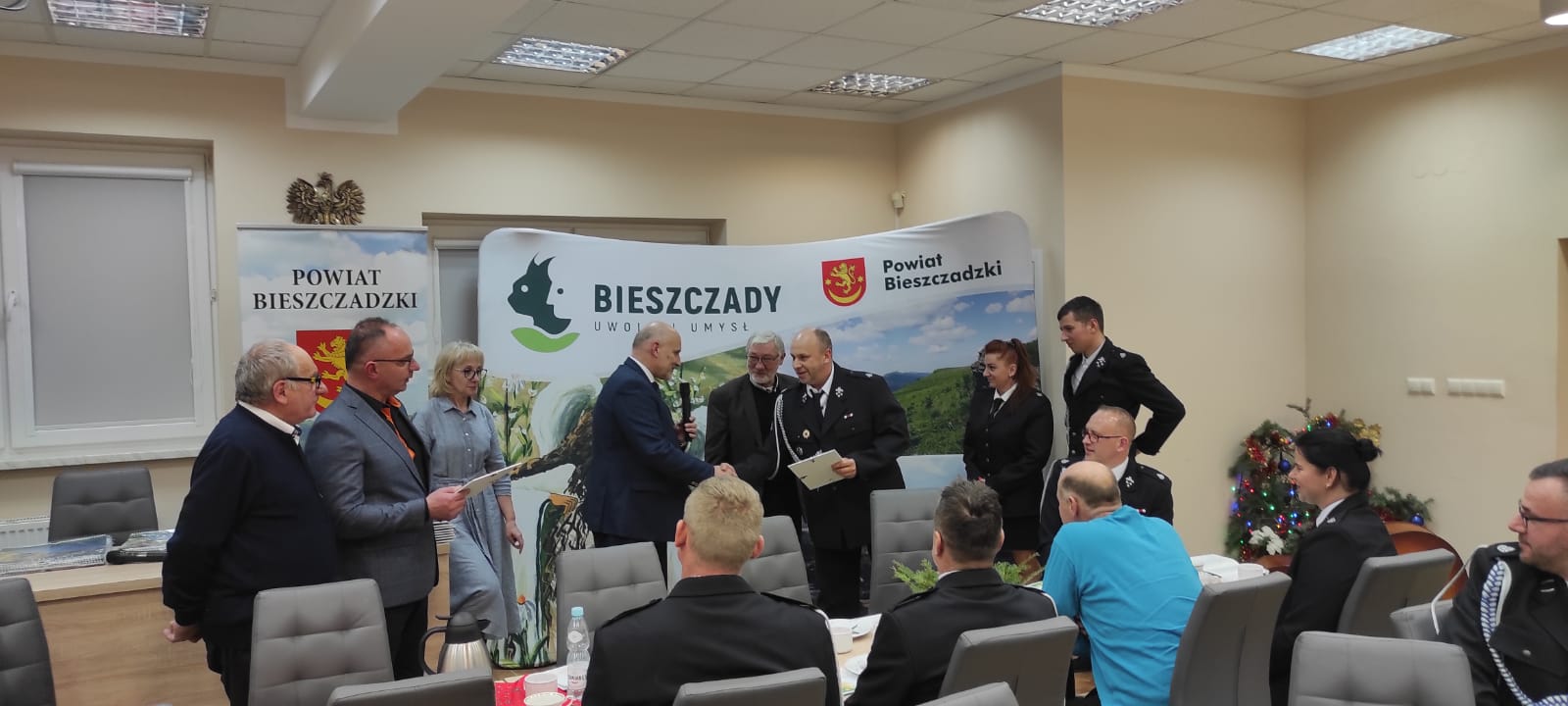 19 stycznia w Starostwie Powiatowym w Ustrzykach Dolnych odbyło się noworoczne spotkanie opłatkowe zorganizowane przez starostę Pana Marka Andrucha, w którym udział wzięli: komendant powiatowy PSP w Ustrzykach Dolnych mł. bryg. Emil Szmyd, komendant powiatowy OSP druh Tadeusz Niedźwiecki, prezes powiatowy OSP, prezesi gminni OSP, komendanci gminni OSP, naczelnicy poszczególnych jednostek OSP z powiatu bieszczadzkiego a także radni powiatowi.