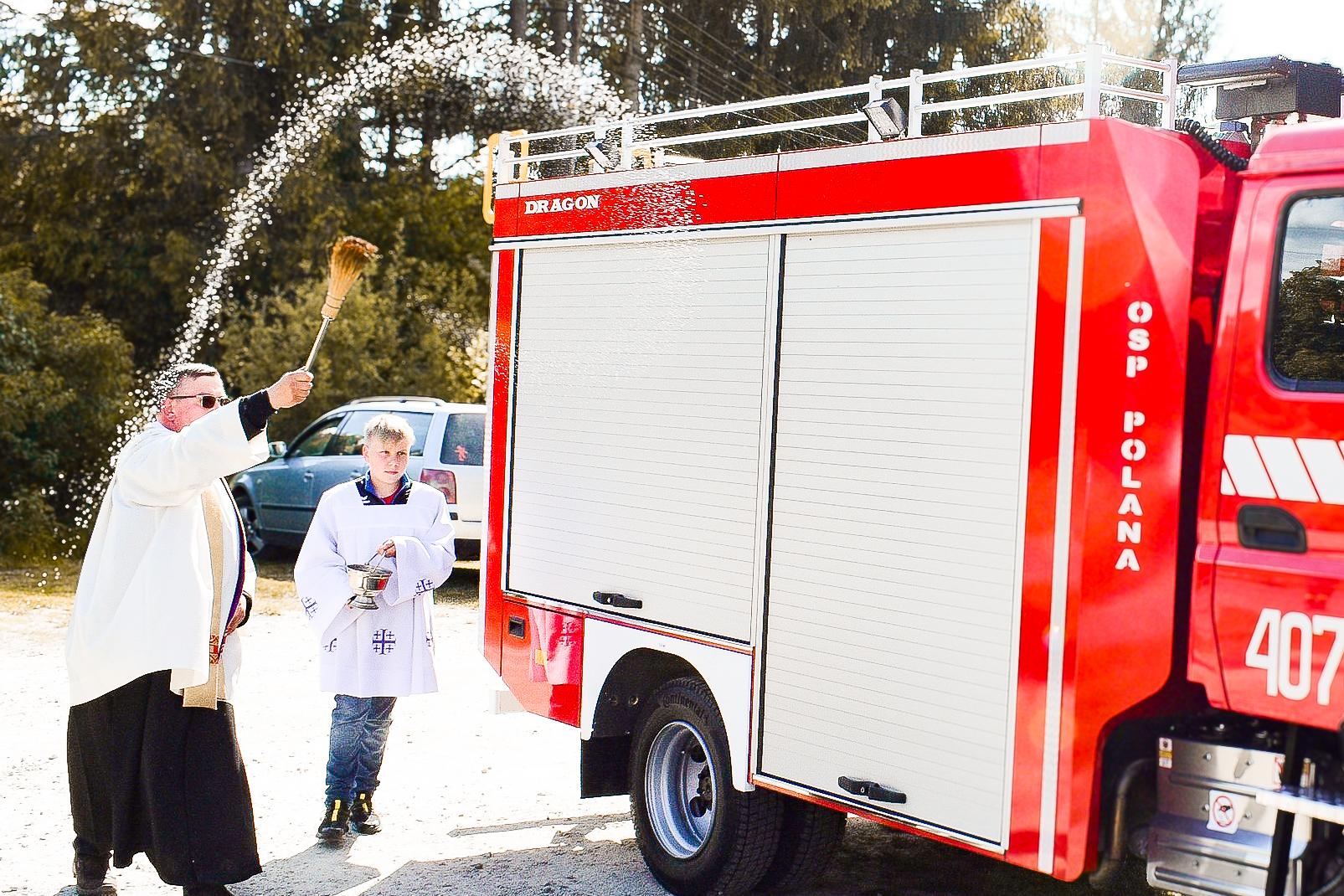 18 maja, Komendant Powiatowy Państwowej Straży Pożarnej w Ustrzykach Dolnych bryg. Emil Szmyd,wziął udział w uroczystym przekazaniu nowego samochodu ratowniczo-gaśniczego do jednostki Ochotniczej Straży Pożarnej w Polanie.