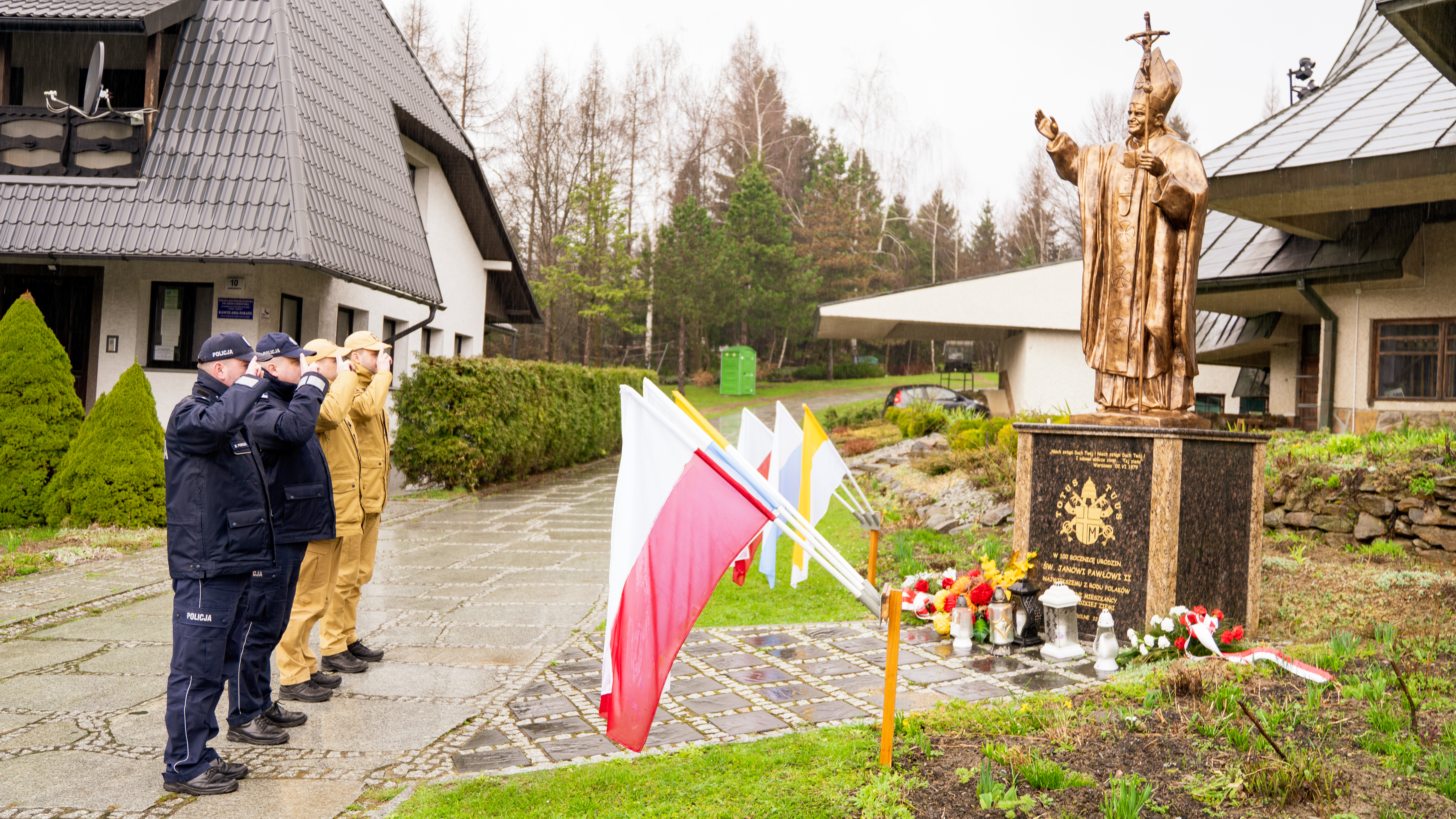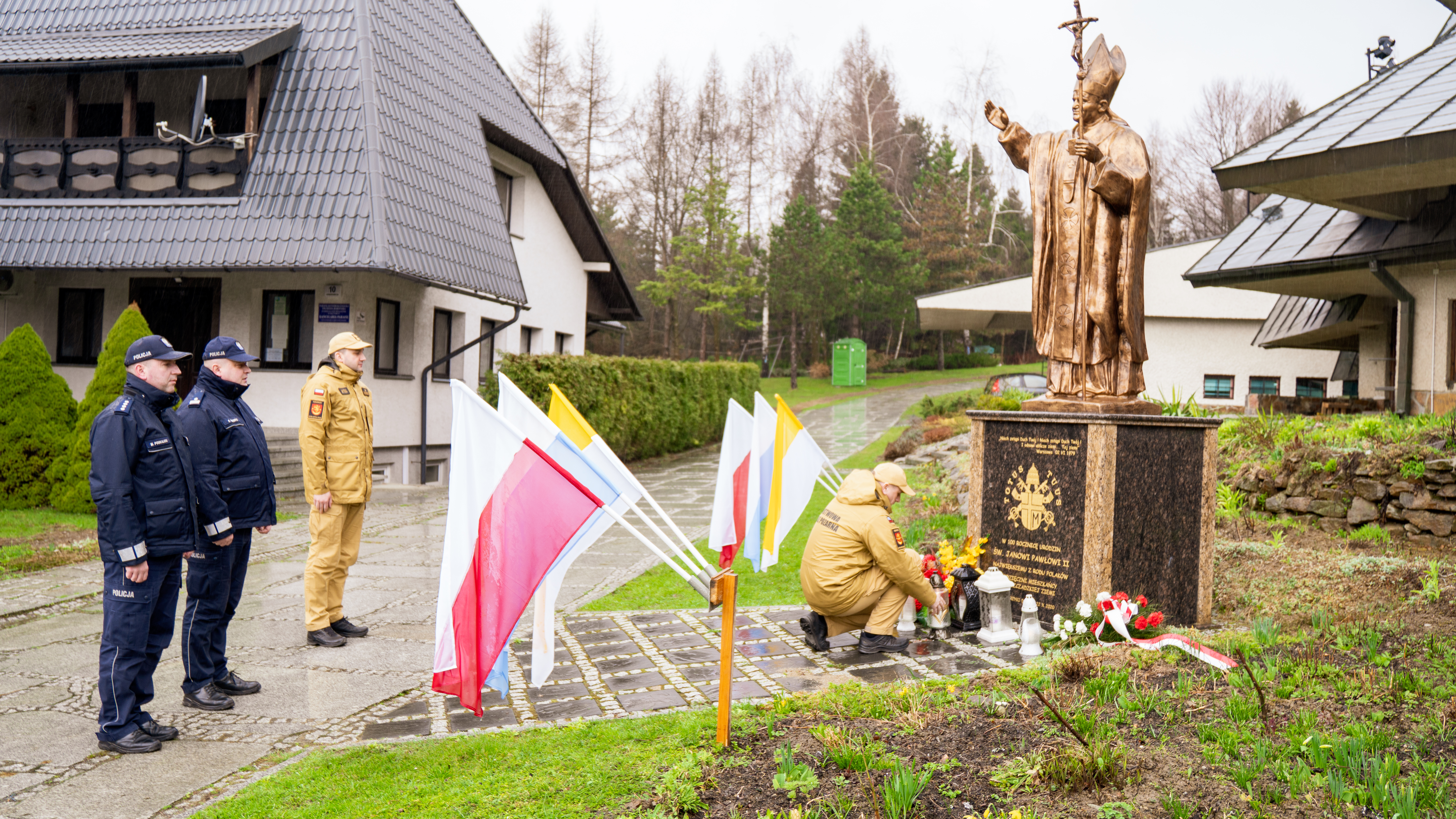 2 kwietnia br. komendant powiatowy Państwowej Straży Pożarnej bryg. Emil Szmyd, jego zastępca mł. bryg. Marcin Szyjduk oraz komendanci Policji z Ustrzyk Dolnych uczcili pamięć św. Jana Pawła II, składając znicz pod jego pomnikiem przy parafii pw. Św. Józefa Robotnika.