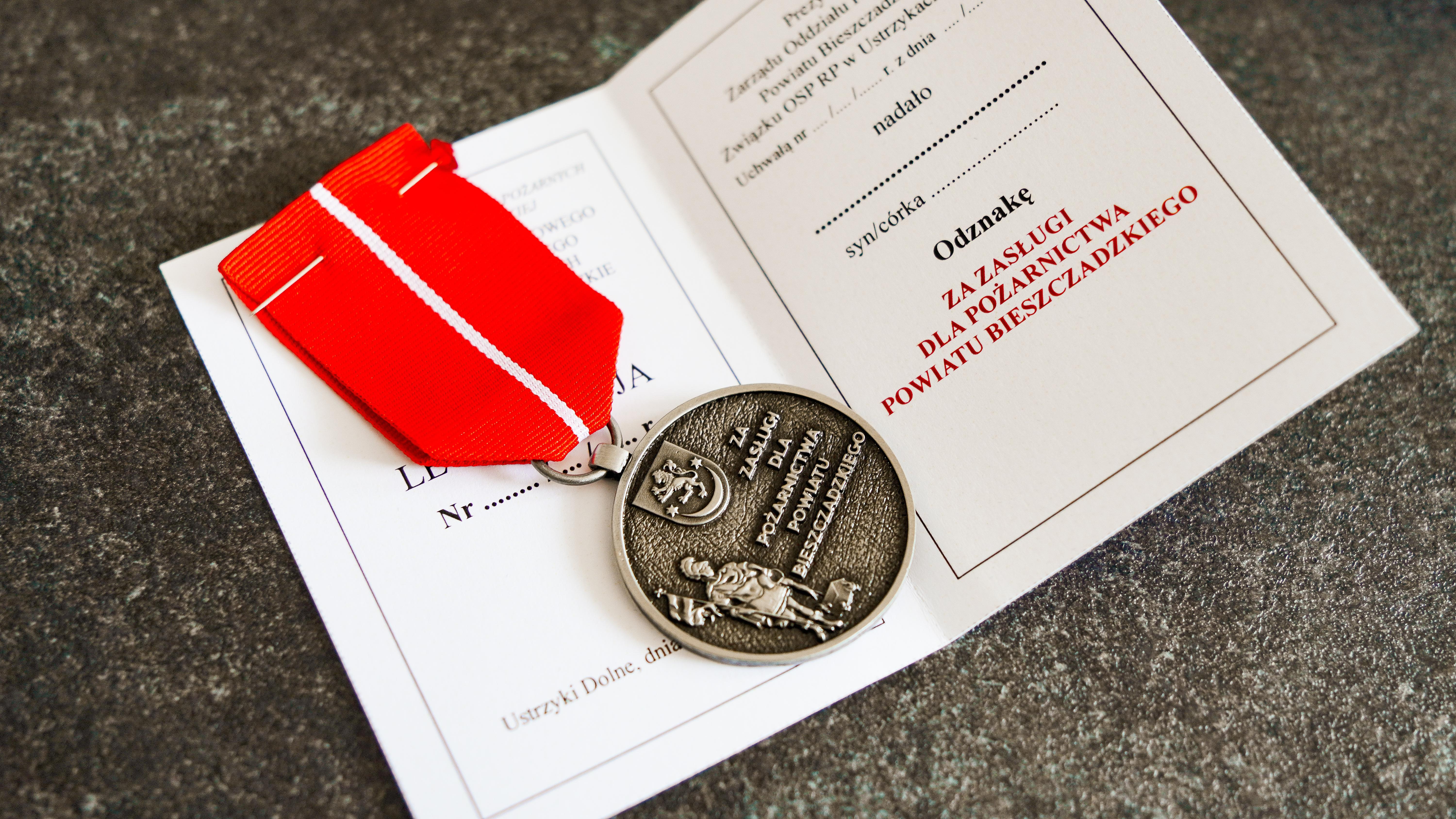Uchwałą nr 2/2024 Zarządu Oddziału Powiatowego ZOSP RP w Ustrzykach Dolnych z dnia 20 marca 2024 roku ustanowiono odznakę "Za zasługi dla pożarnictwa powiatu bieszczadzkiego". Odznaka ta jest nadawana przez Prezydium Zarządu Oddziału Powiatowego powiatu bieszczadzkiego ZOSP RP w Ustrzykach Dolnych, zgodnie z przyjętym regulaminem nadania odznaki "Za zasługi dla pożarnictwa powiatu bieszczadzkiego".