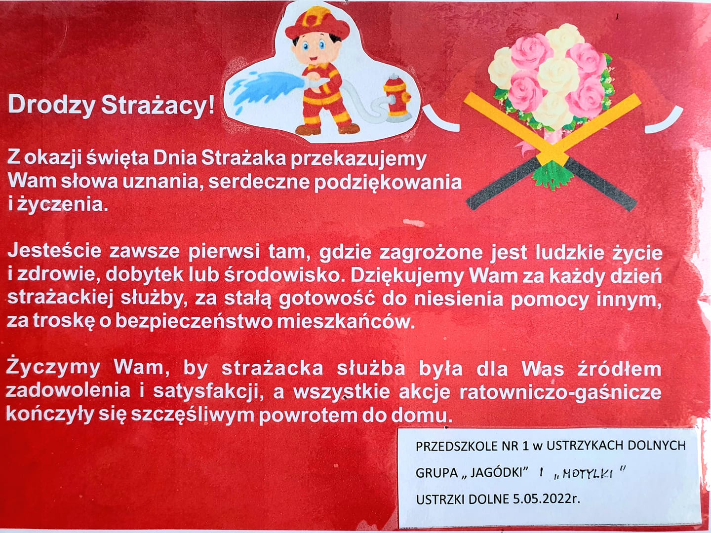 Wszystkim dzieciom oraz nauczycielom i wychowawcom serdecznie dziękujemy za czynny udział w spotkaniach, życzenia z okazji dnia strażaka, a także miłe upominki.