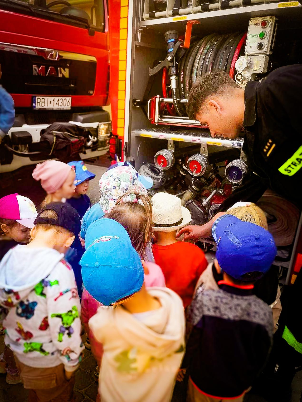 Podczas wizyty strażacy zaprezentowali sprzęt ratowniczy oraz opowiedzieli o swojej pracy, podkreślając znaczenie bezpieczeństwa i zasad postępowania w sytuacjach zagrożenia. Dzieci miały okazję zadać pytania i wziąć udział w krótkich ćwiczeniach, które pokazały im, jak reagować w przypadku pożaru.