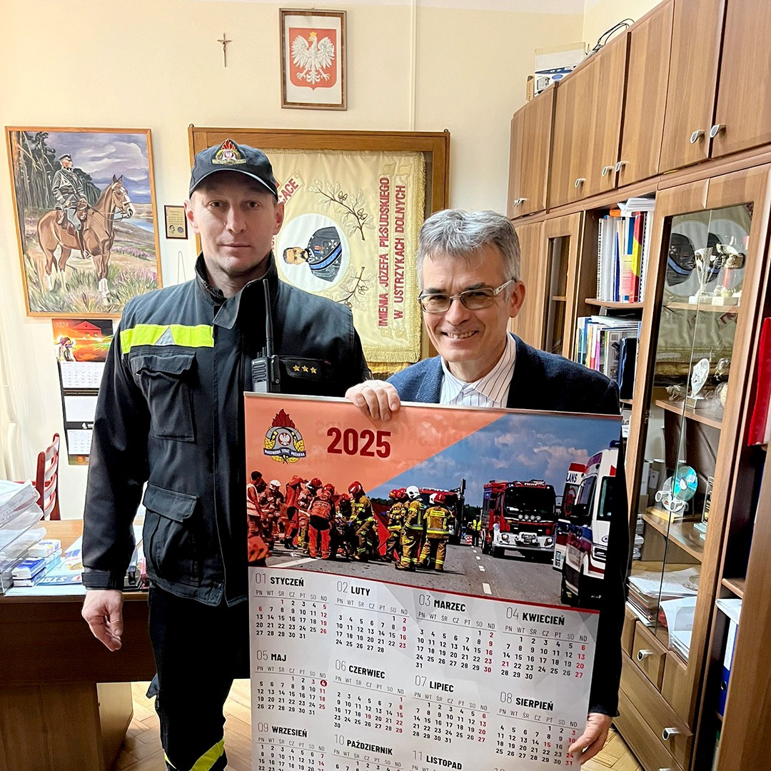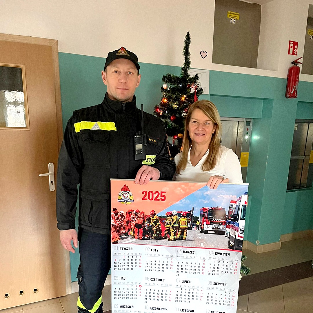 Dziś strażacy z Komendy Powiatowej PSP w Ustrzykach Dolnych przekazali do szkół i przedszkoli kalendarze strażackie Państwowej Straży Pożarnej na rok 2025 wraz z najlepszymi życzeniami na zbliżający się Nowy Rok.