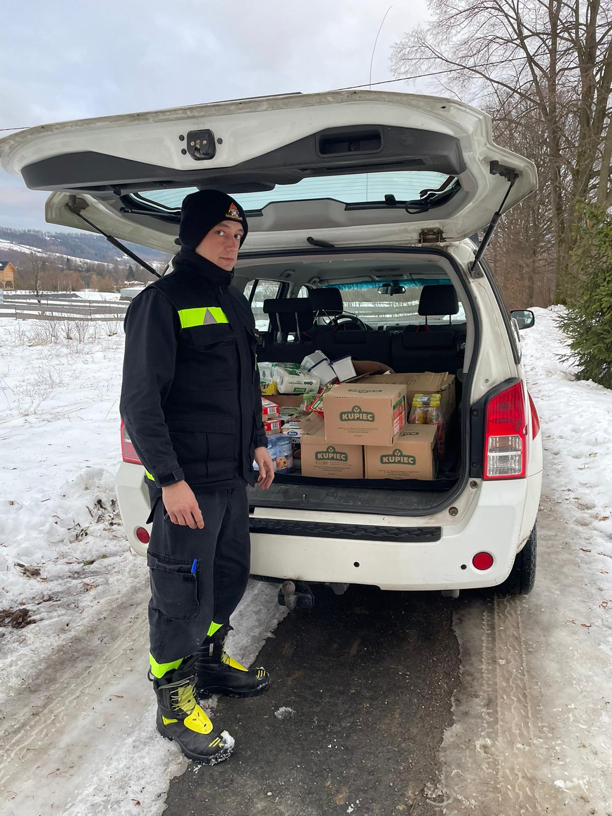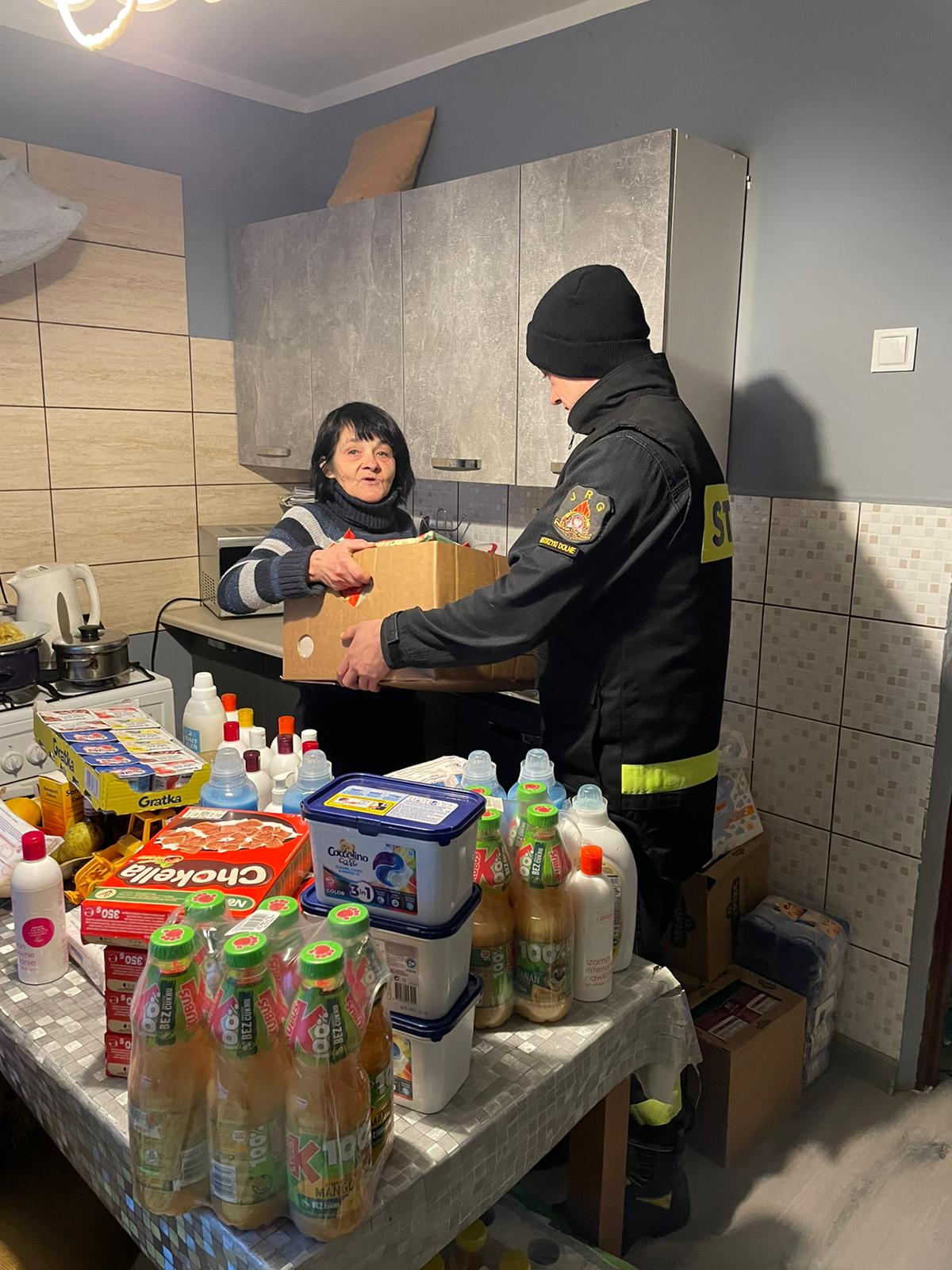 22 grudnia funkcjonariusze z KP PSP w Ustrzykach Dolnych przekazali świąteczną paczkę najpotrzebniejszych produktów, wraz z serdecznymi życzeniami świątecznymi, potrzebującej kobiecie z terenu gminy Ustrzyki Dolne.