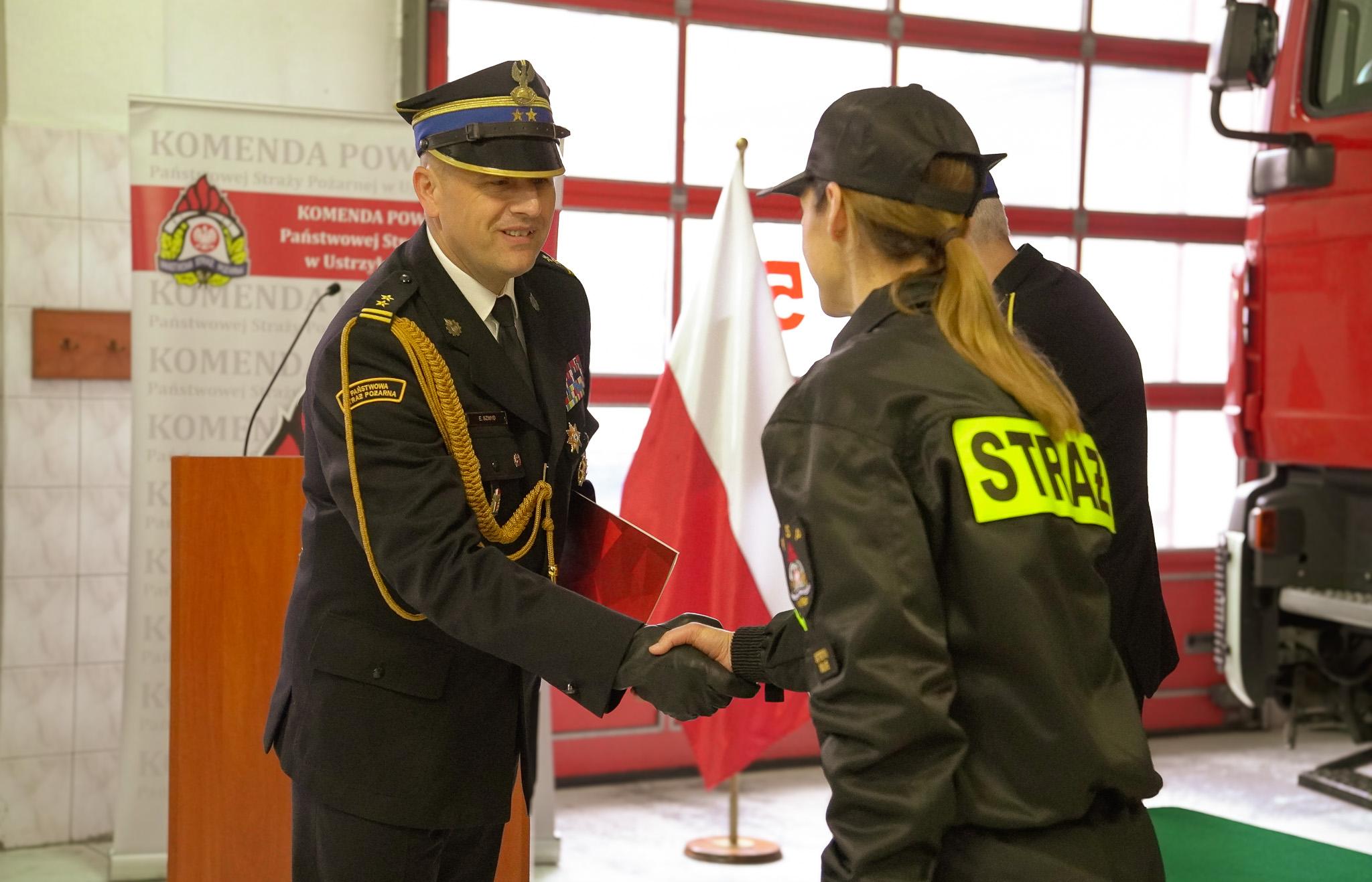 "Ja, obywatel Rzeczypospolitej Polskiej, świadom podejmowanych obowiązków strażaka, uroczyście ślubuję być ofiarnym i mężnym w ratowaniu zagrożonego życia ludzkiego i wszelkiego mienia - nawet z narażeniem życia", te słowa rozbrzmiały dziś w Komendzie Powiatowej Państwowej Straży Pożarnej w Ustrzykach Dolnych podczas uroczystej zbiórki z okazji ślubowania nowo zatrudnionych strażaków. Ślubowanie przyjął bryg. Emil Szmyd - Komendant Powiatowy Państwowej Straży Pożarnej w Ustrzykach Dolnych.