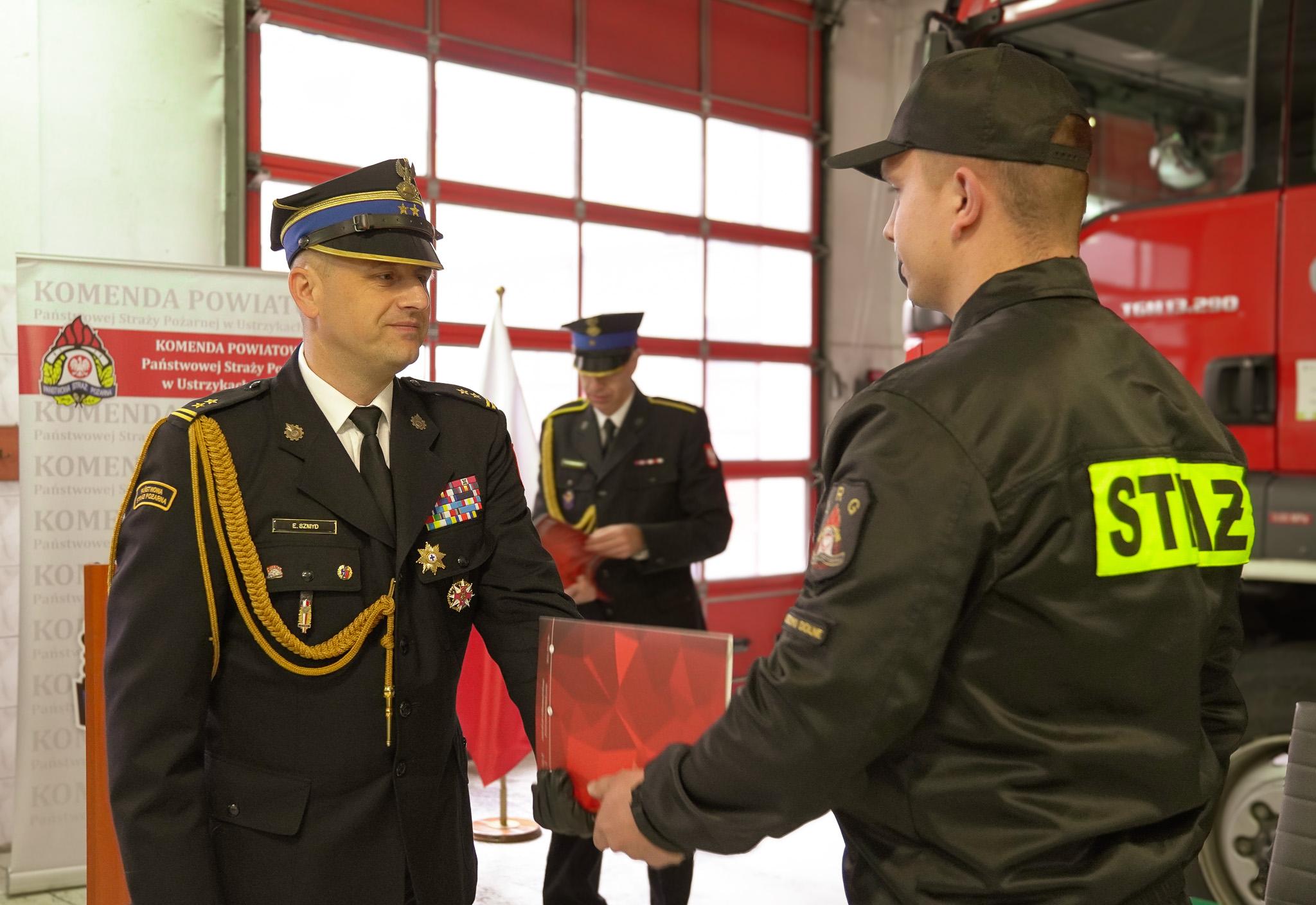 W krótkim przemówieniu, bryg. Emil Szmyd złożył strażakom życzenia pomyślności, siły i wytrwałości w trudnej, ale szlachetnej służbie, którą podejmują, aby ich praca owocowała wieloma sukcesami i uznaniem społecznym. Na koniec złożył serdeczne gratulacje i podziękowania rodzinom przybyłym na uroczystość.