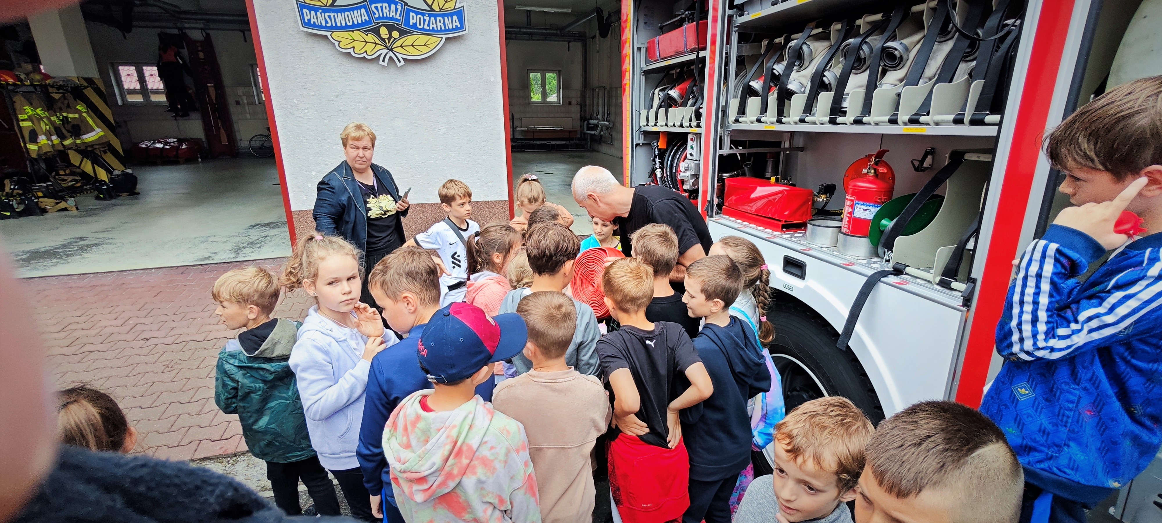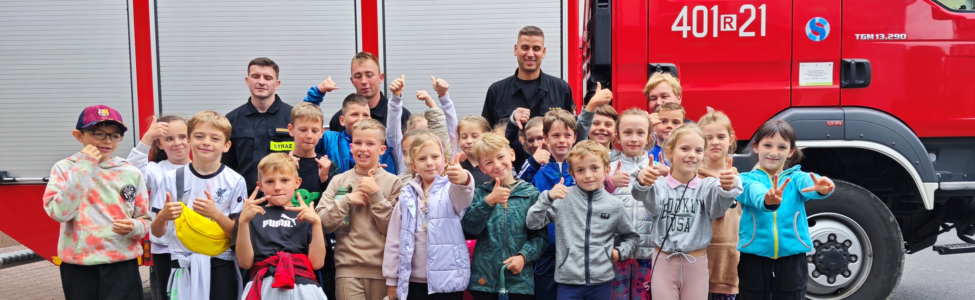 Wizyta dzieci w KP PSP Ustrzyki Dolne - prewencja społeczna