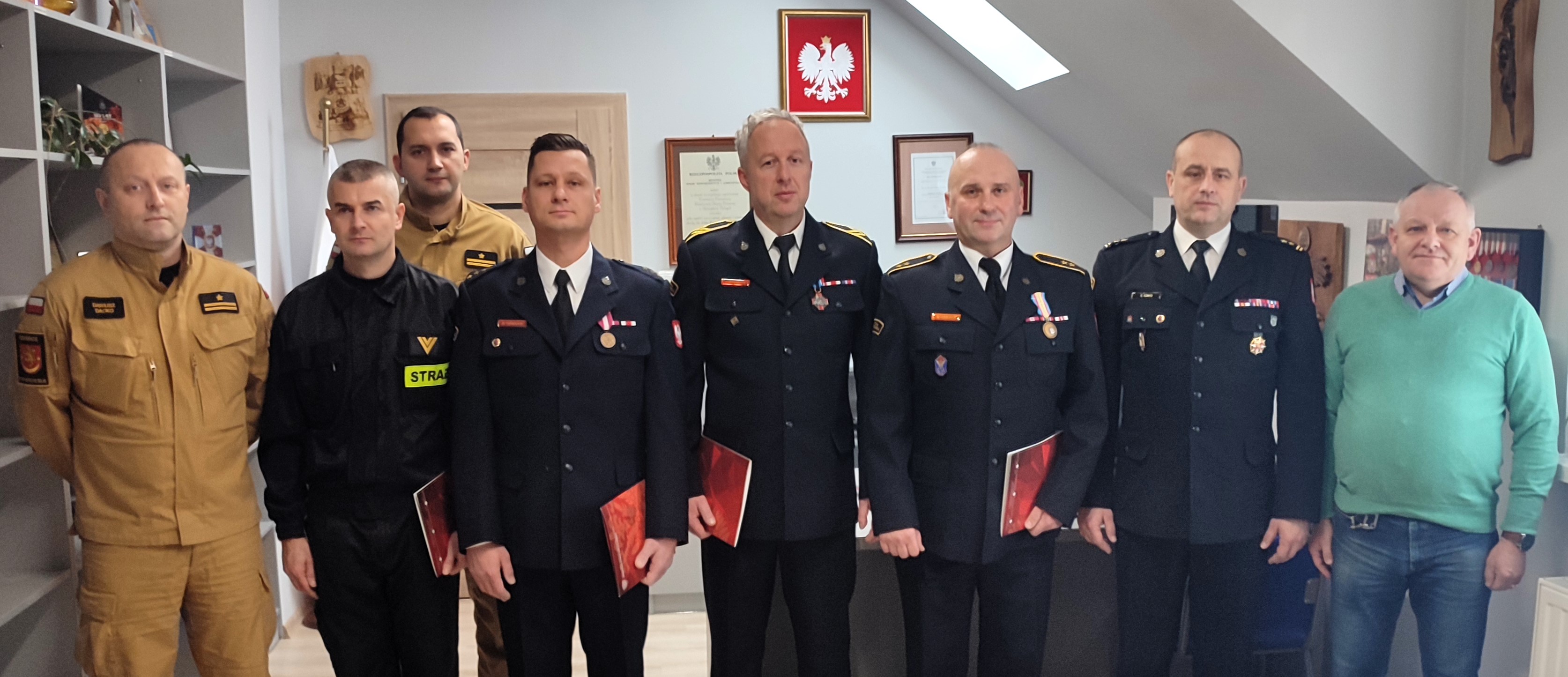 4 grudnia br odbyło się uroczyste wręczenie nagród Komendanta Powiatowego PSP w Ustrzykach Dolnych przyznanych za wzorowe wykonywanie obowiązków służbowych. Podczas spotkania mjr SG w st. spocz. Stanisław Trzaska uhonorował złotym medalem 40 - lecia Związku Żołnierzy Wojska Polskiego st. asp. Rafała Jasiewicza.